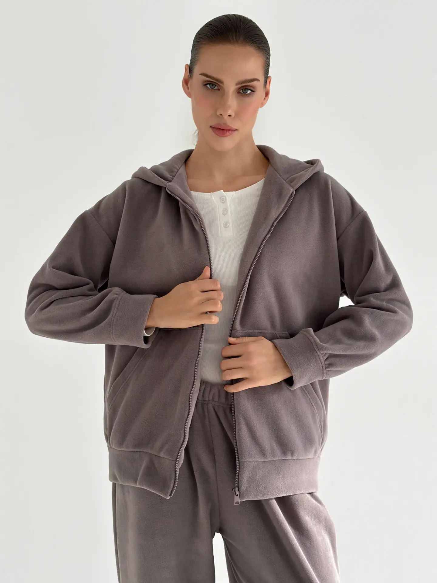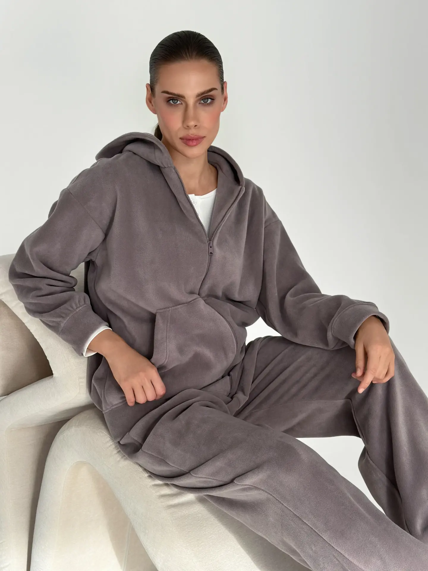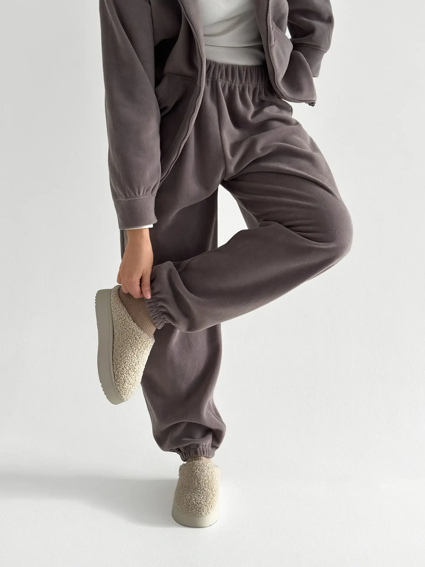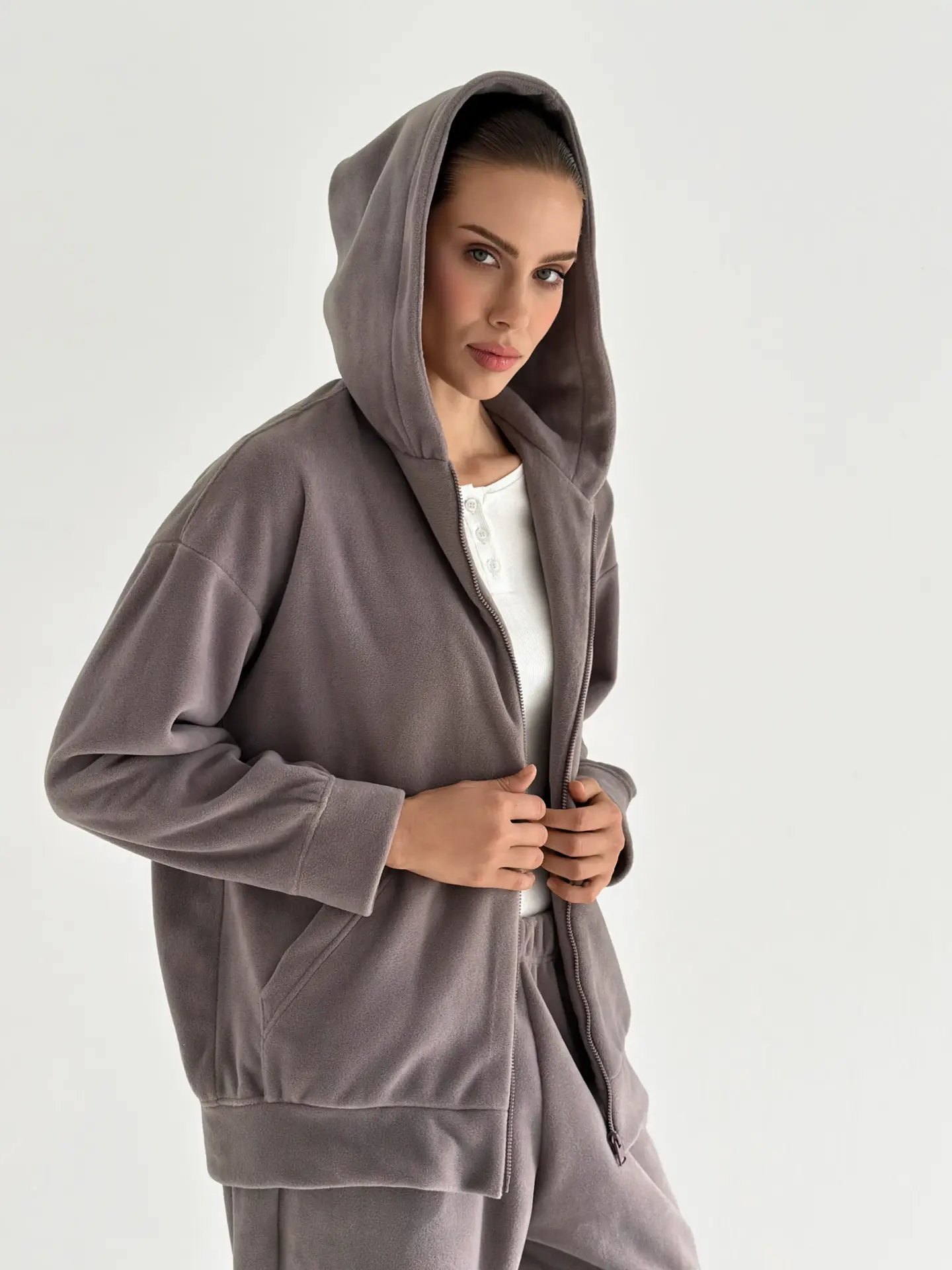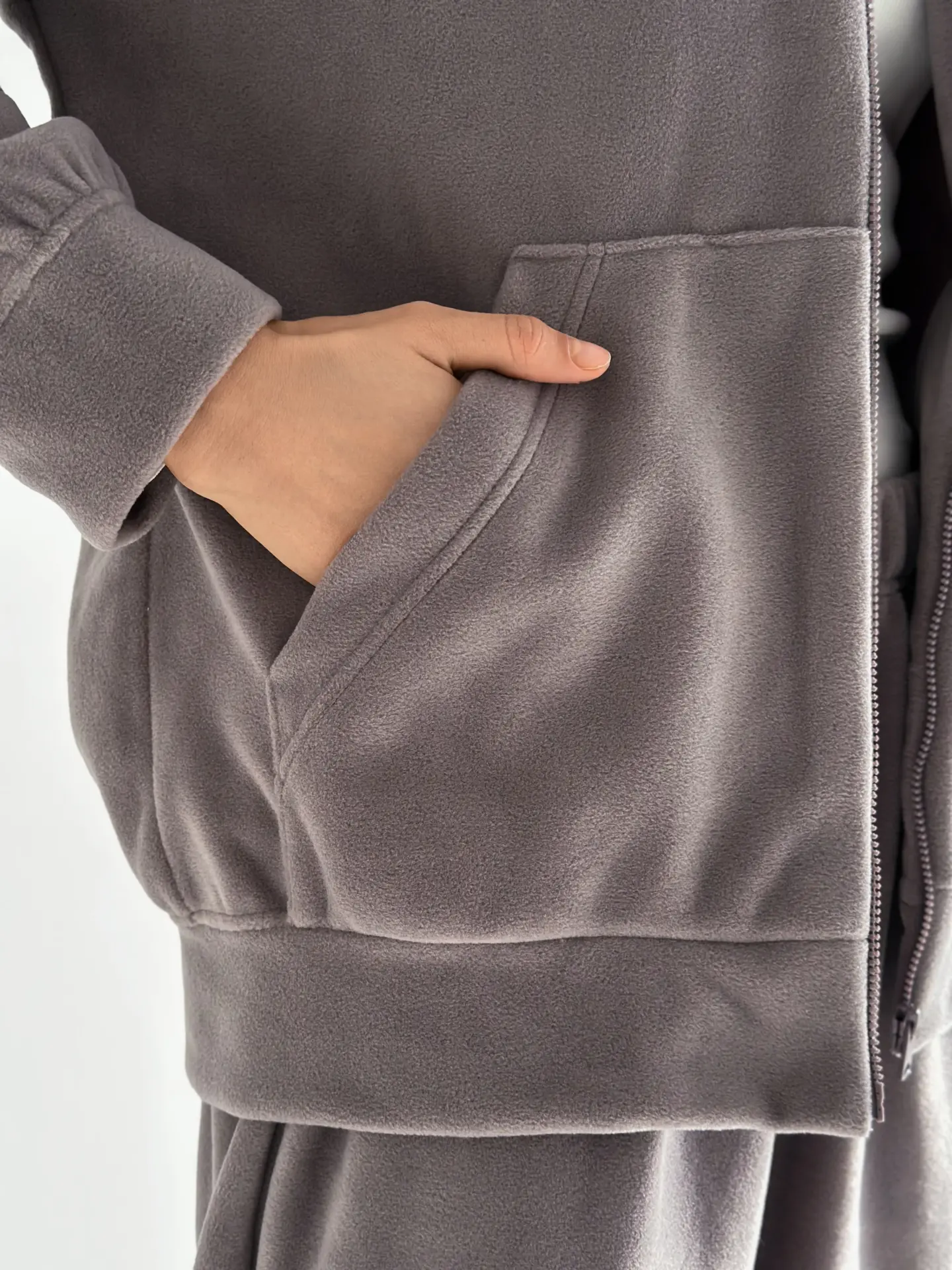 Костюм із кофти та штанів із полар-флісу створений для тепла й затишку у прохолодну пору. М’який та приємний на дотик матеріал забезпечує комфорт у носінні. Ідеально підходить для дому та відпочинку.