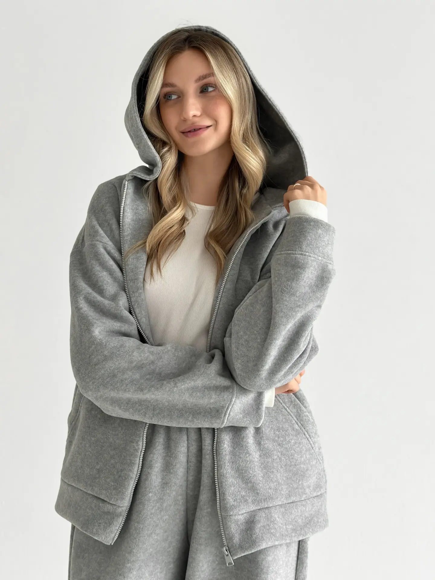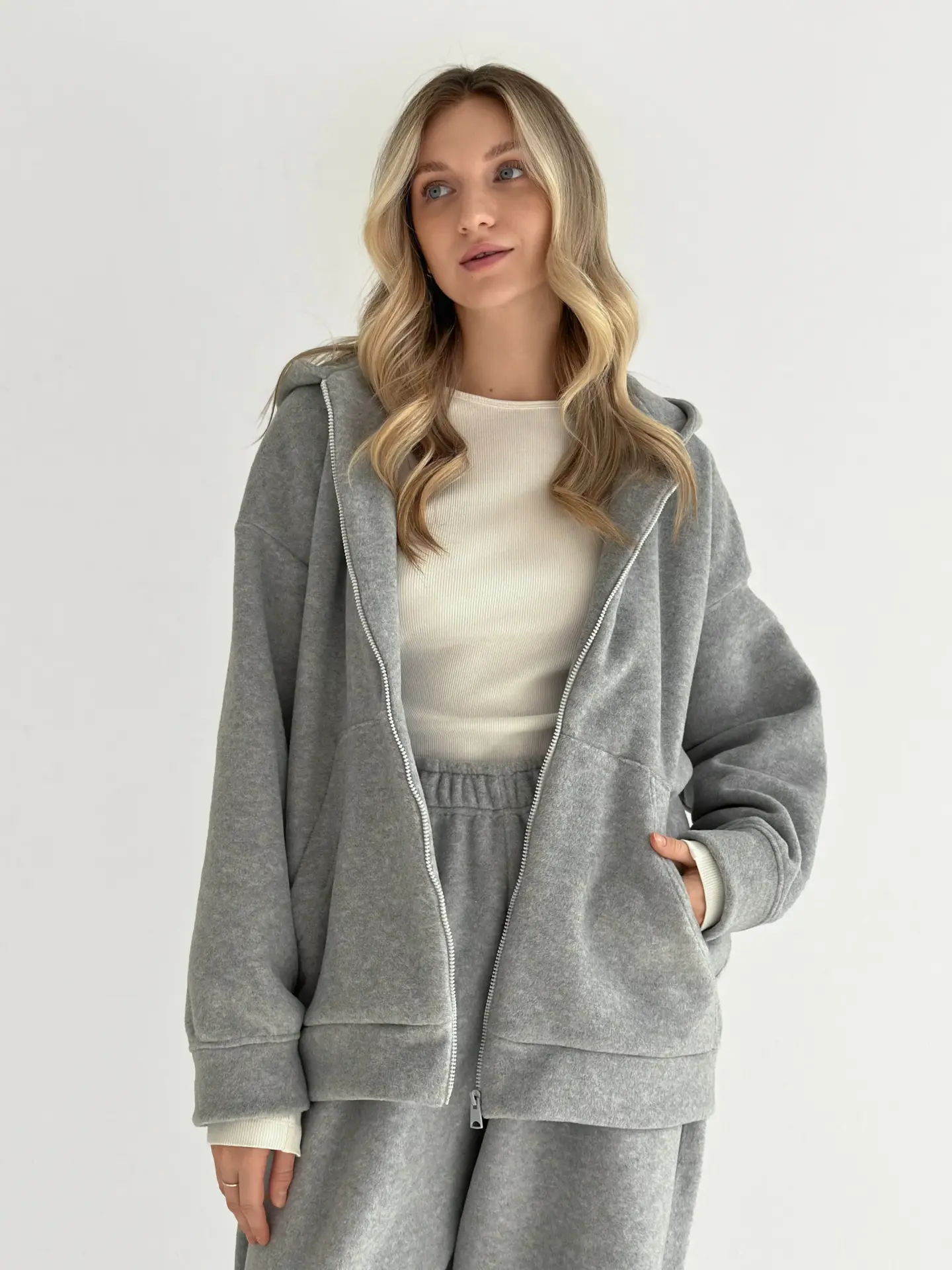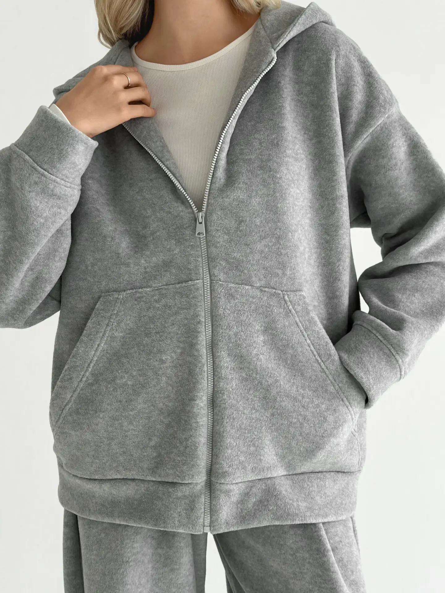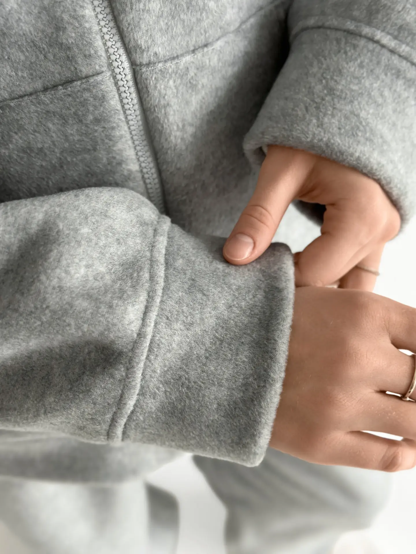 Костюм із кофти та штанів із полар-флісу створений для тепла й затишку у прохолодну пору. М’який та приємний на дотик матеріал забезпечує комфорт у носінні. Ідеально підходить для дому та відпочинку.