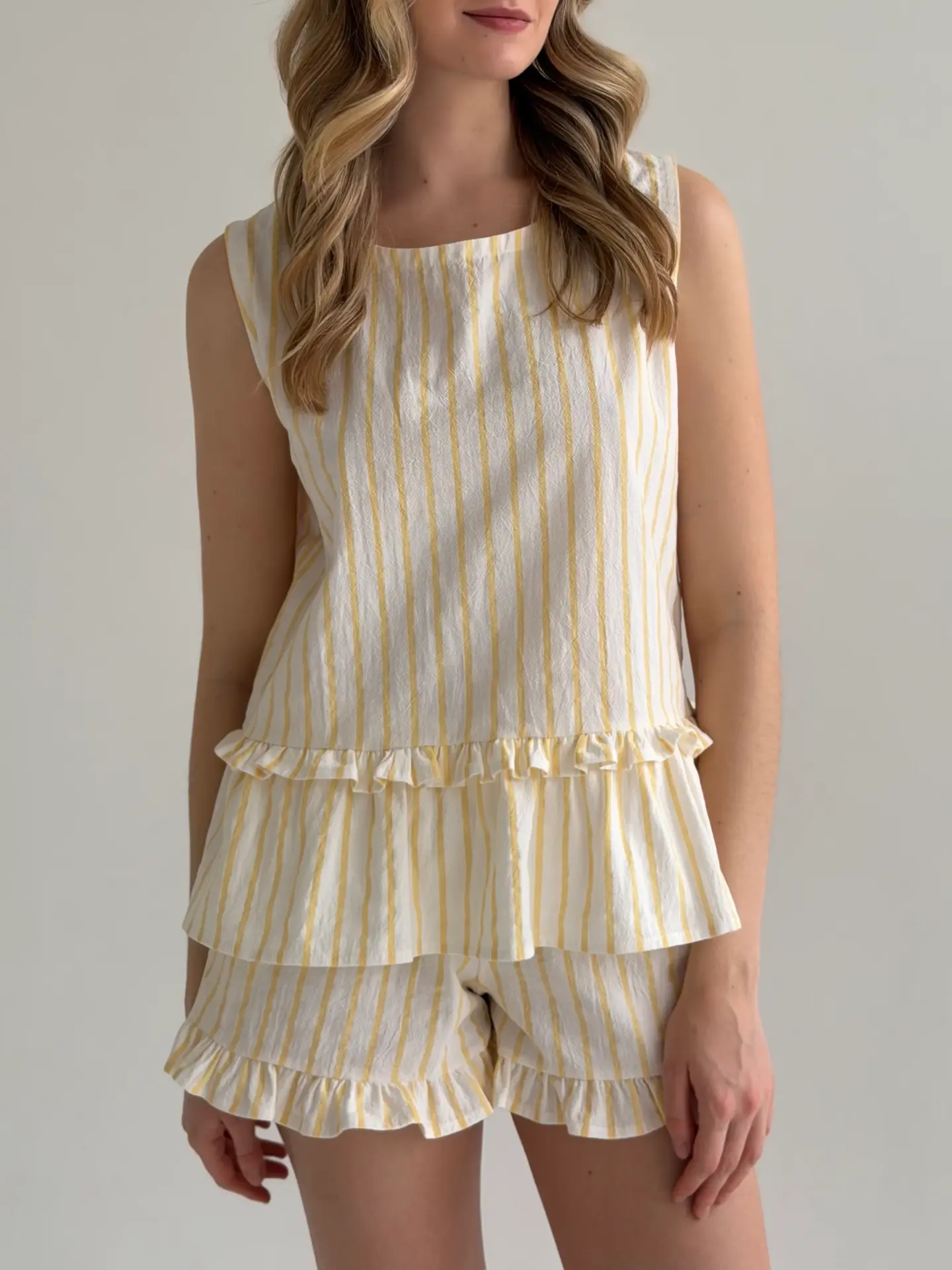 Костюм майка та шорти котон "жовта смужка на молочному" - Twins
