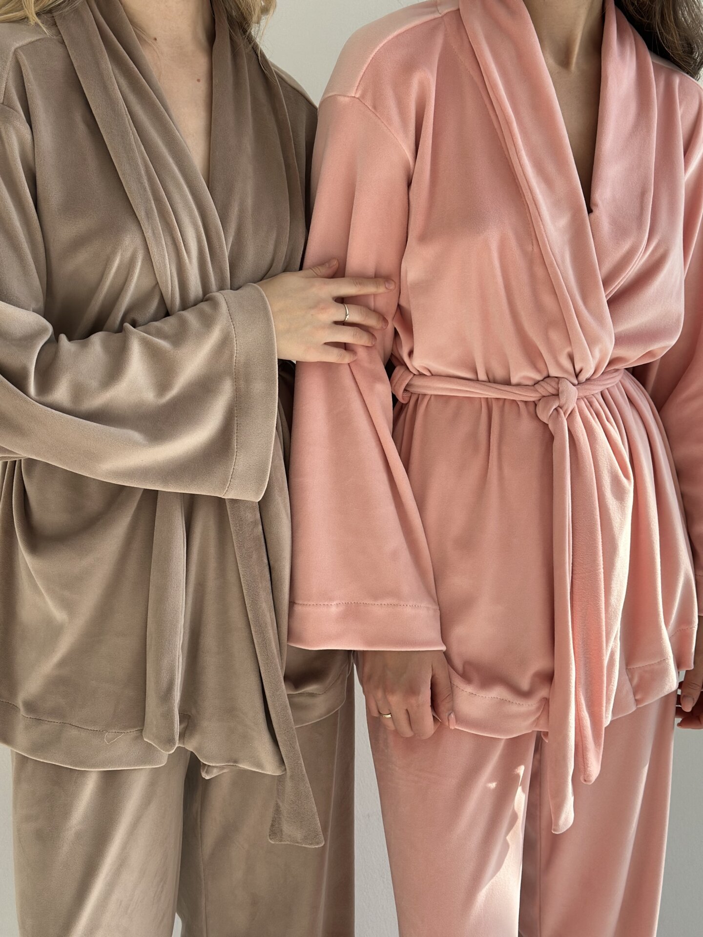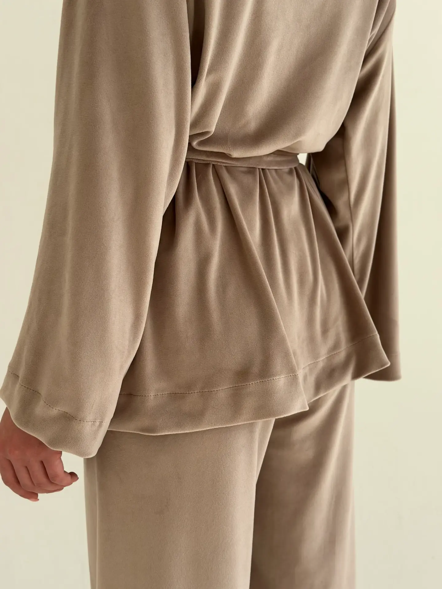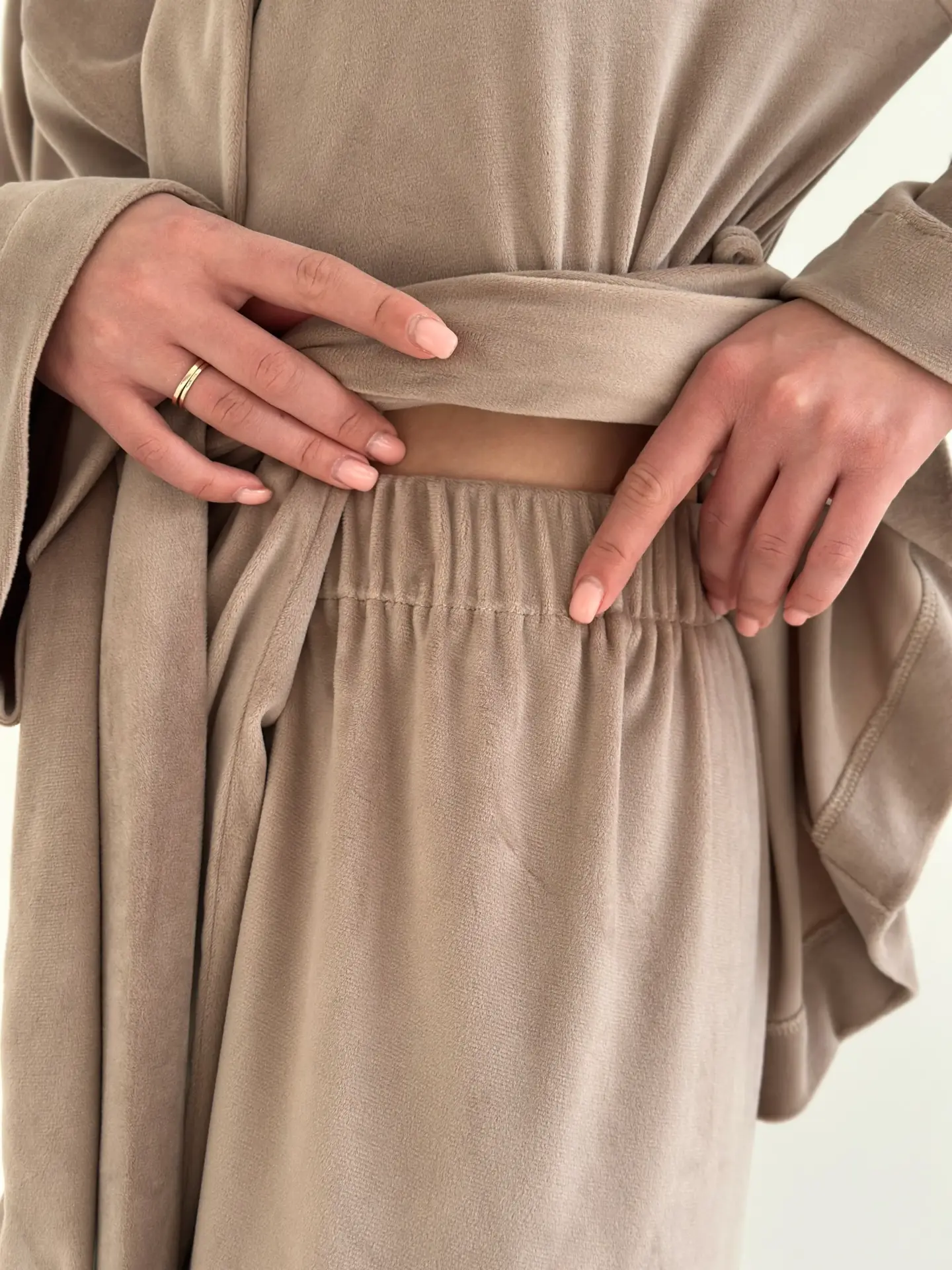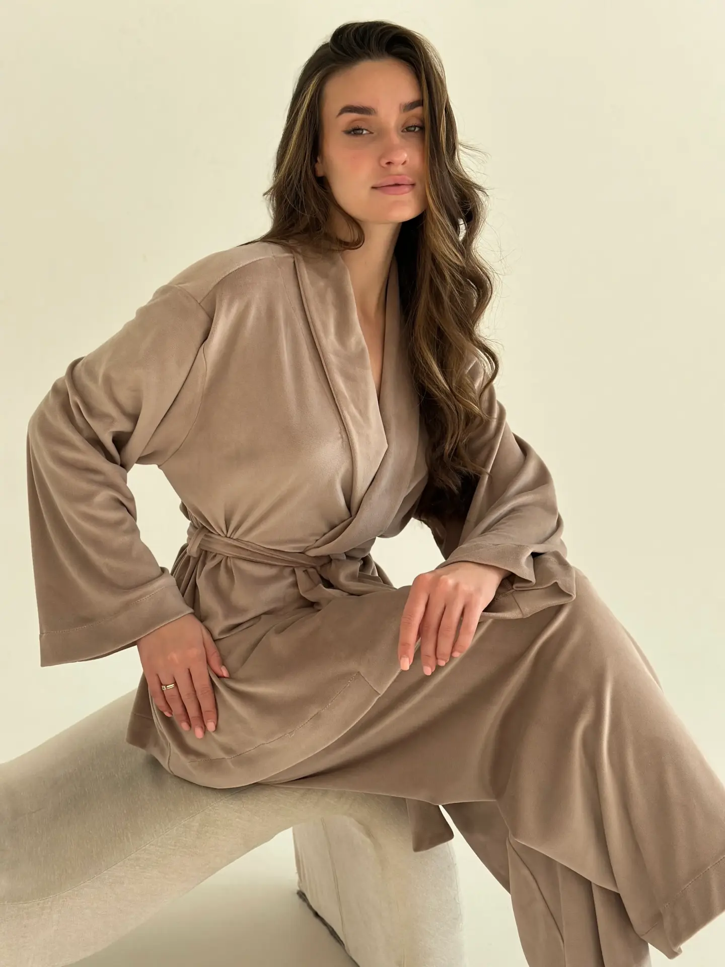 Костюм плюш штани та кофта на запах комір шаль бежевий