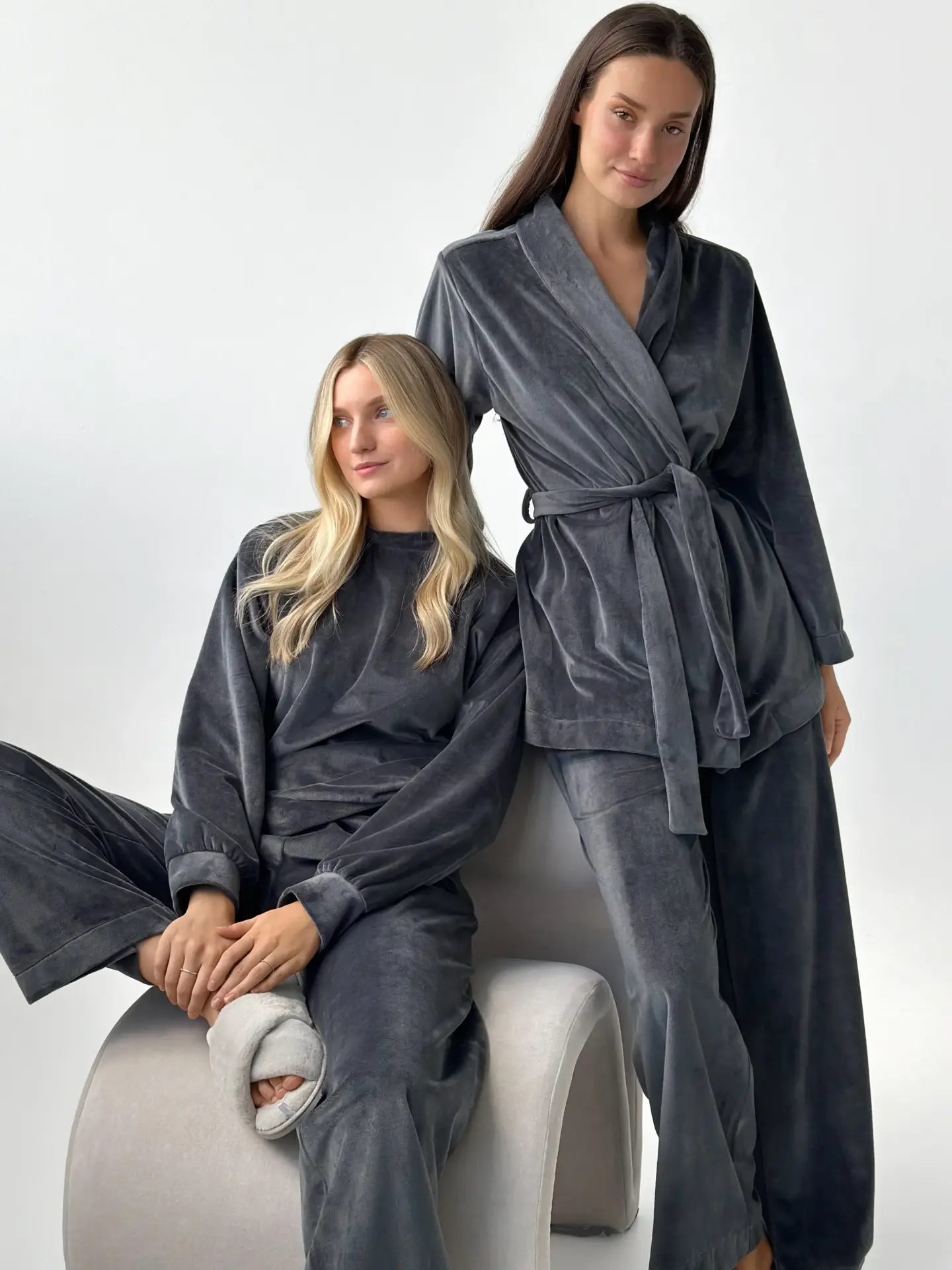 Костюм плюш штани та кофта на запах комір шаль графіт