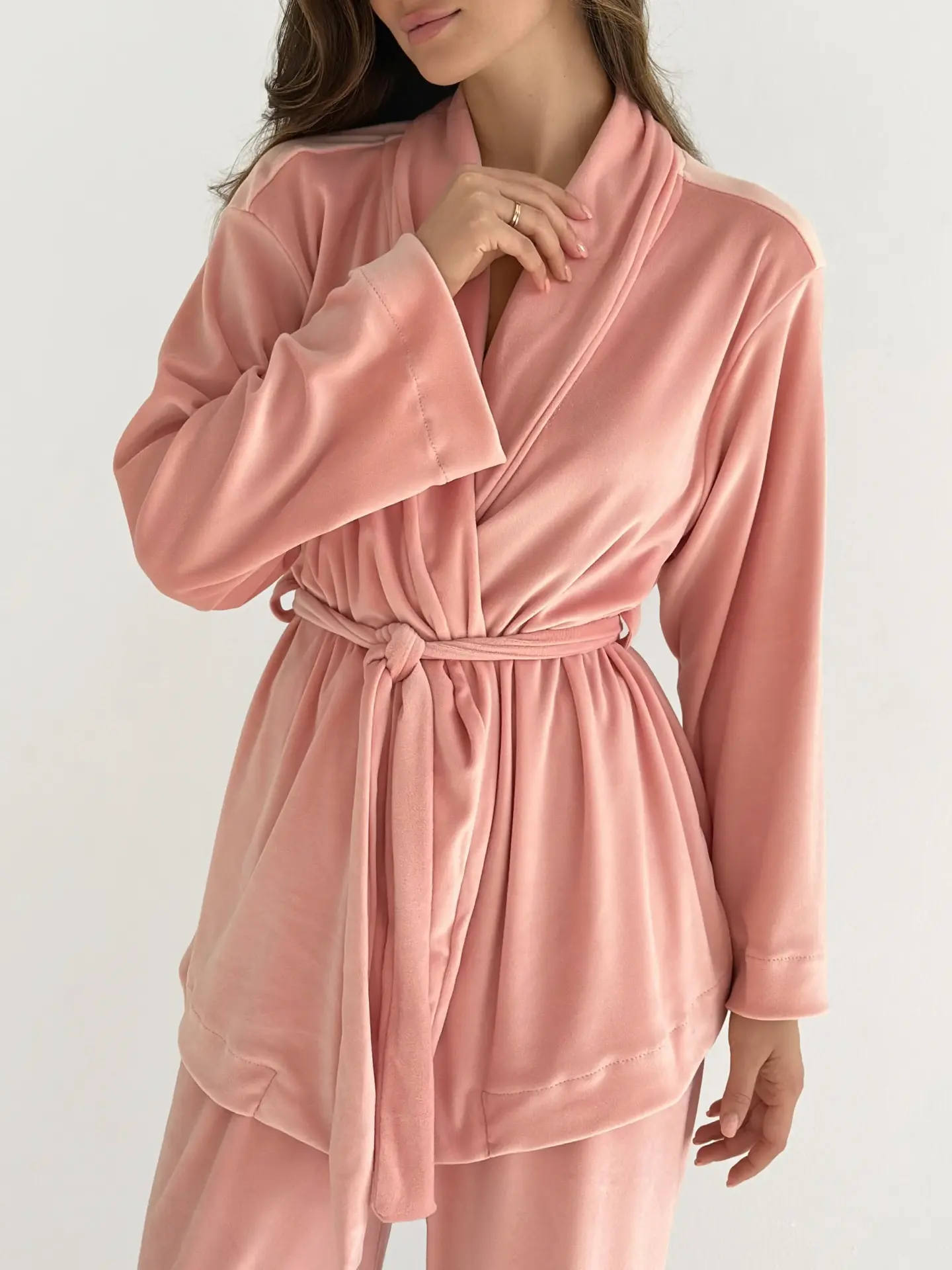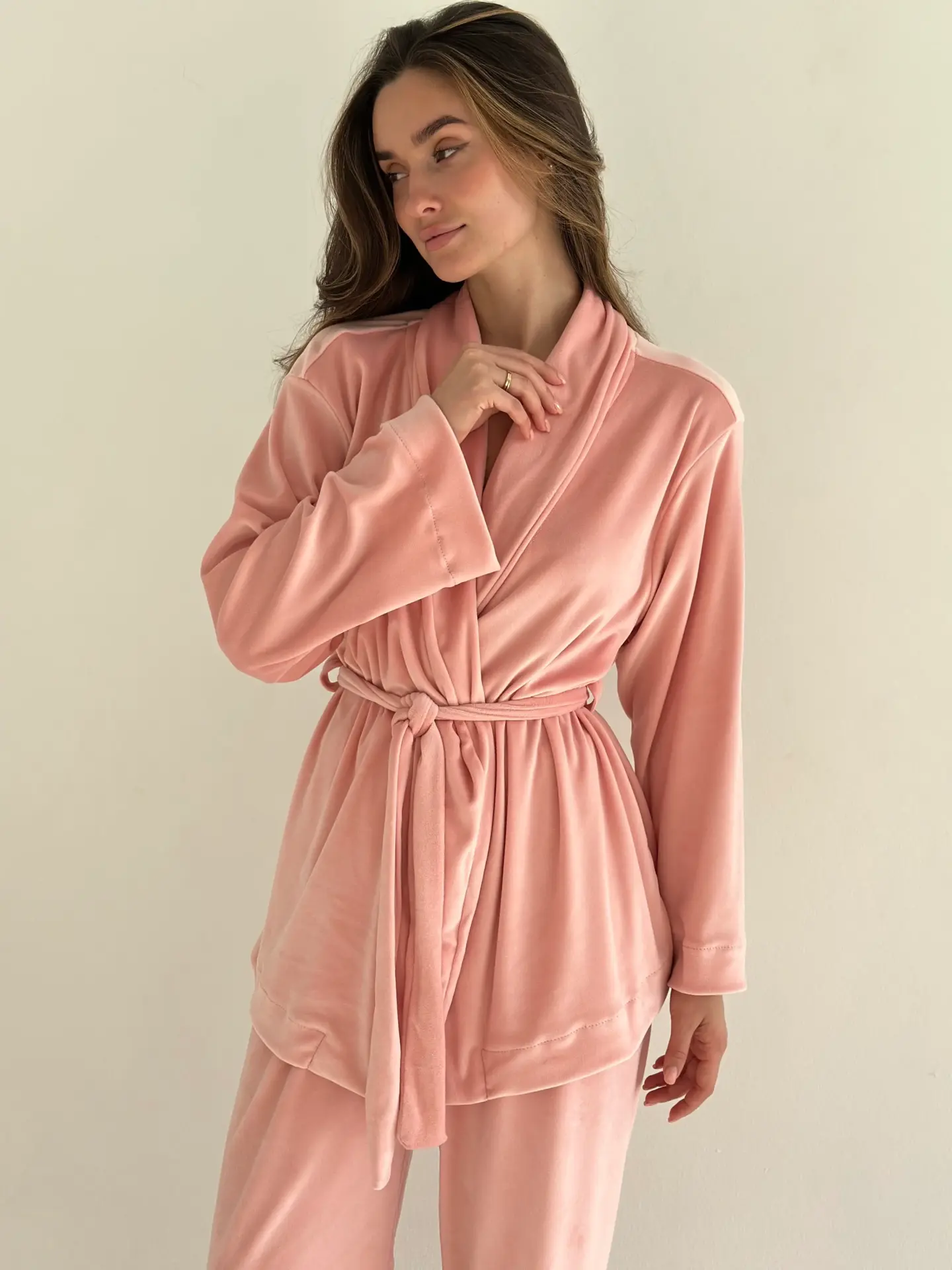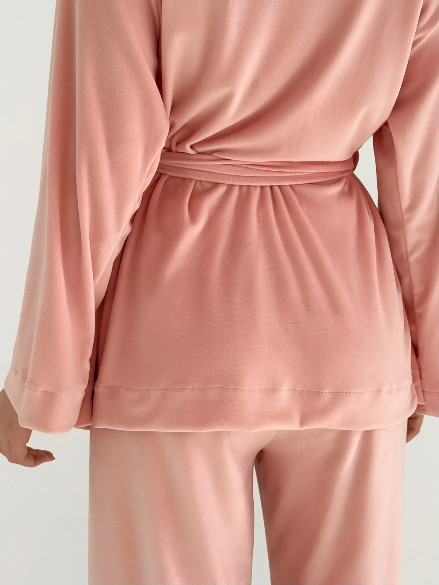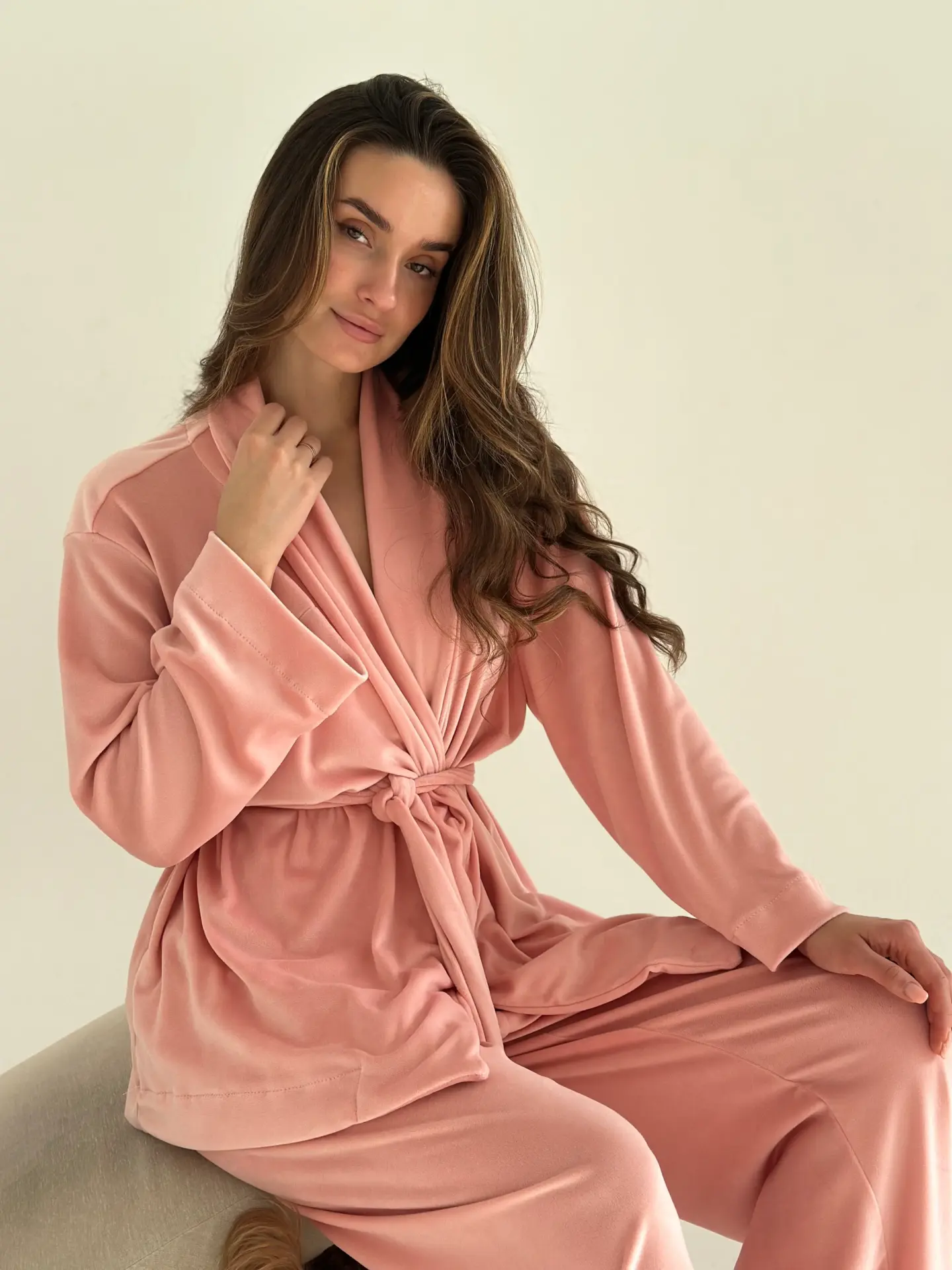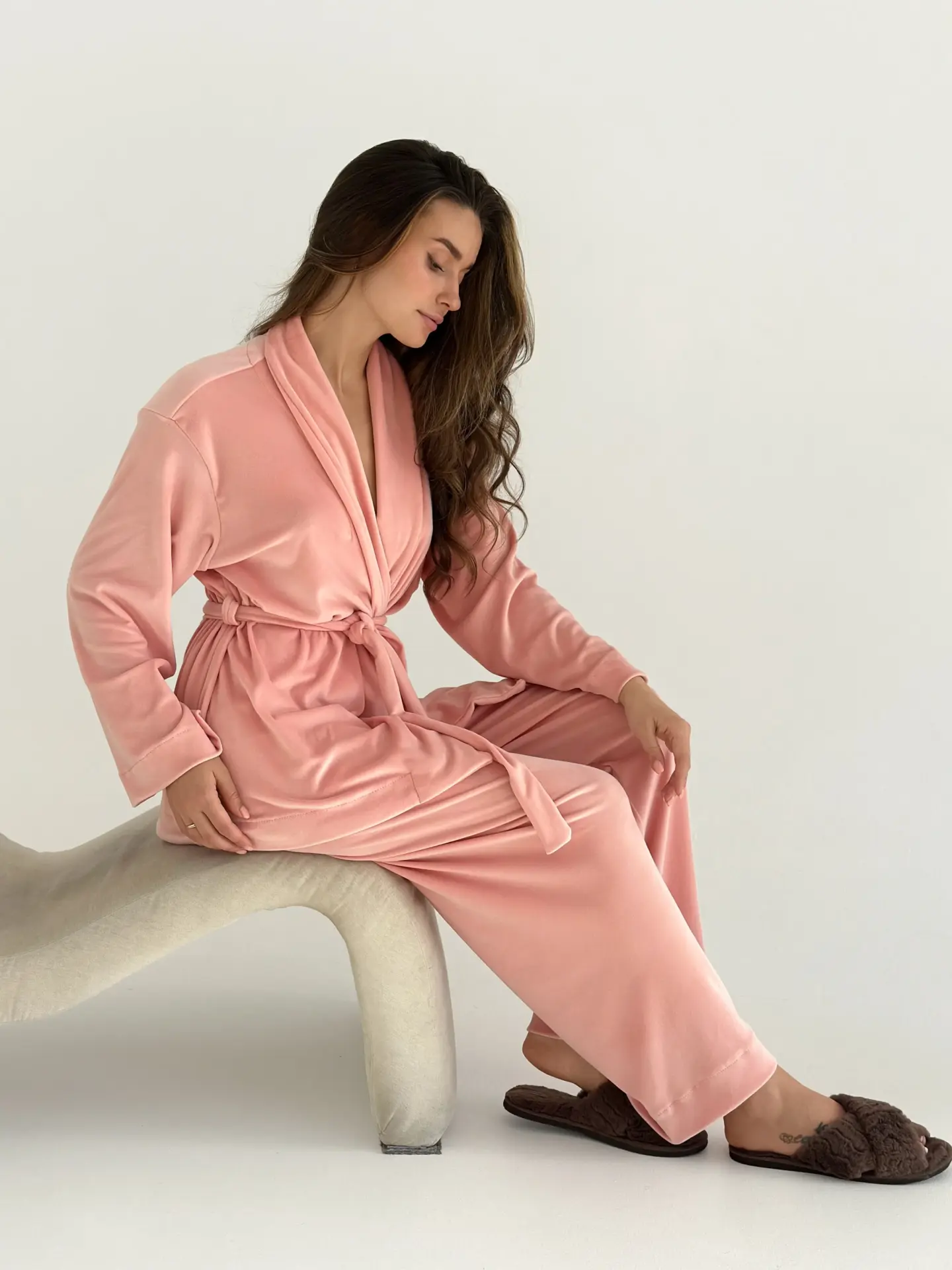 Костюм плюш штани та кофта на запах комір шаль рожевий