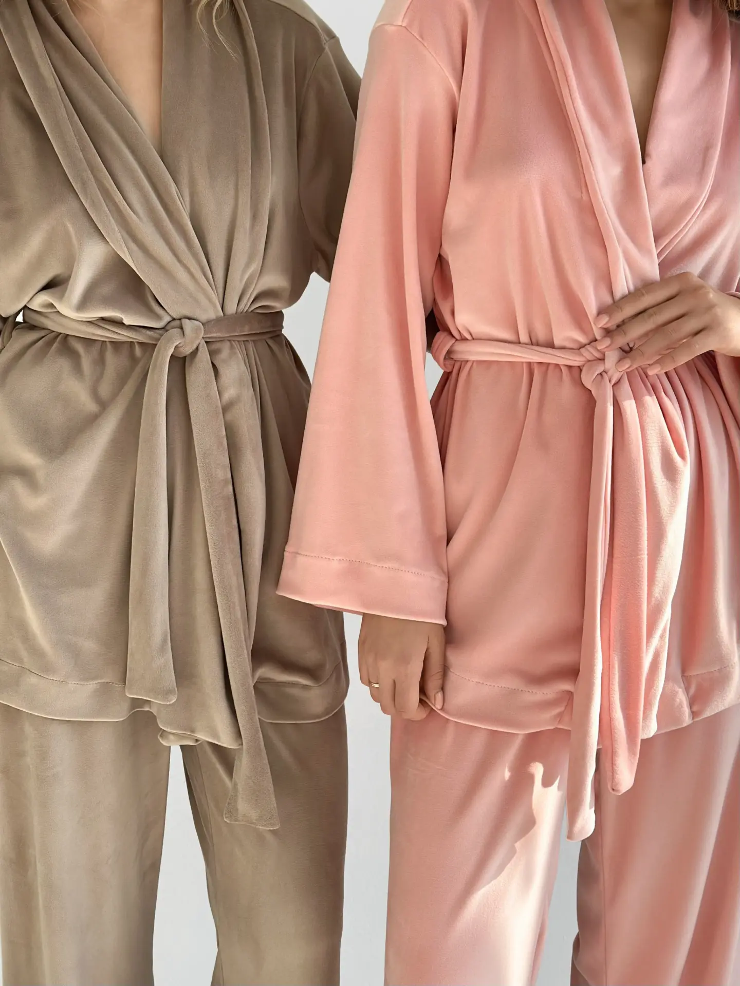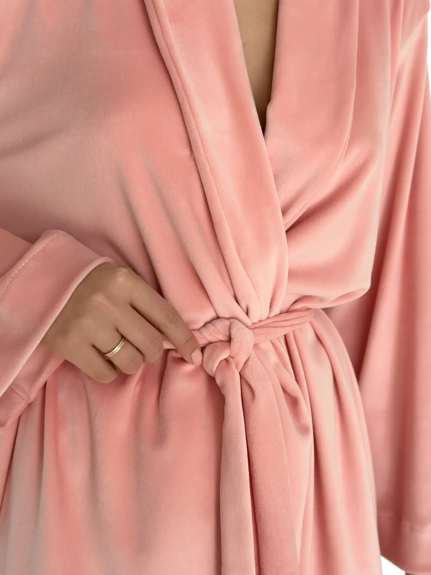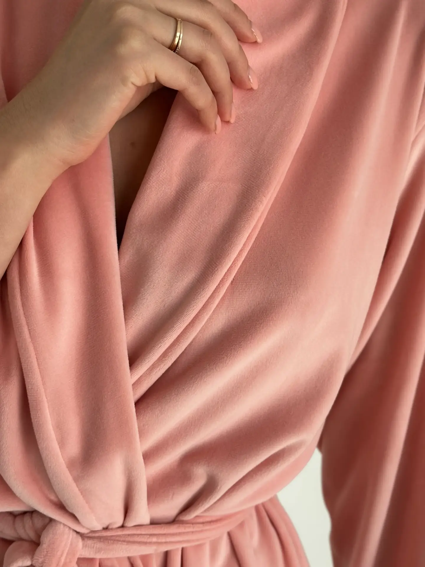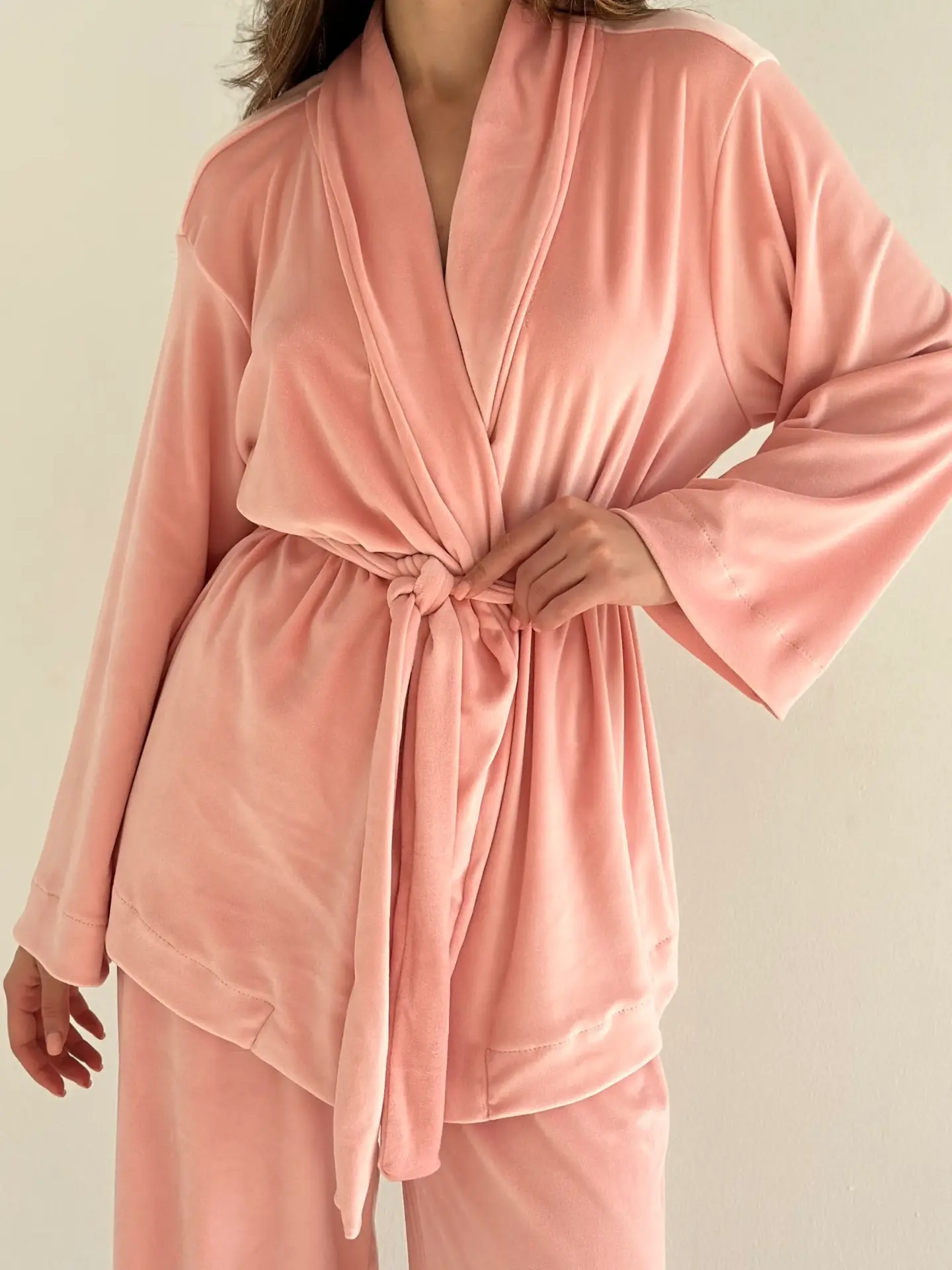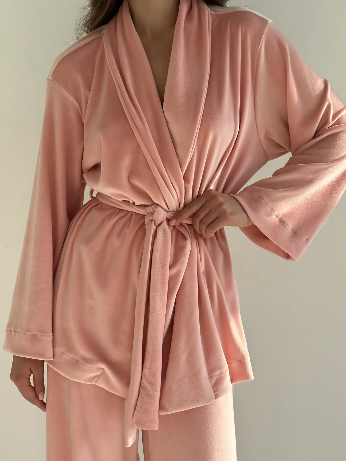 Костюм плюш штани та кофта на запах комір шаль рожевий