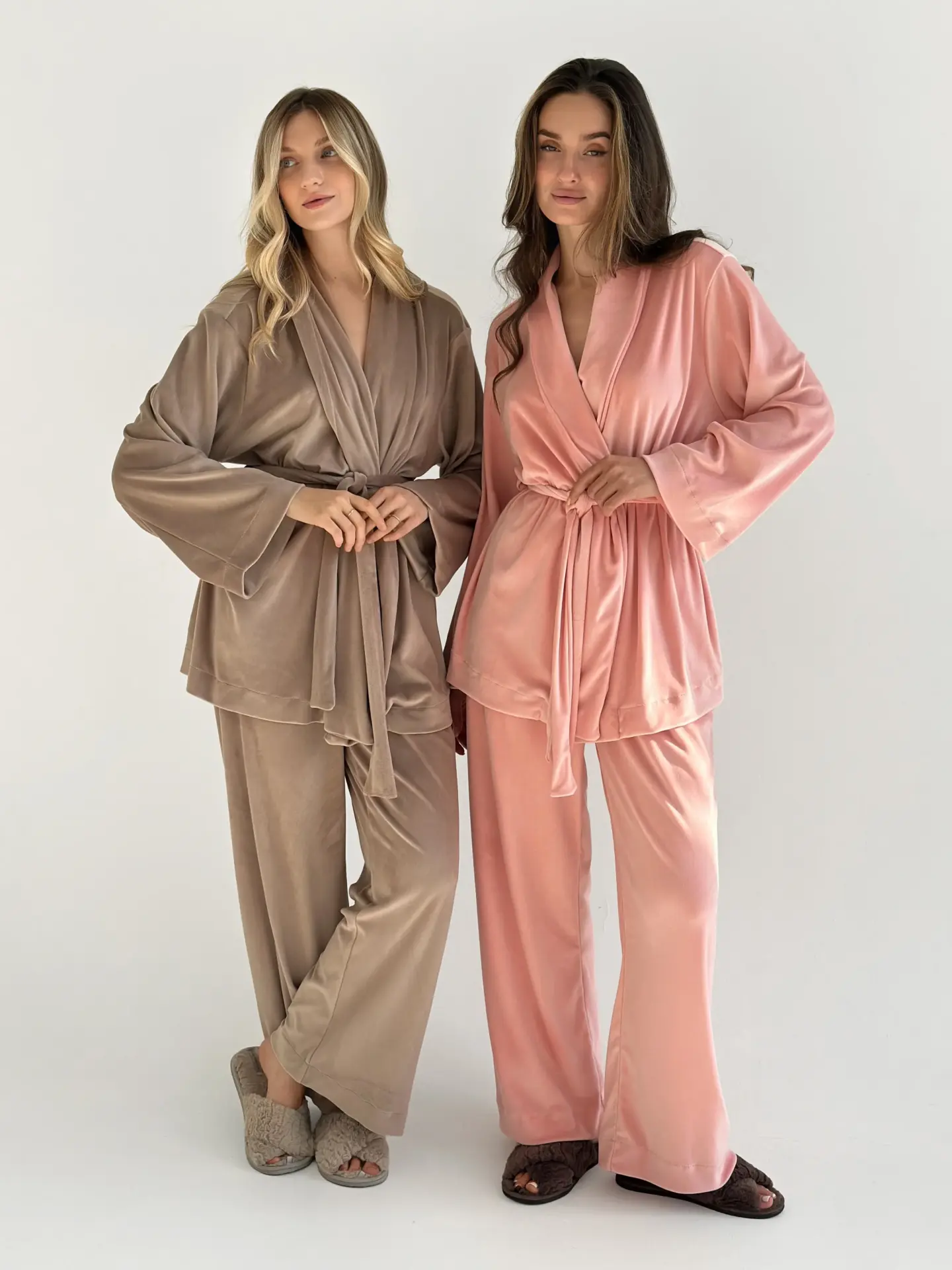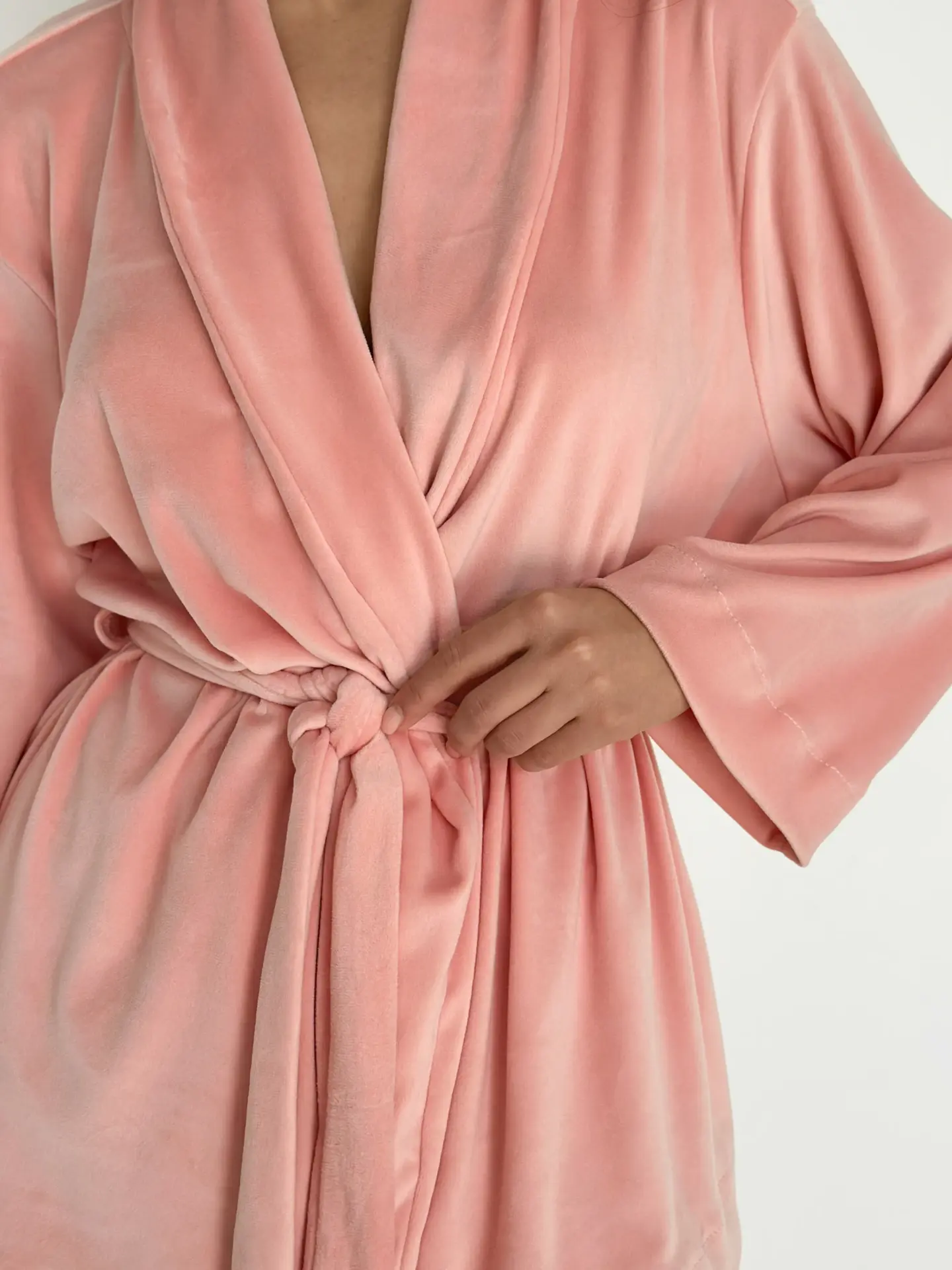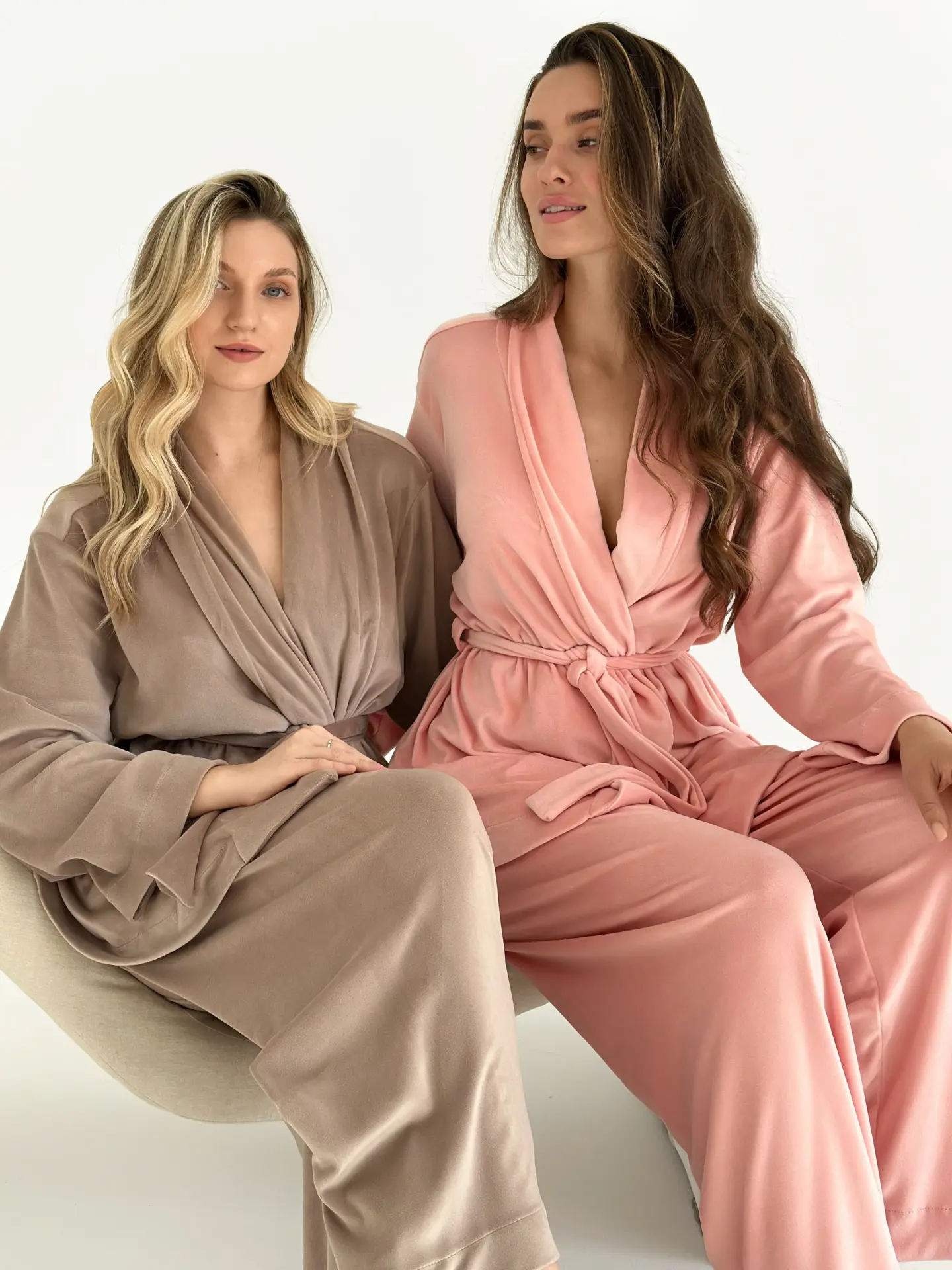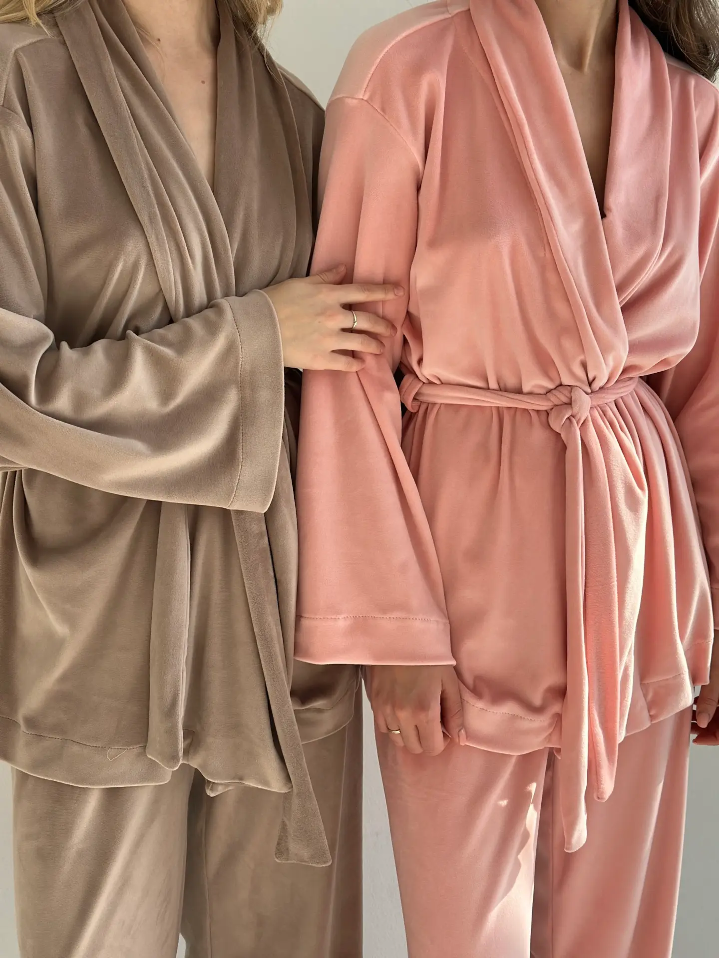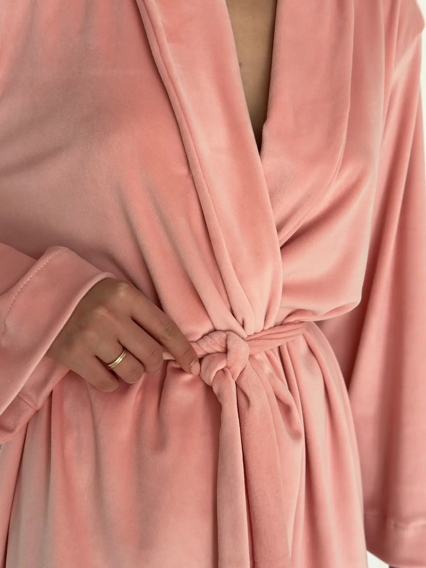 Костюм плюш штани та кофта на запах комір шаль рожевий
