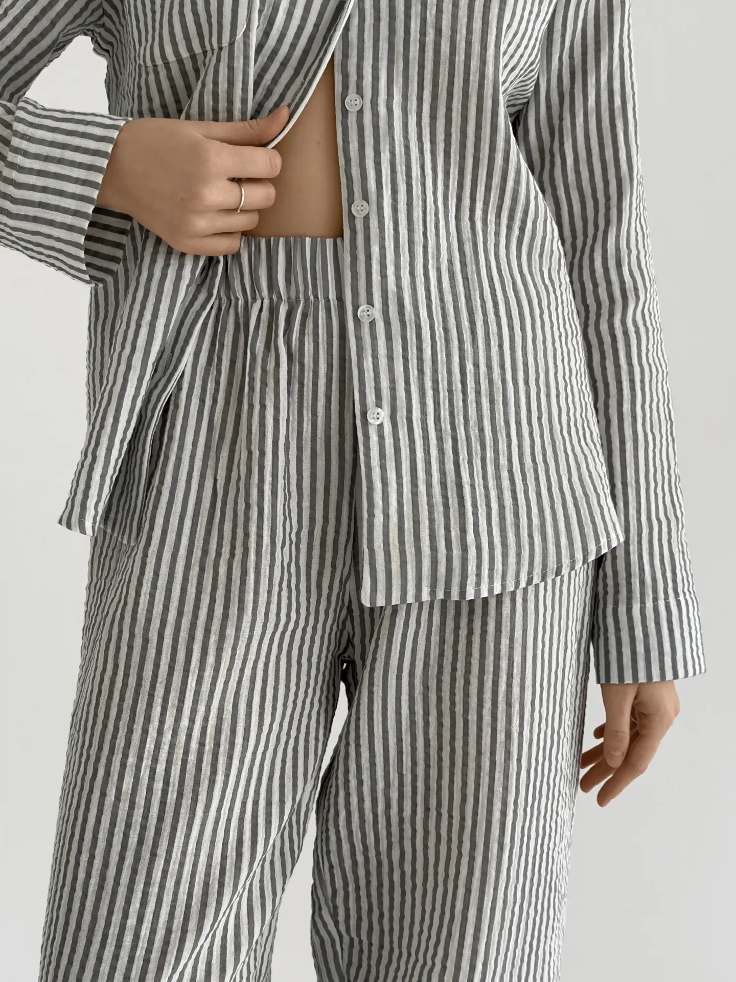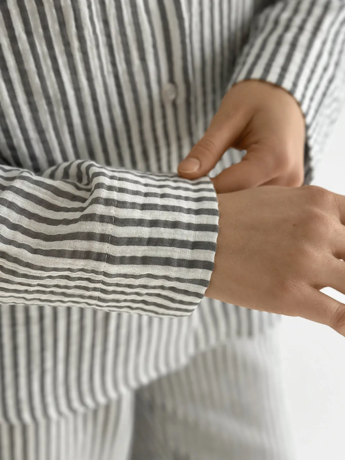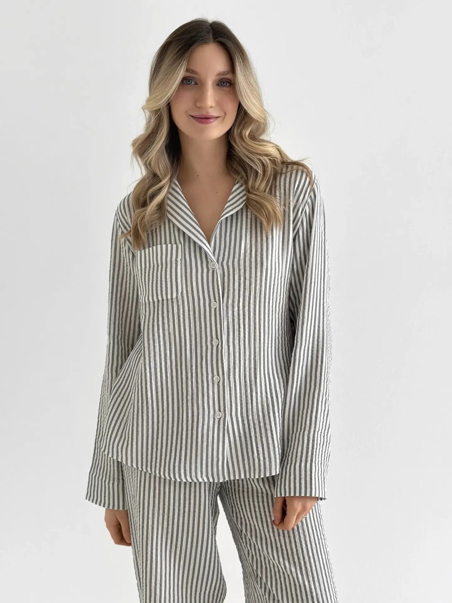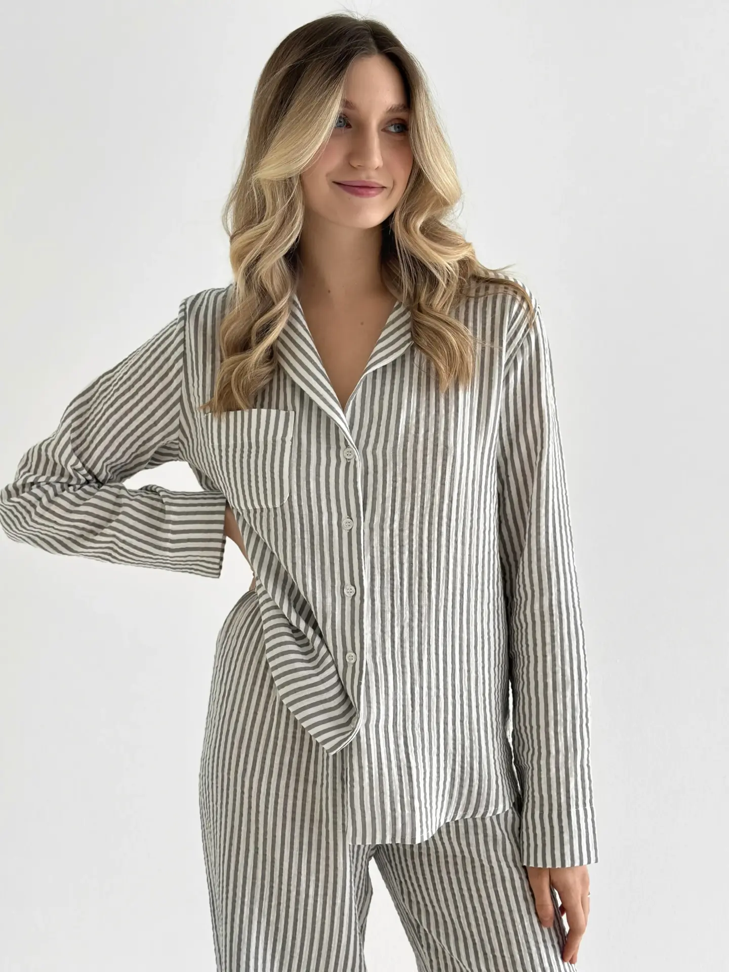 Костюм сорочка та штани муслін смужка темно-сіра - Twins