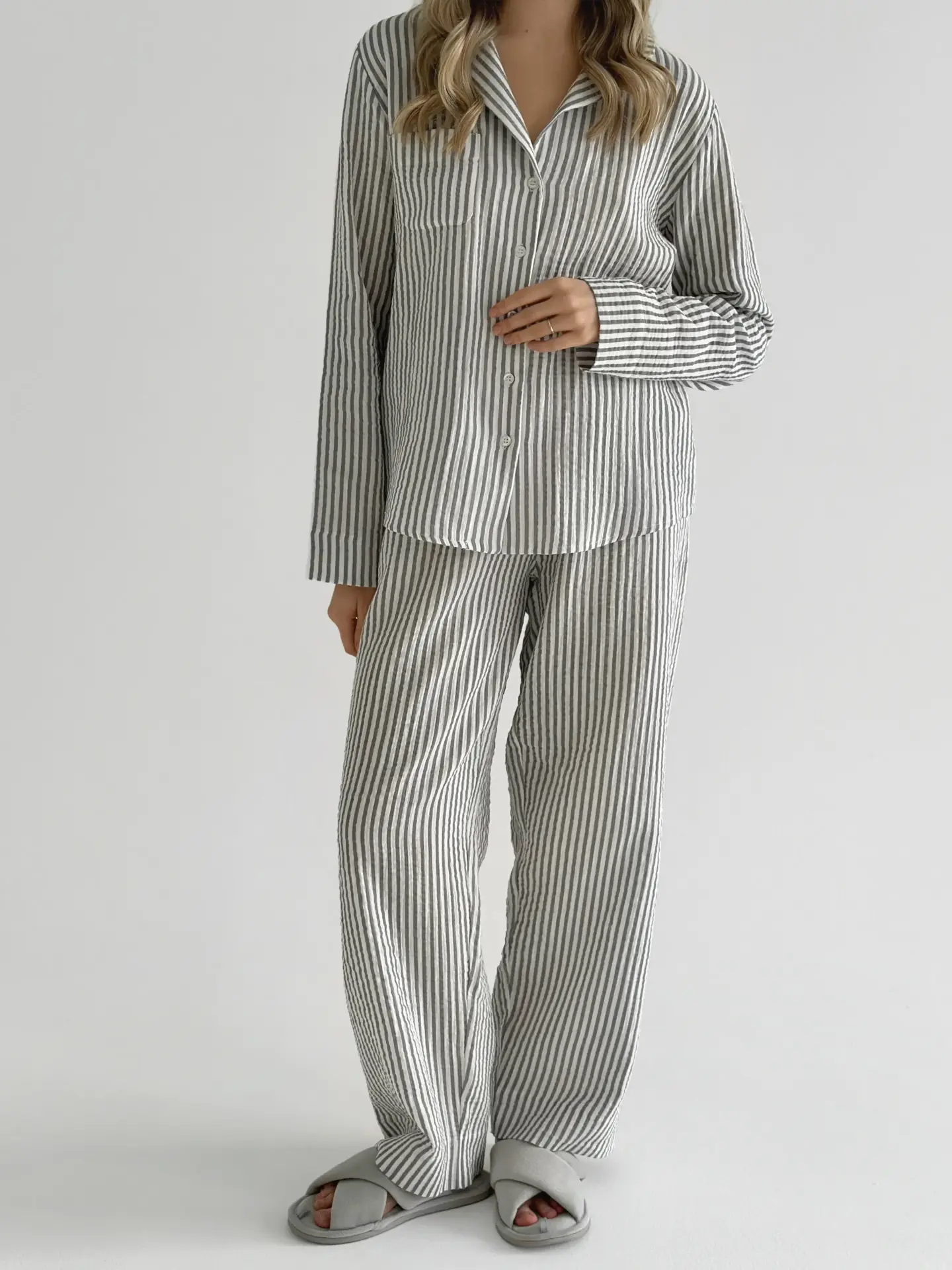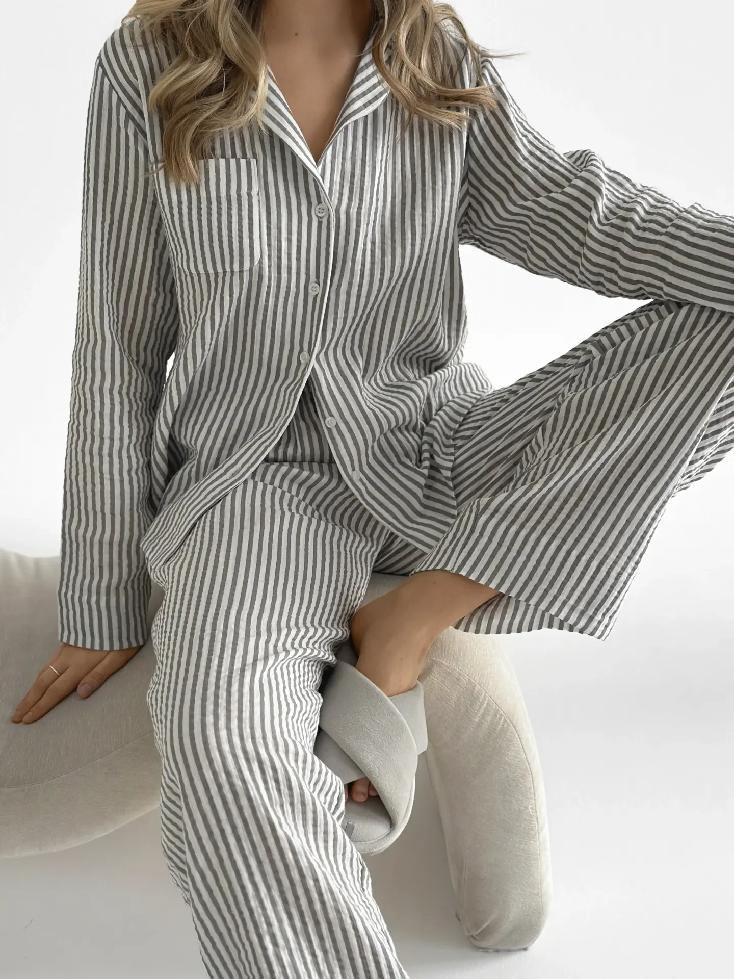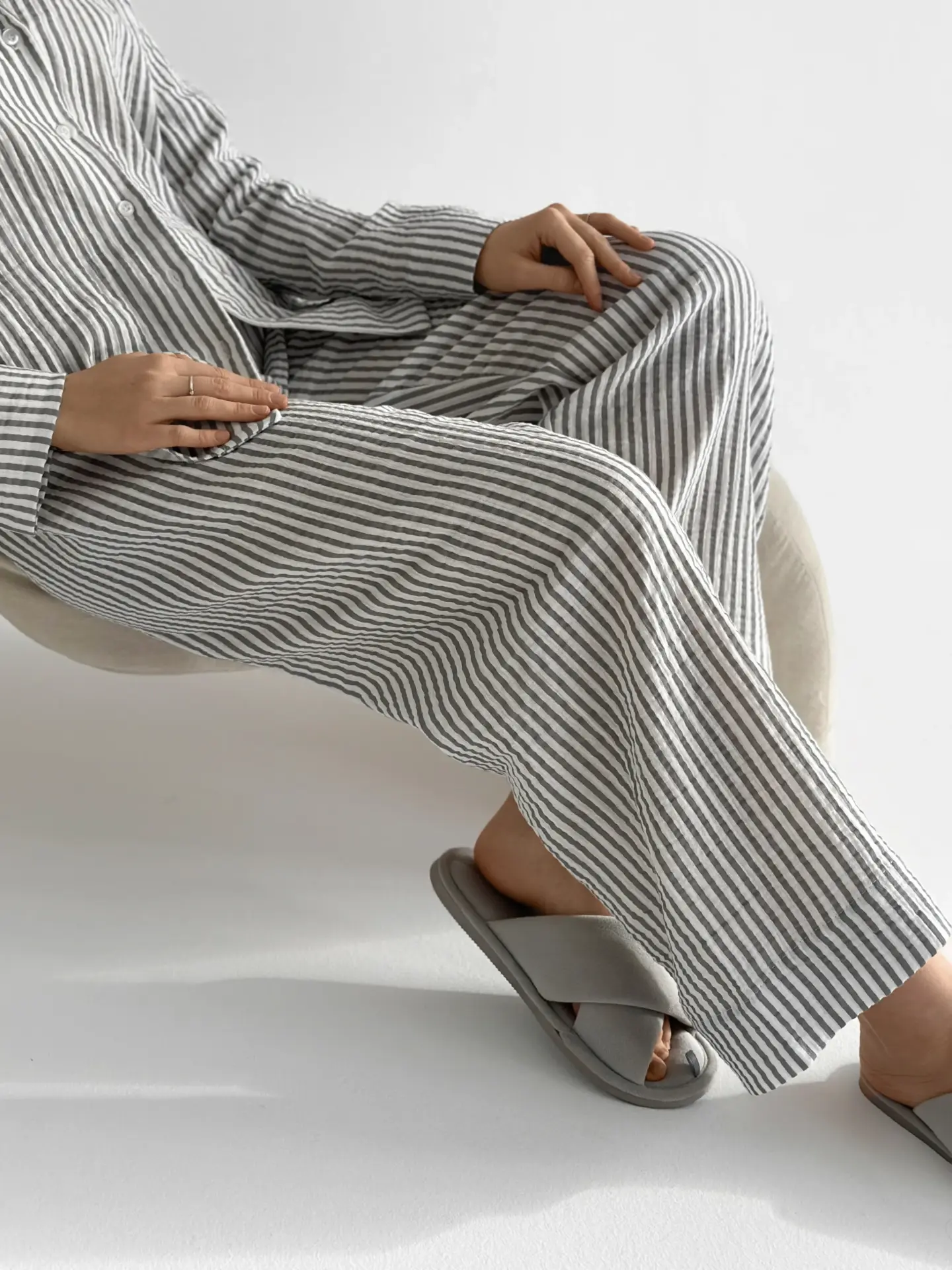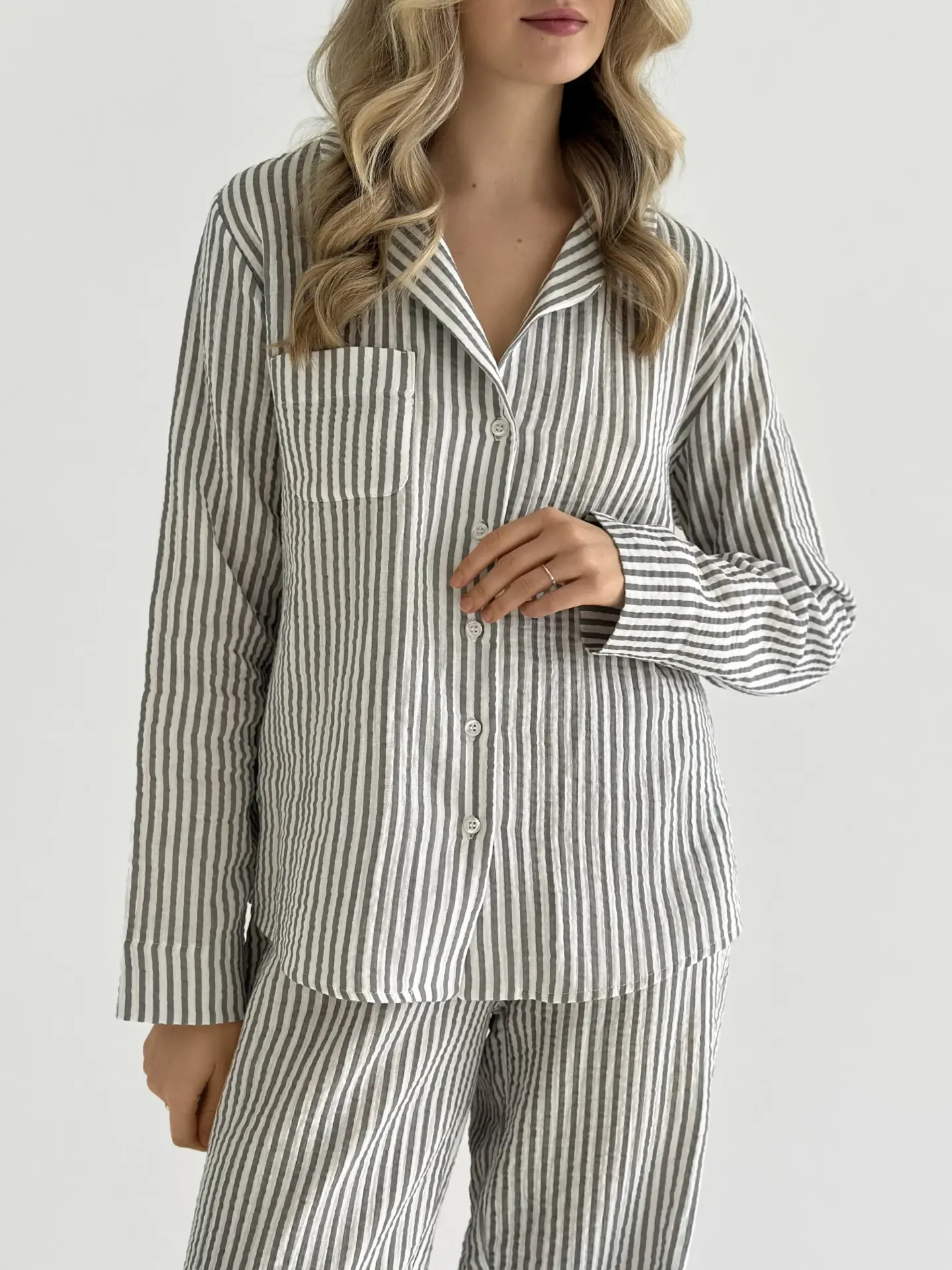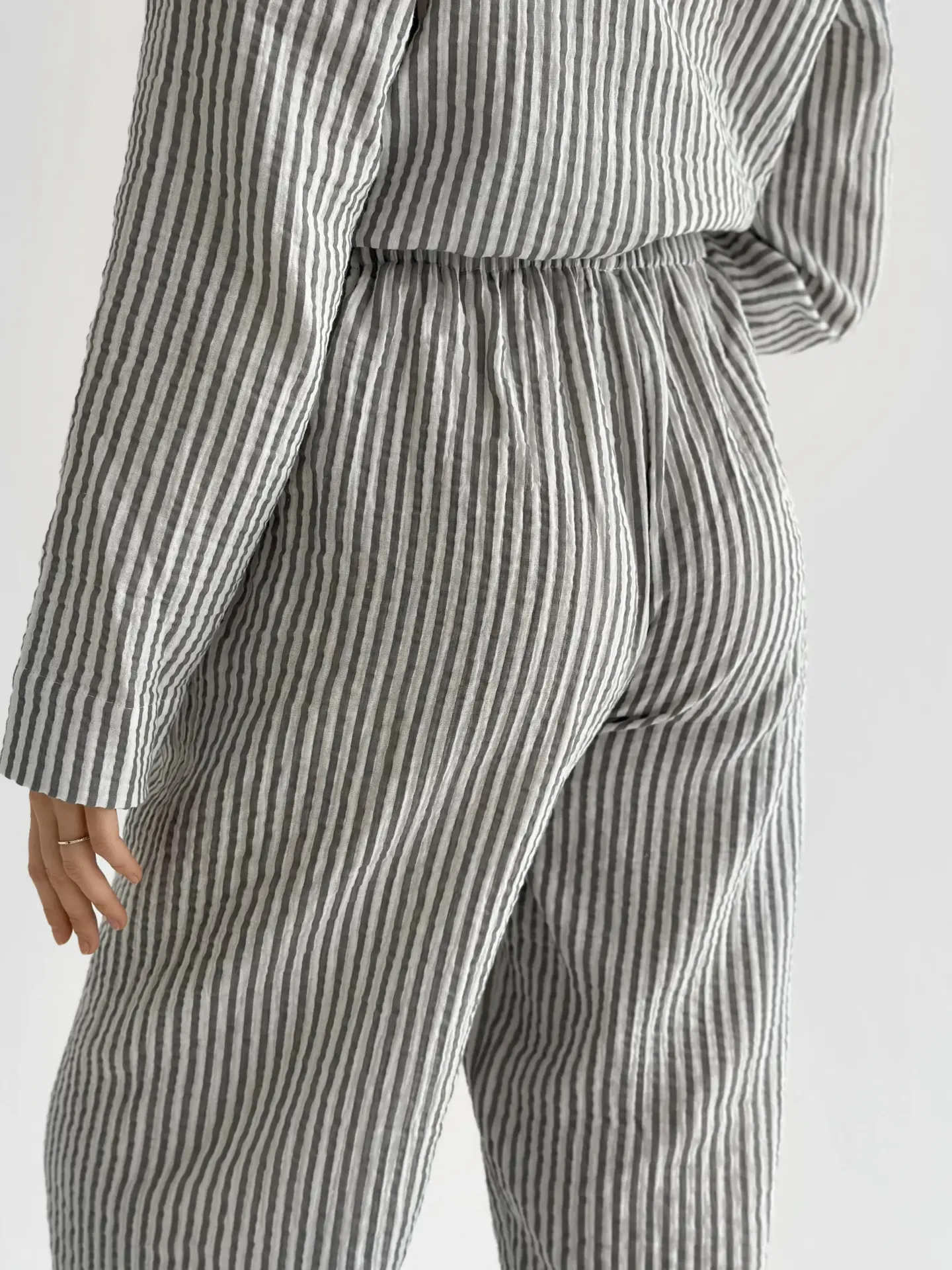Костюм сорочка та штани муслін смужка темно-сіра - Twins
