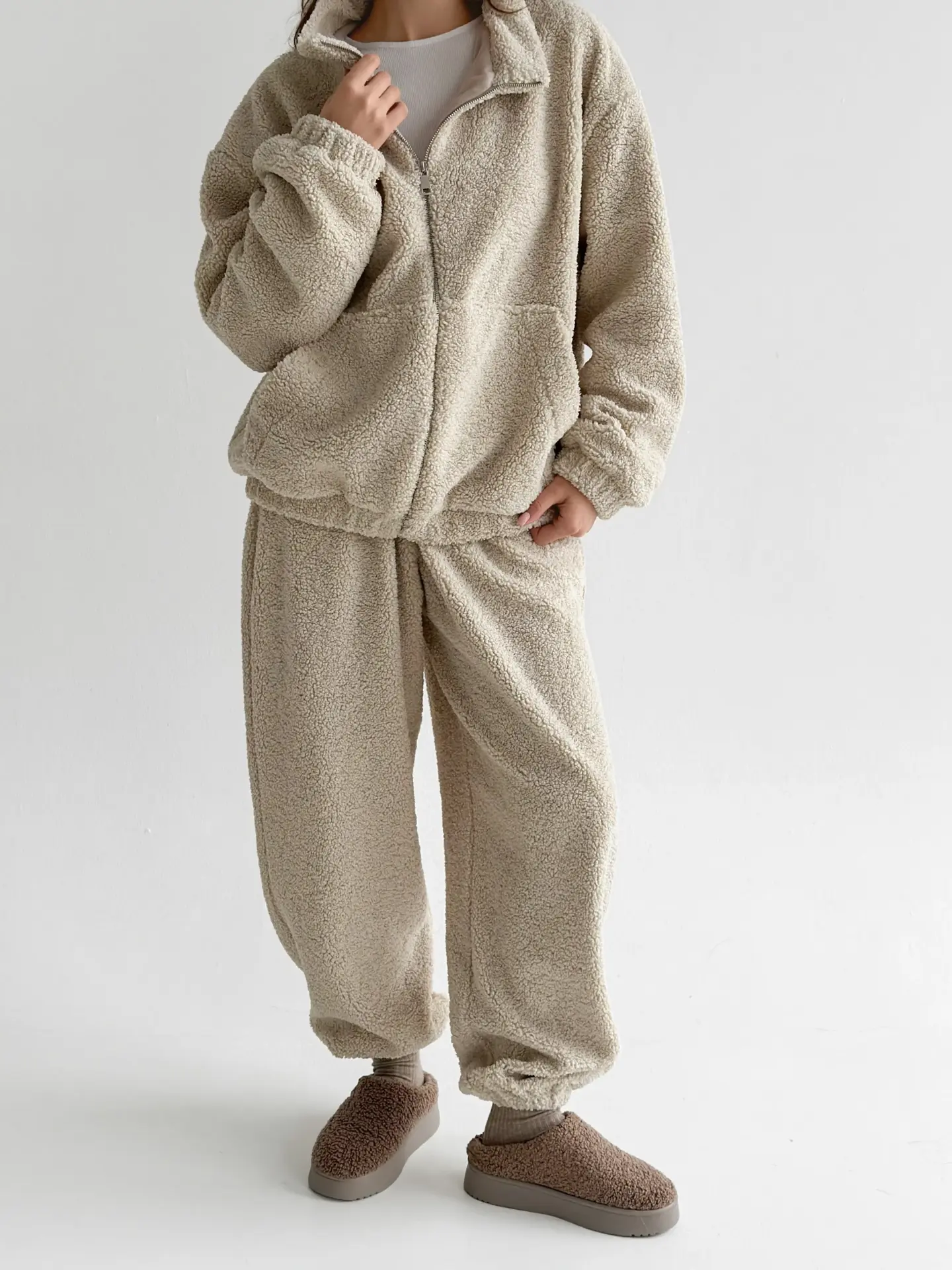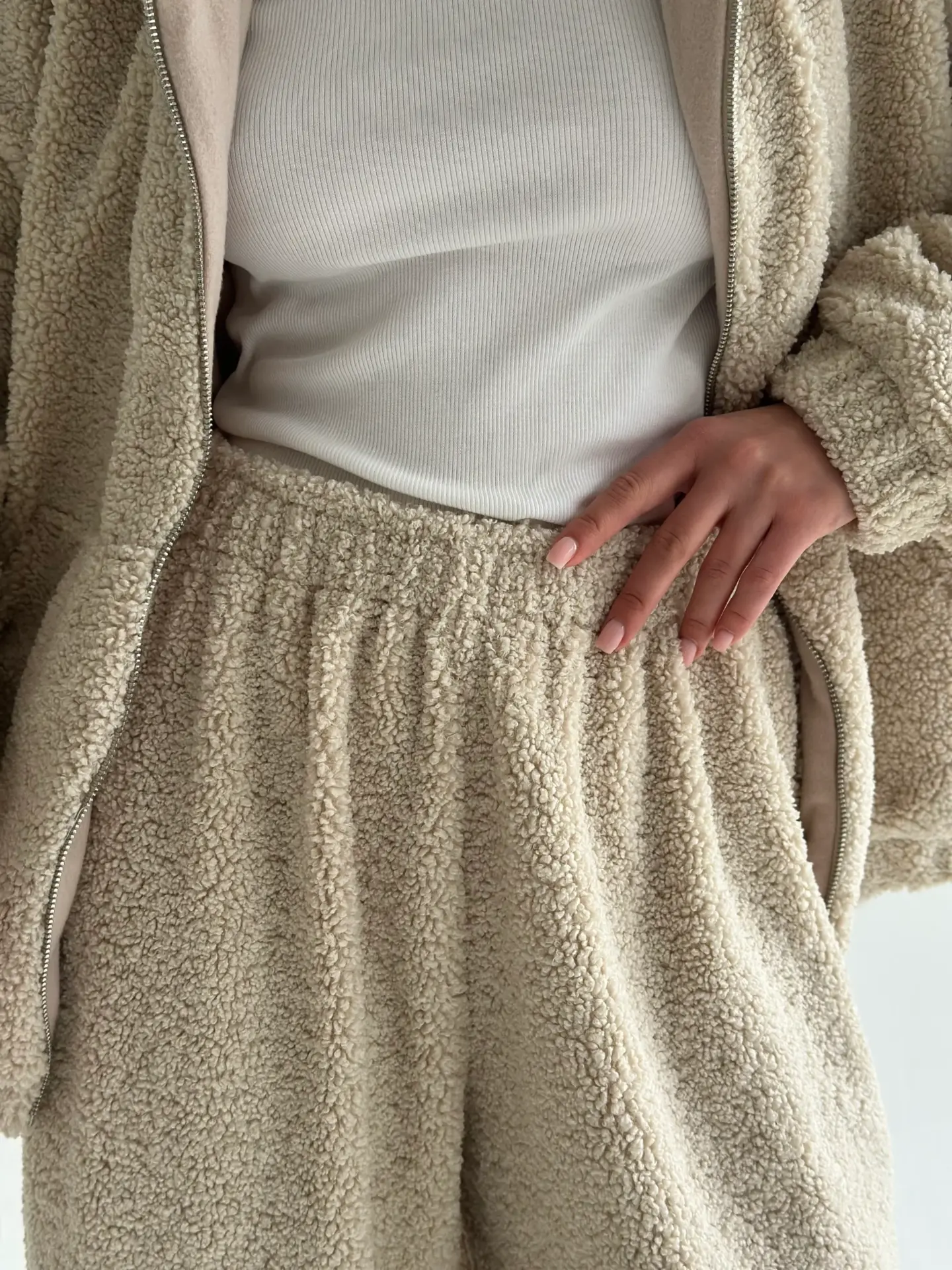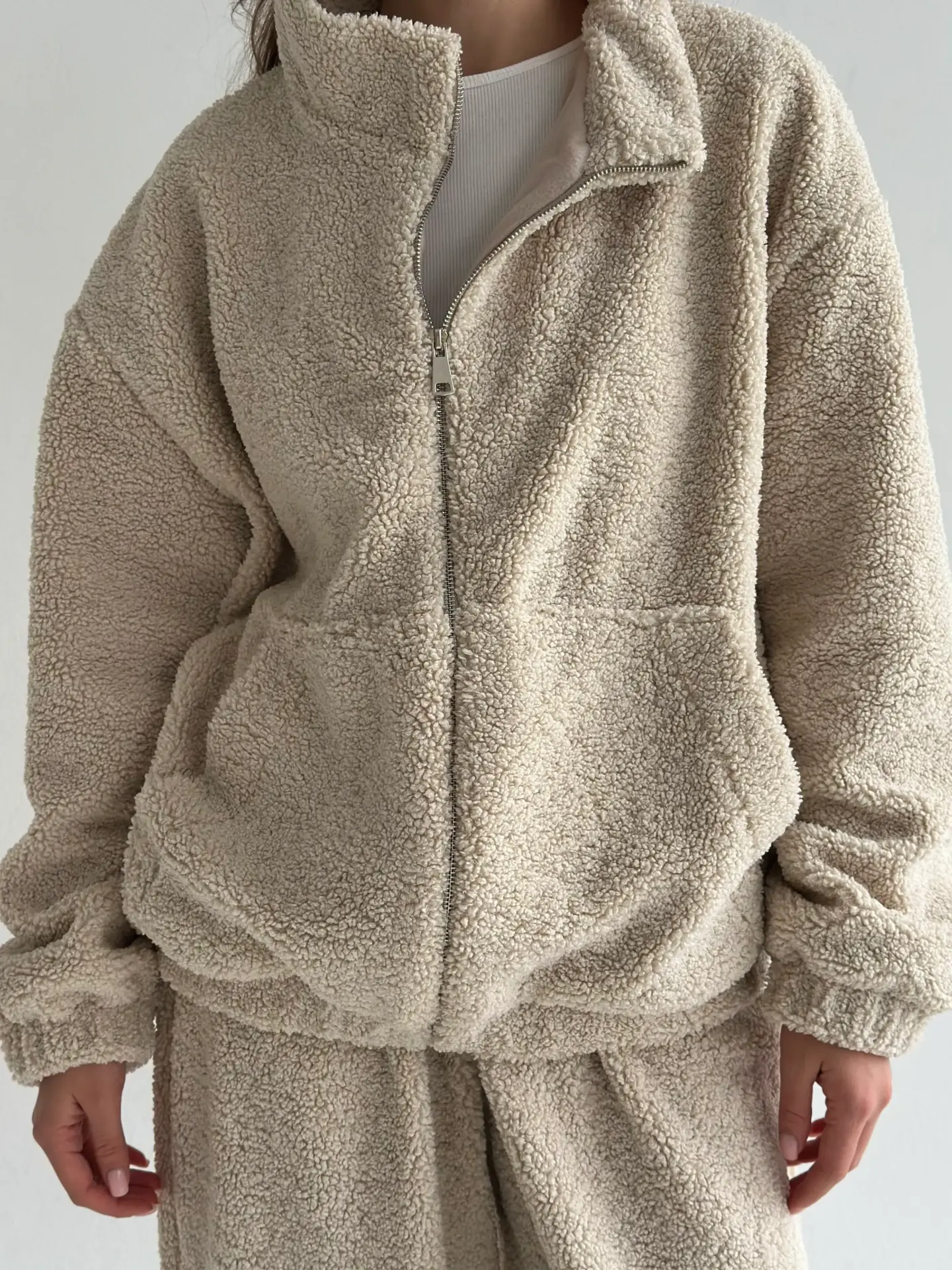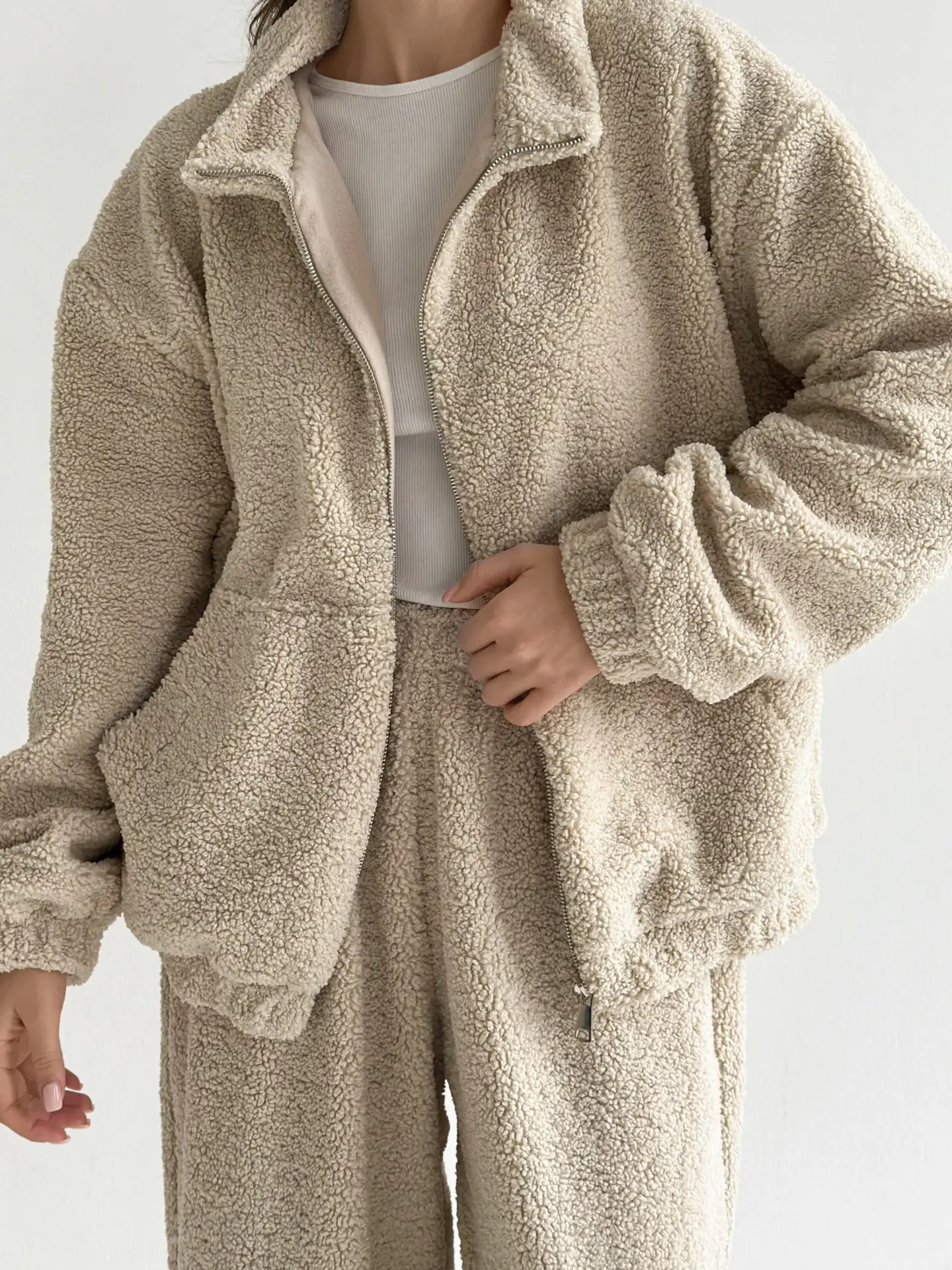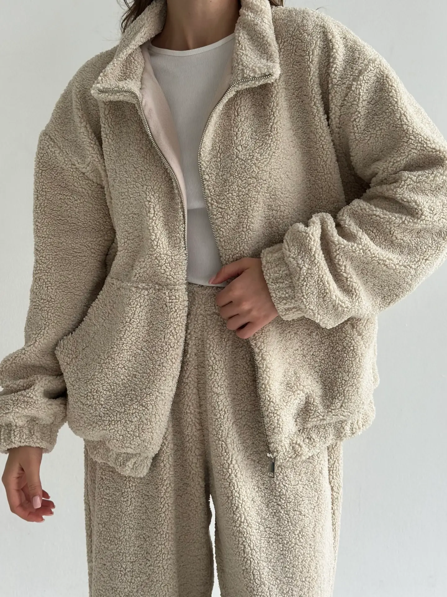 Костюм Teddy Soft — це максимум затишку та стилю. М’який пухнастий матеріал забезпечує комфорт і тепло, ідеально підходячи для холодних днів. Стильний крій і практична блискавка роблять костюм універсальним для дому чи прогулянок.