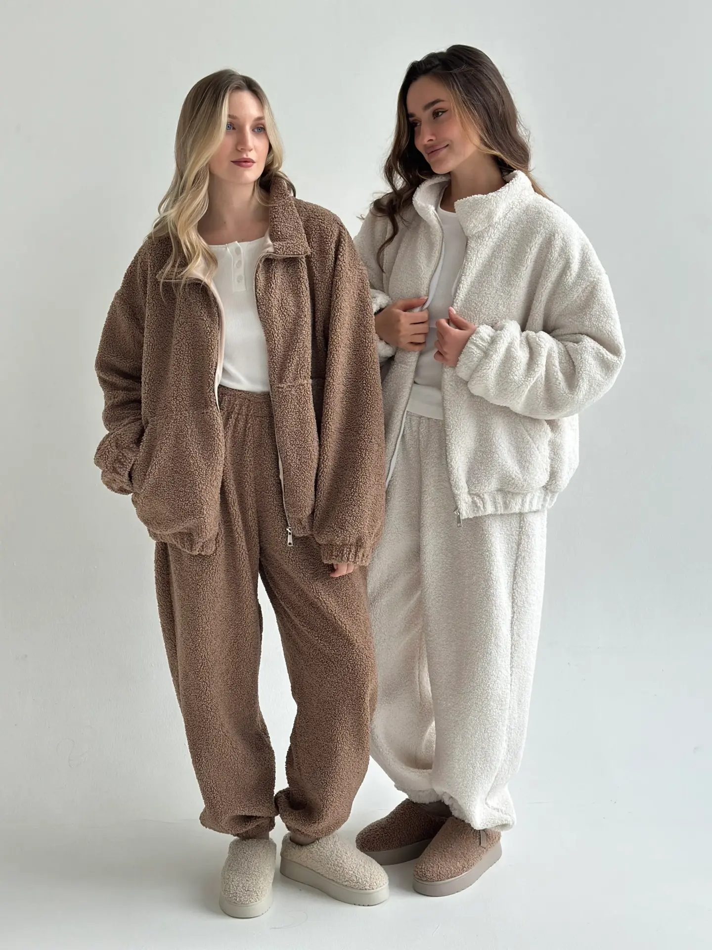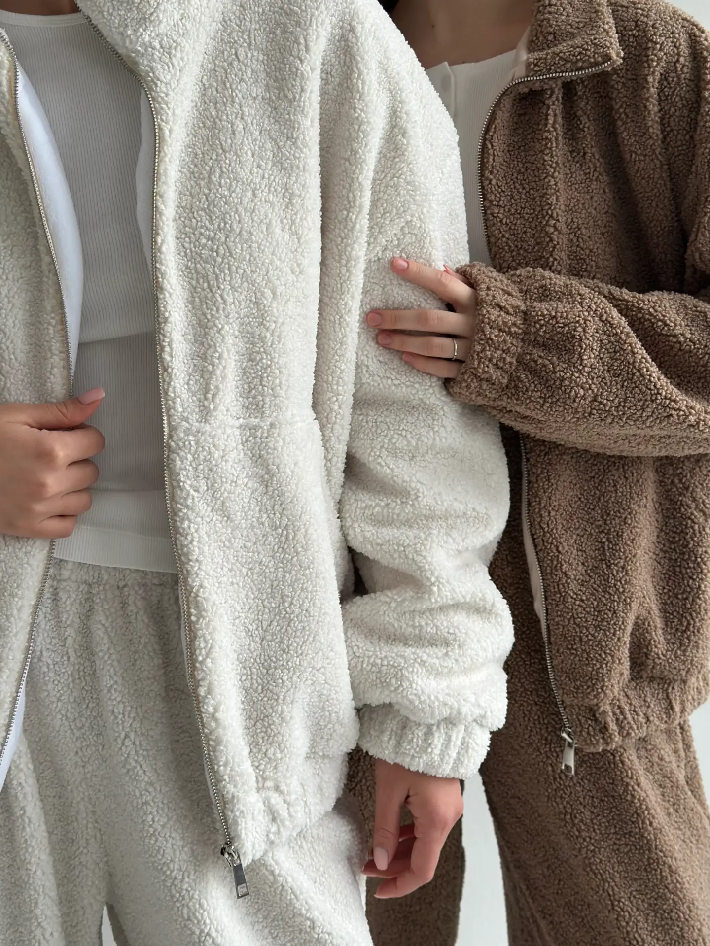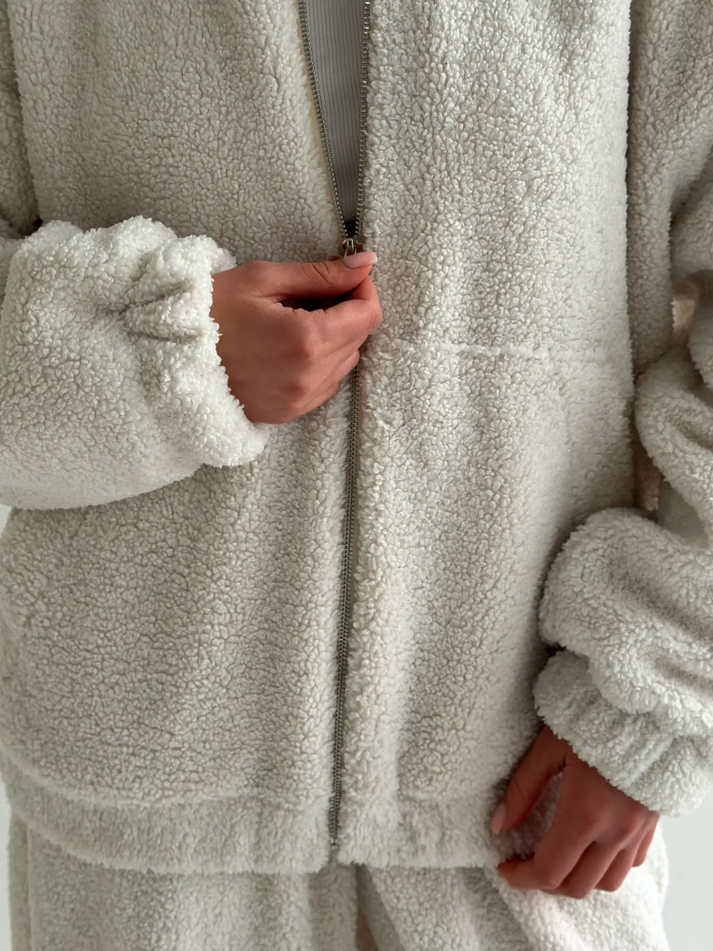Костюм Teddy Soft — це максимум затишку та стилю. М’який пухнастий матеріал забезпечує комфорт і тепло, ідеально підходячи для холодних днів. Стильний крій і практична блискавка роблять костюм універсальним для дому чи прогулянок.