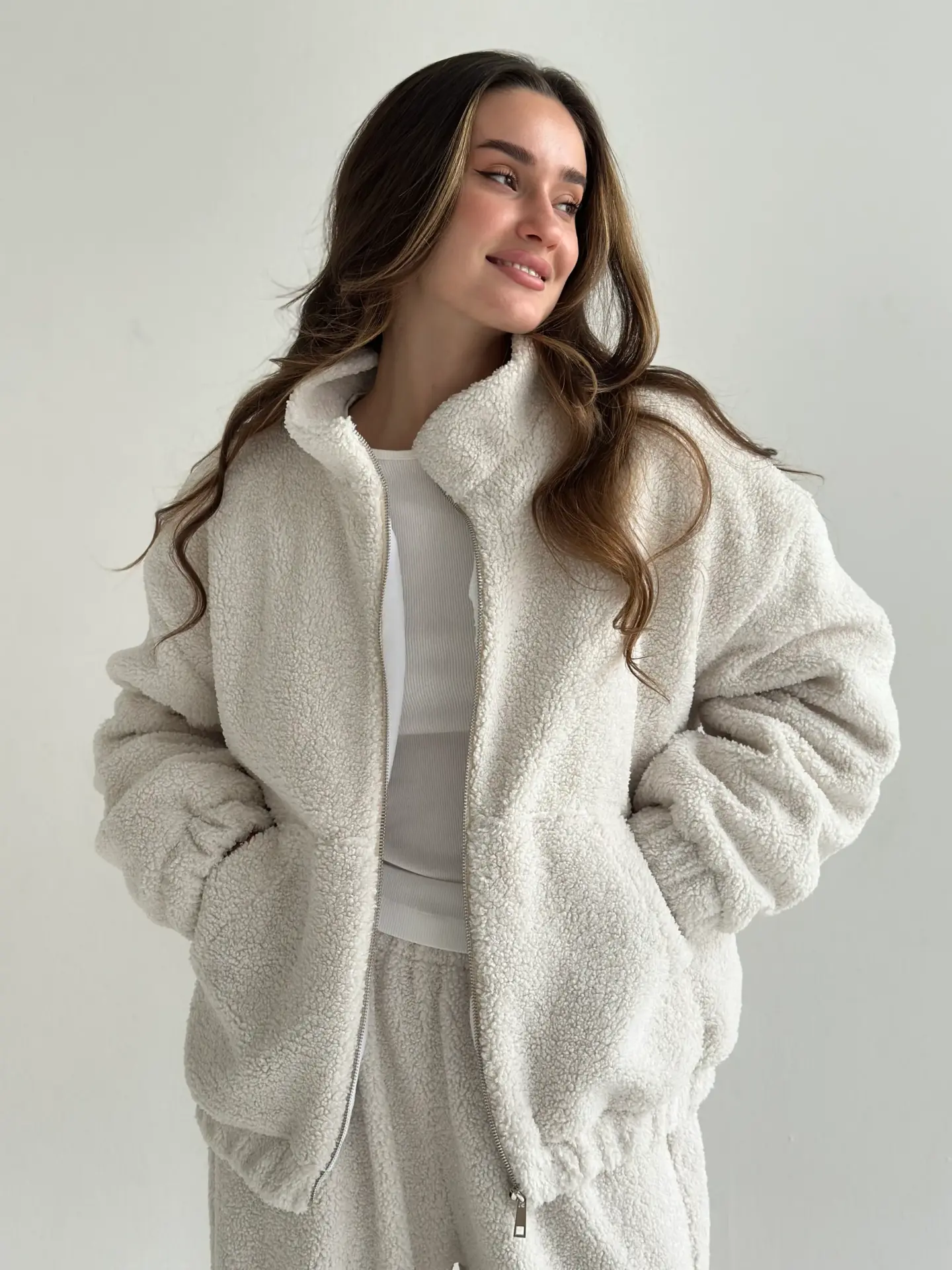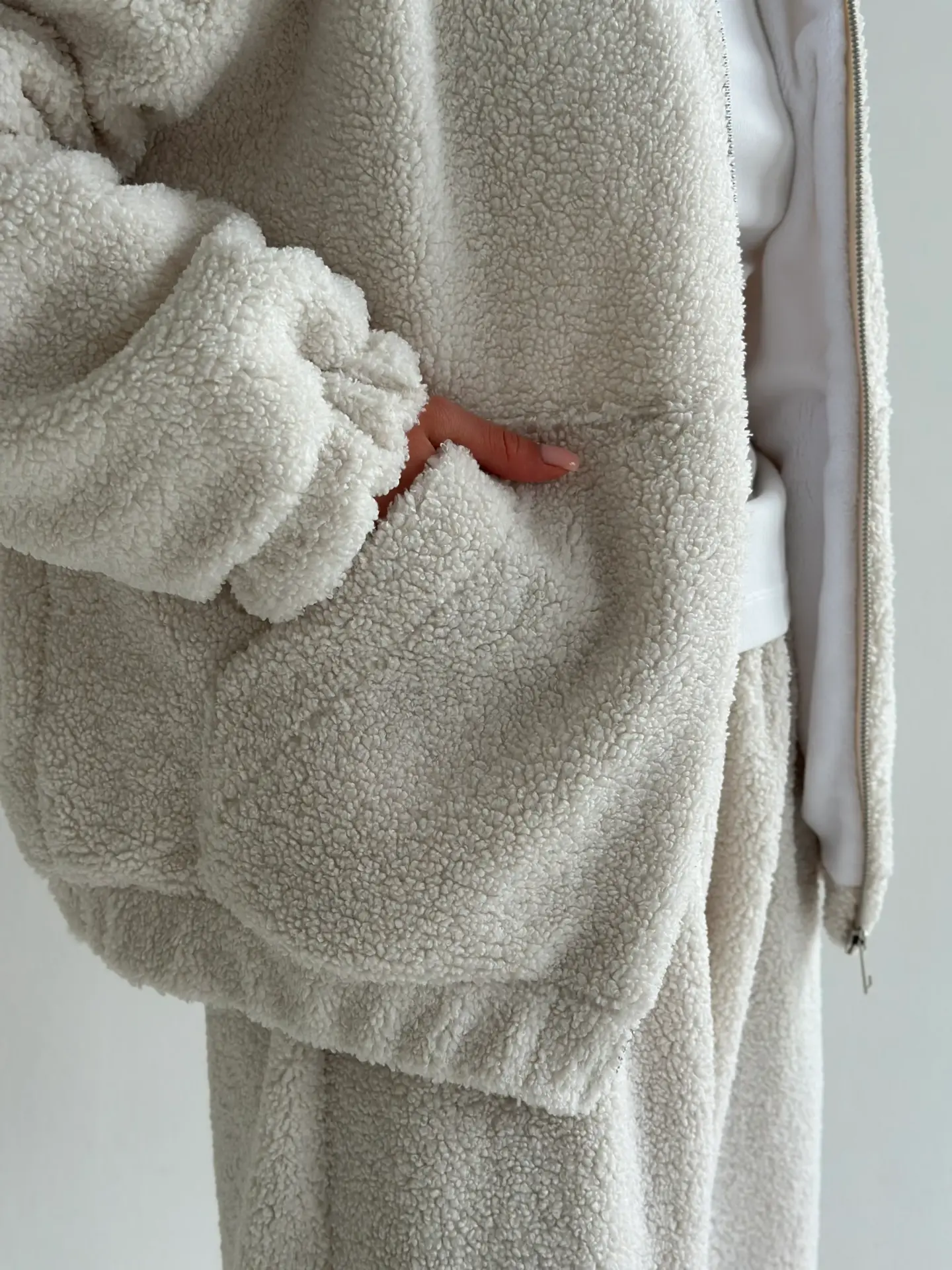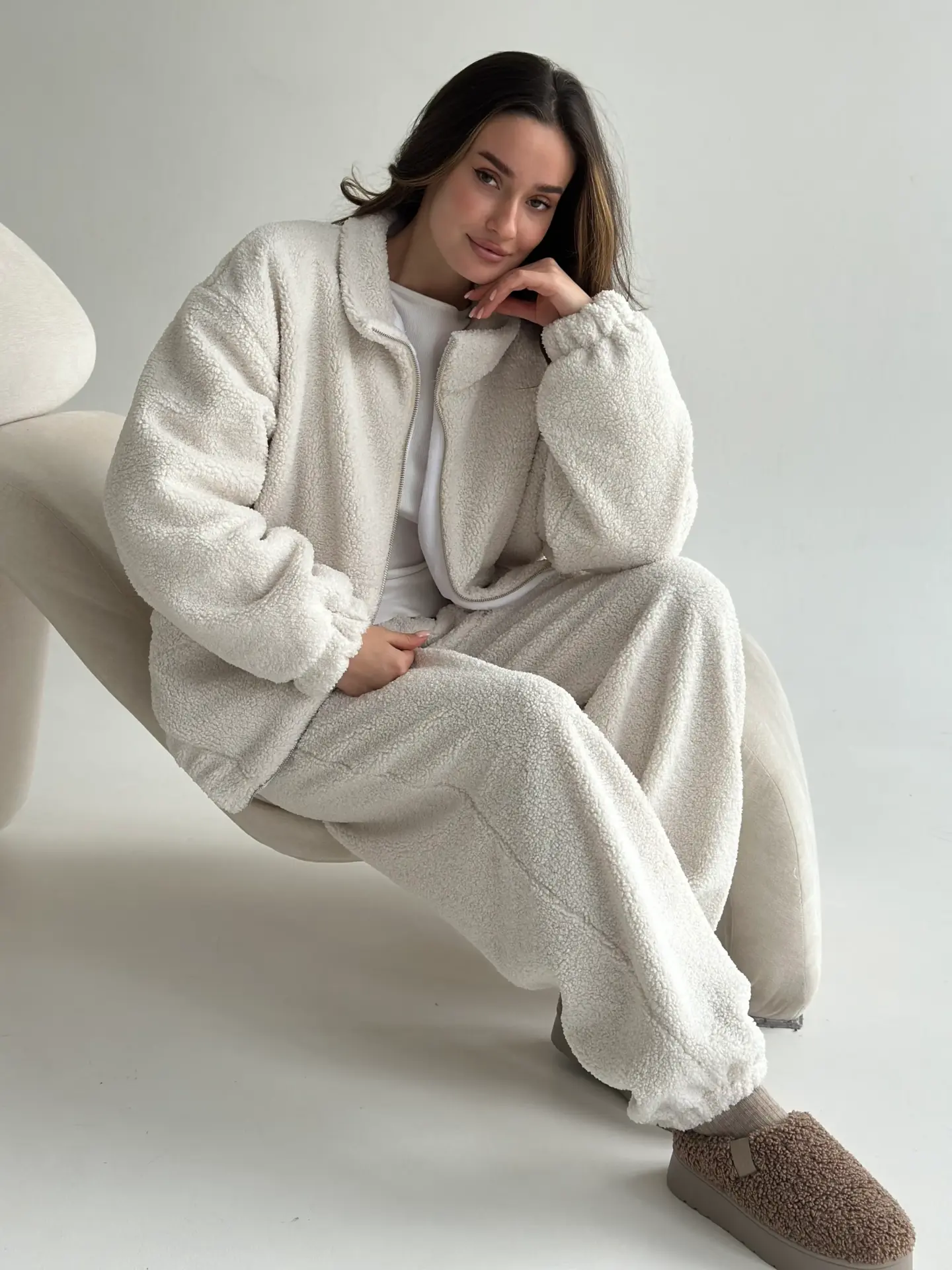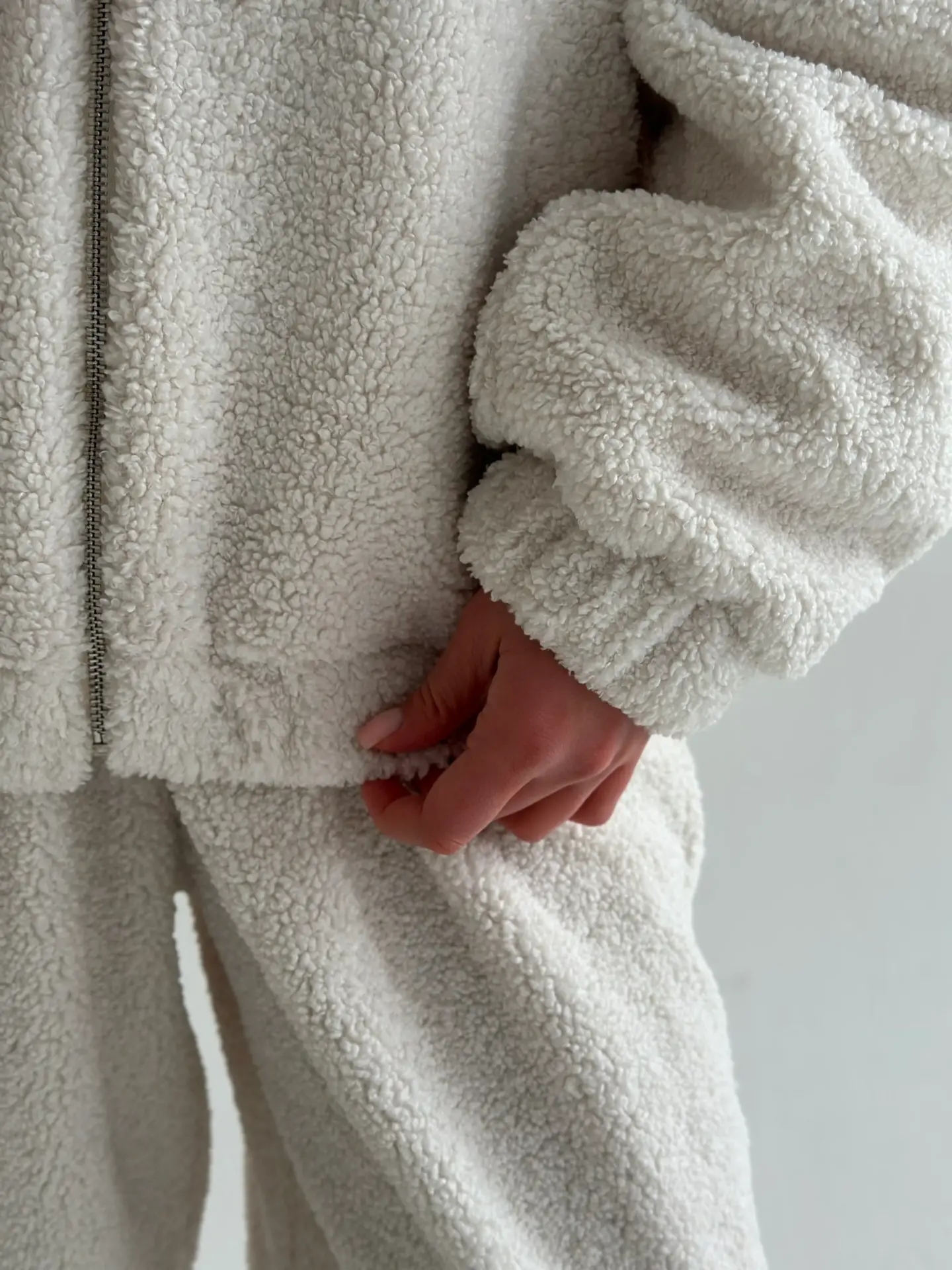 Костюм Teddy Soft — це максимум затишку та стилю. М’який пухнастий матеріал забезпечує комфорт і тепло, ідеально підходячи для холодних днів. Стильний крій і практична блискавка роблять костюм універсальним для дому чи прогулянок.
