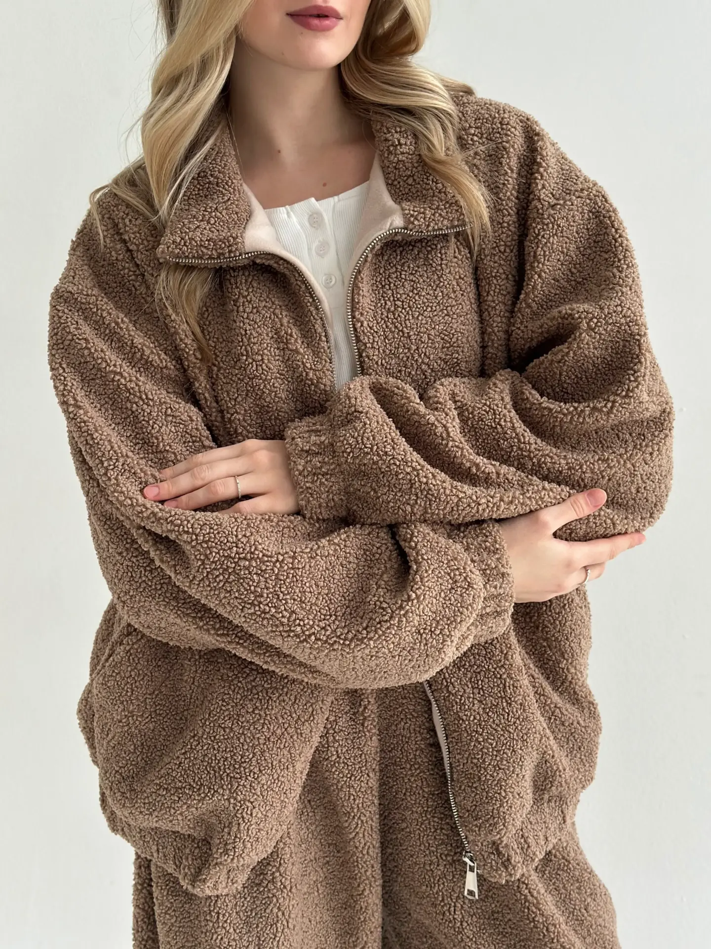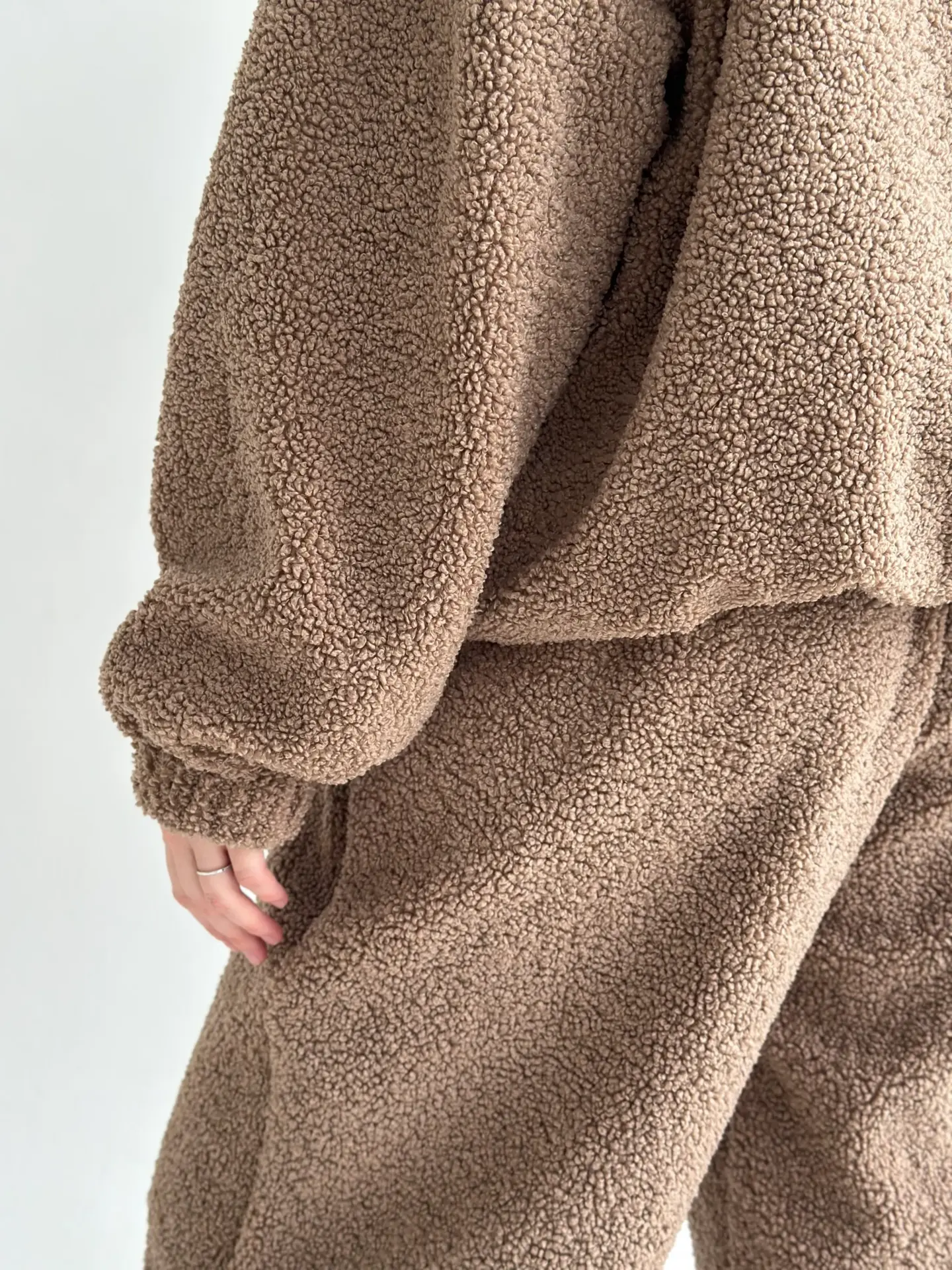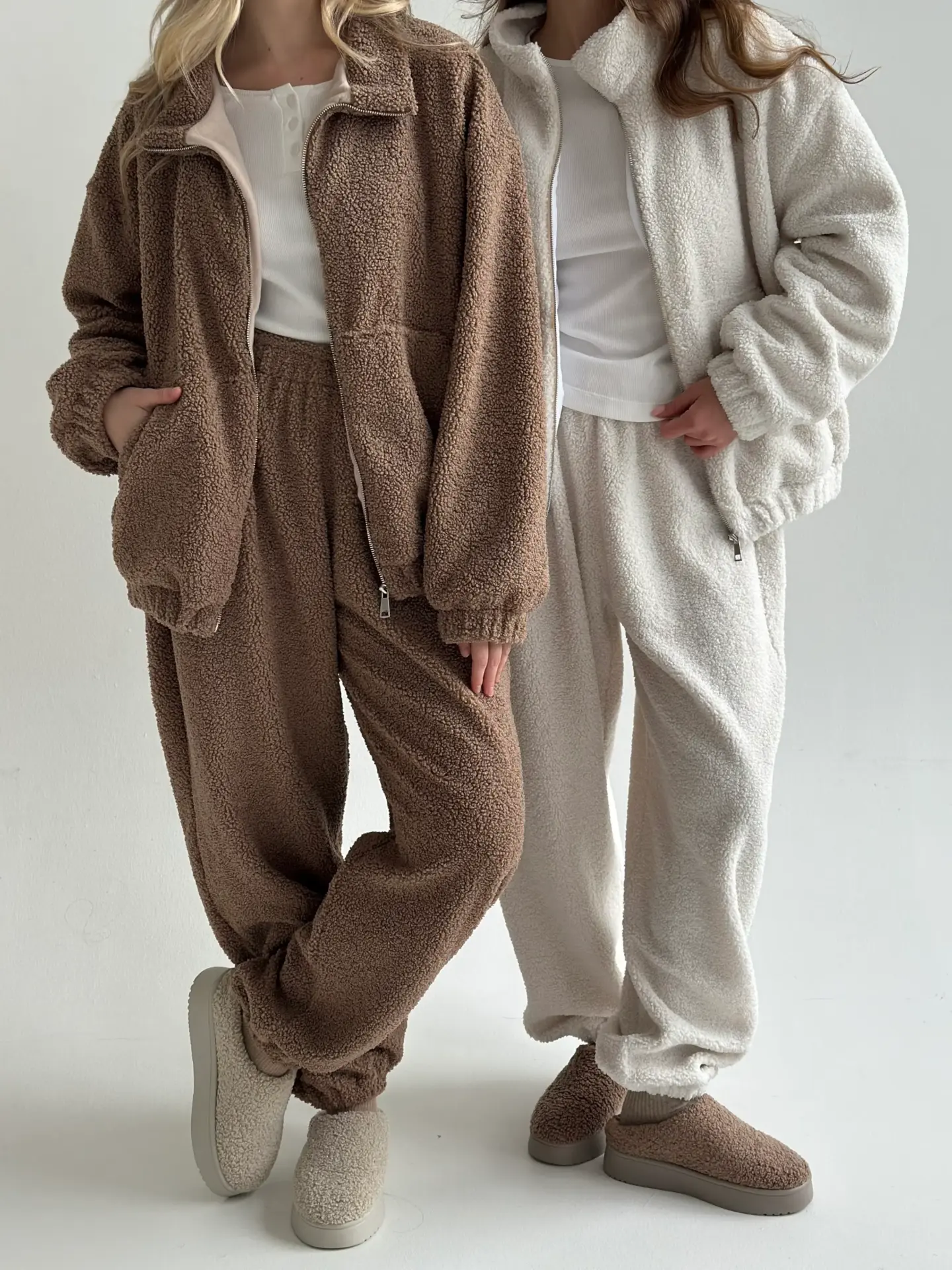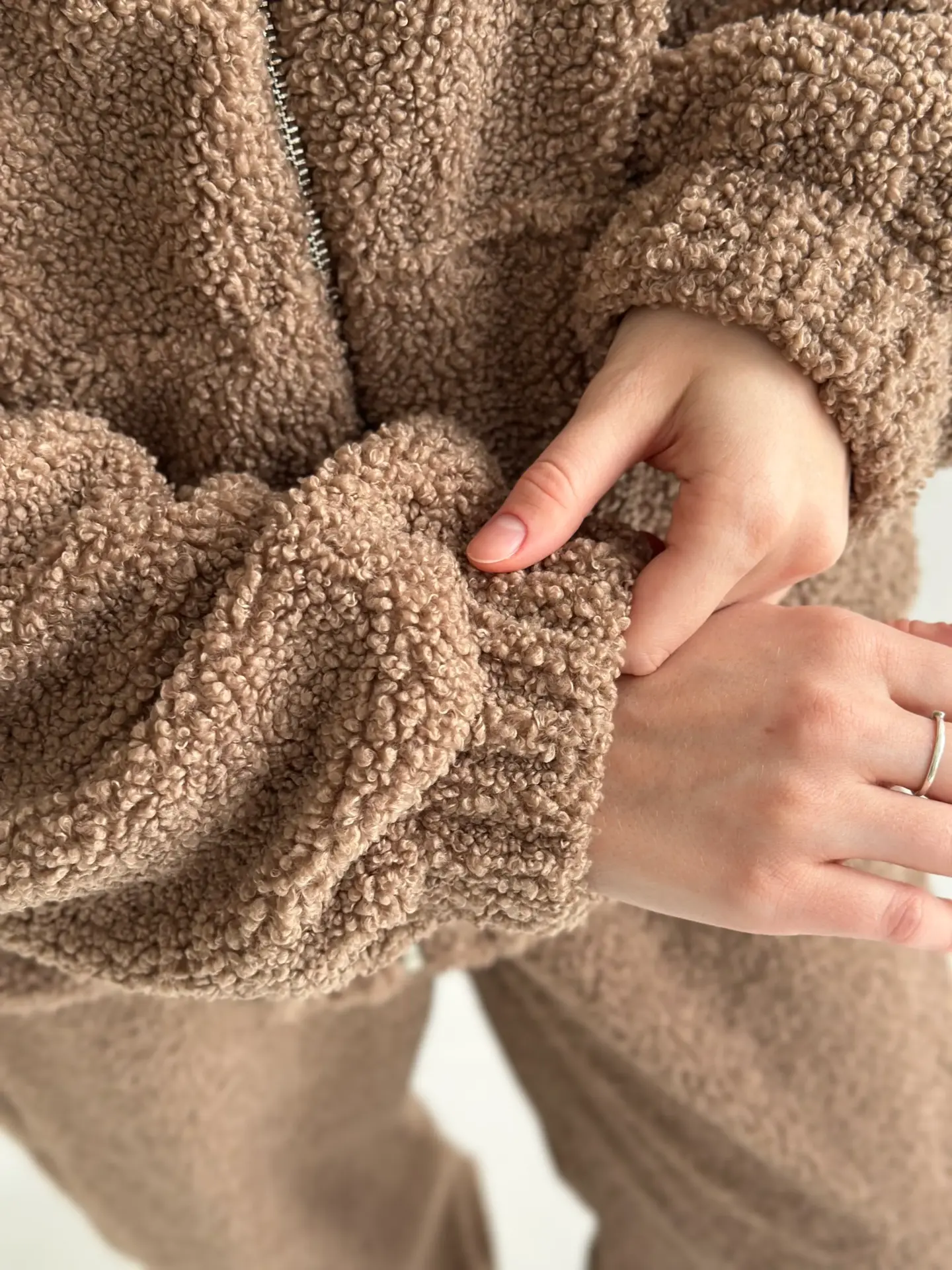 Костюм Teddy Soft — це максимум затишку та стилю. М’який пухнастий матеріал забезпечує комфорт і тепло, ідеально підходячи для холодних днів. Стильний крій і практична блискавка роблять костюм універсальним для дому чи прогулянок.