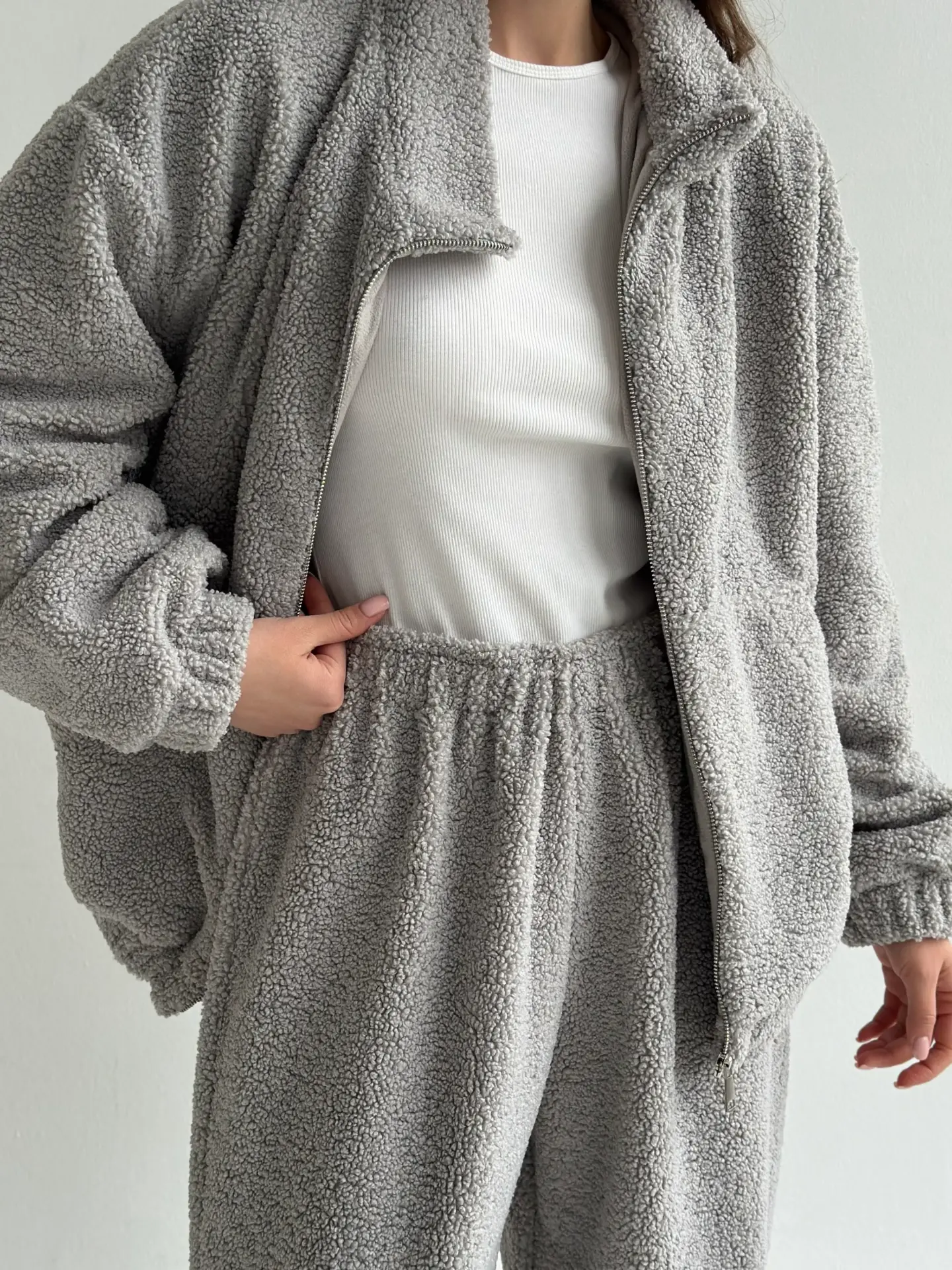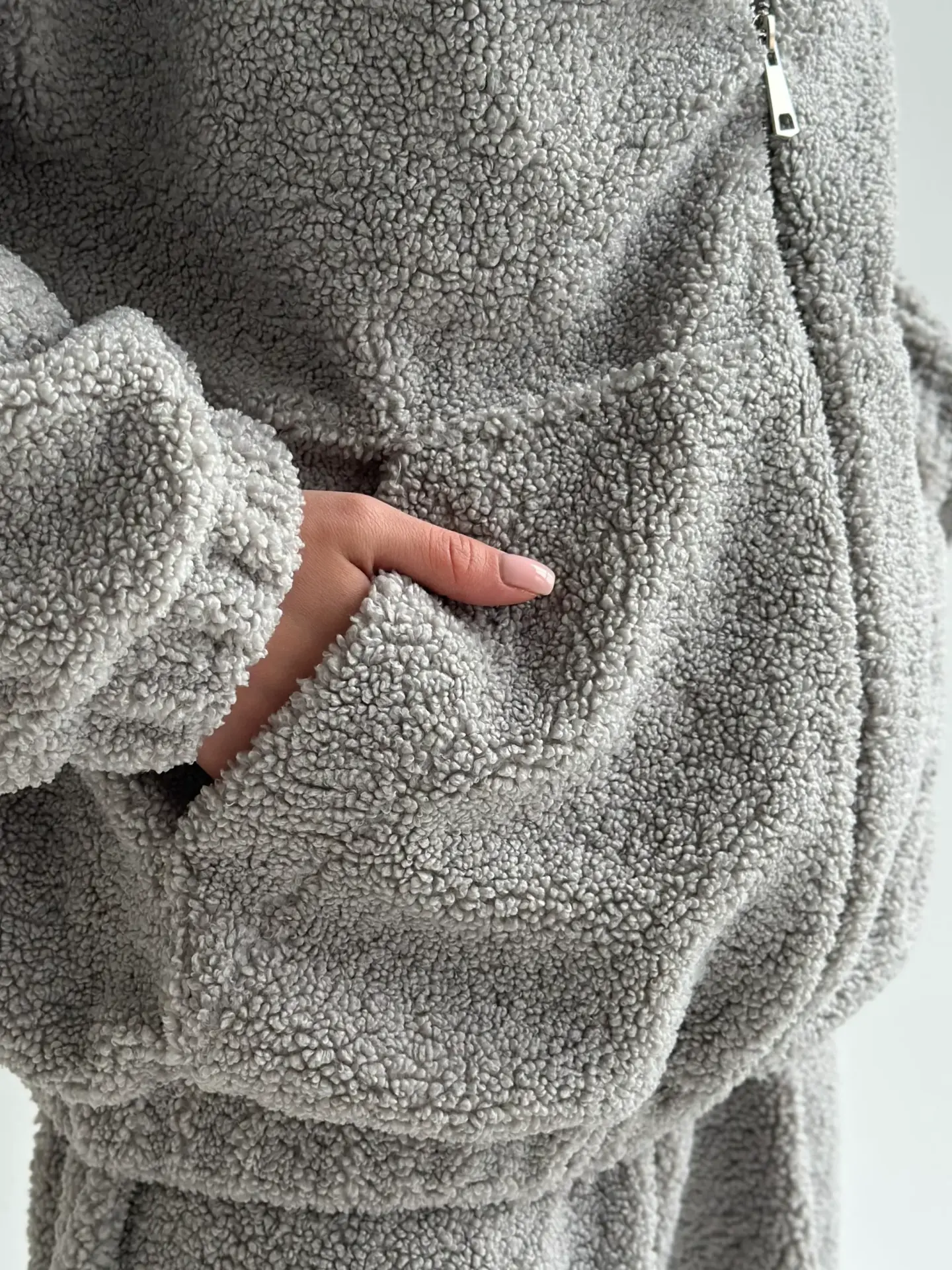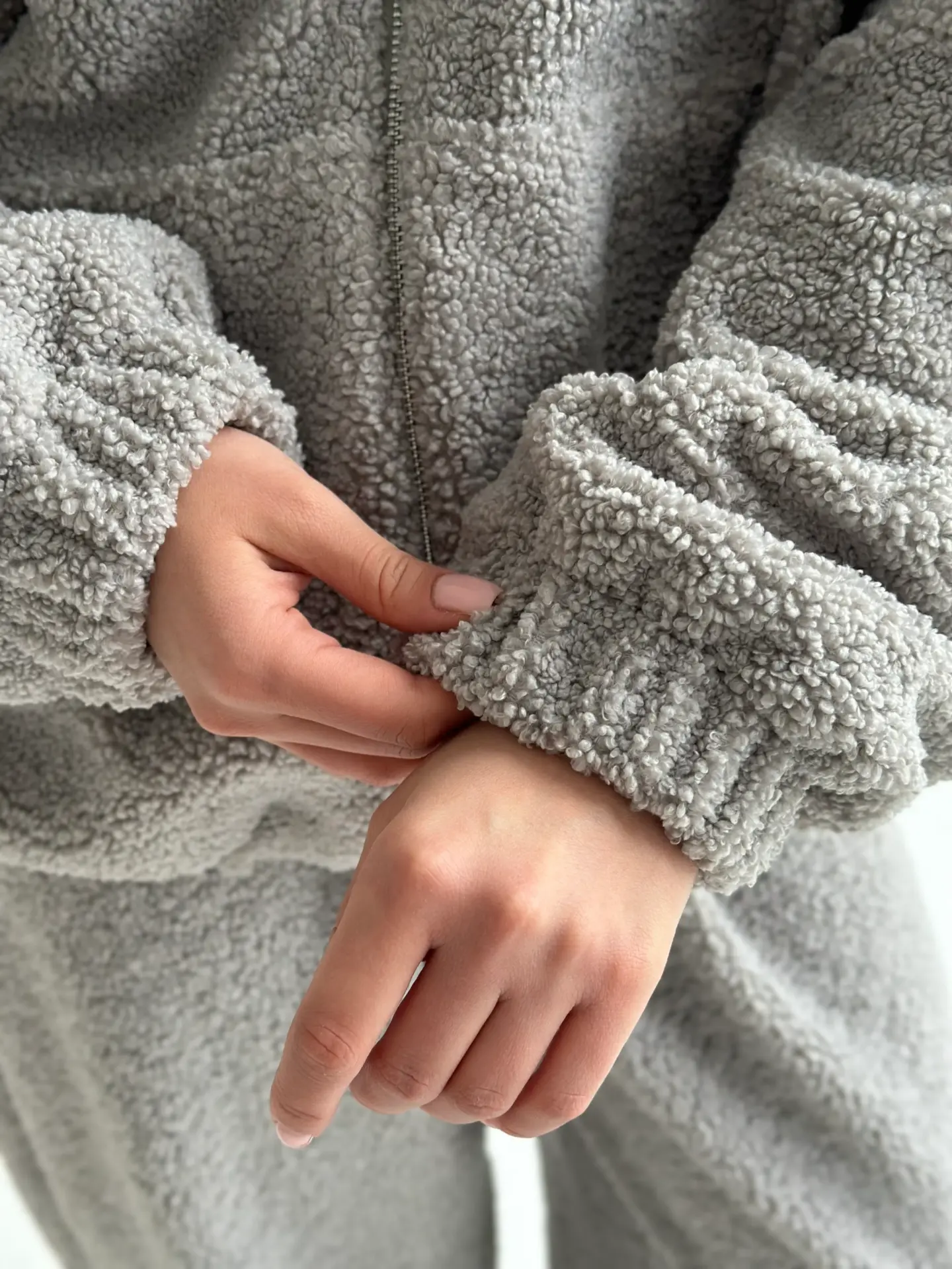 Костюм Teddy Soft — це максимум затишку та стилю. М’який пухнастий матеріал забезпечує комфорт і тепло, ідеально підходячи для холодних днів. Стильний крій і практична блискавка роблять костюм універсальним для дому чи прогулянок.