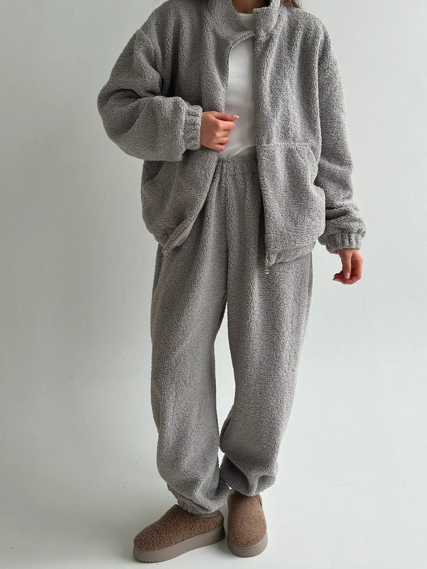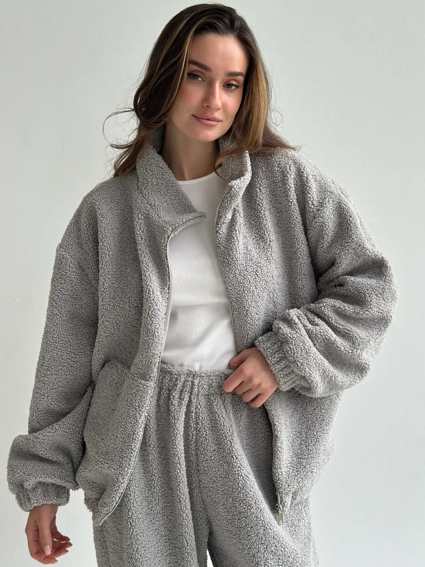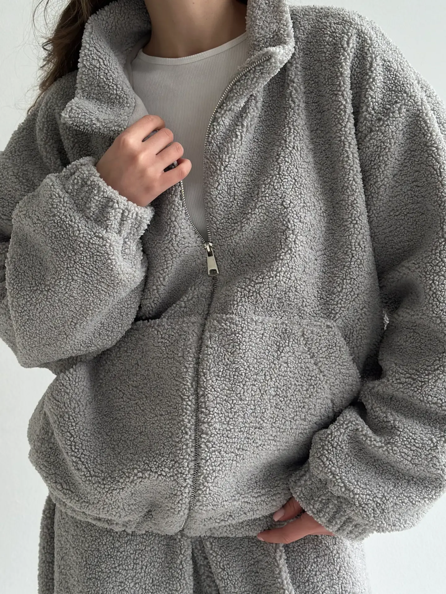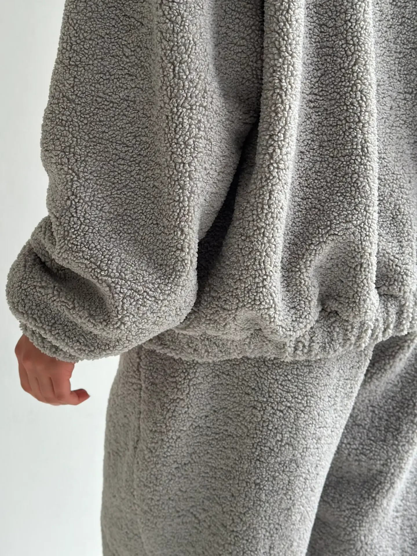 Костюм Teddy Soft — це максимум затишку та стилю. М’який пухнастий матеріал забезпечує комфорт і тепло, ідеально підходячи для холодних днів. Стильний крій і практична блискавка роблять костюм універсальним для дому чи прогулянок.