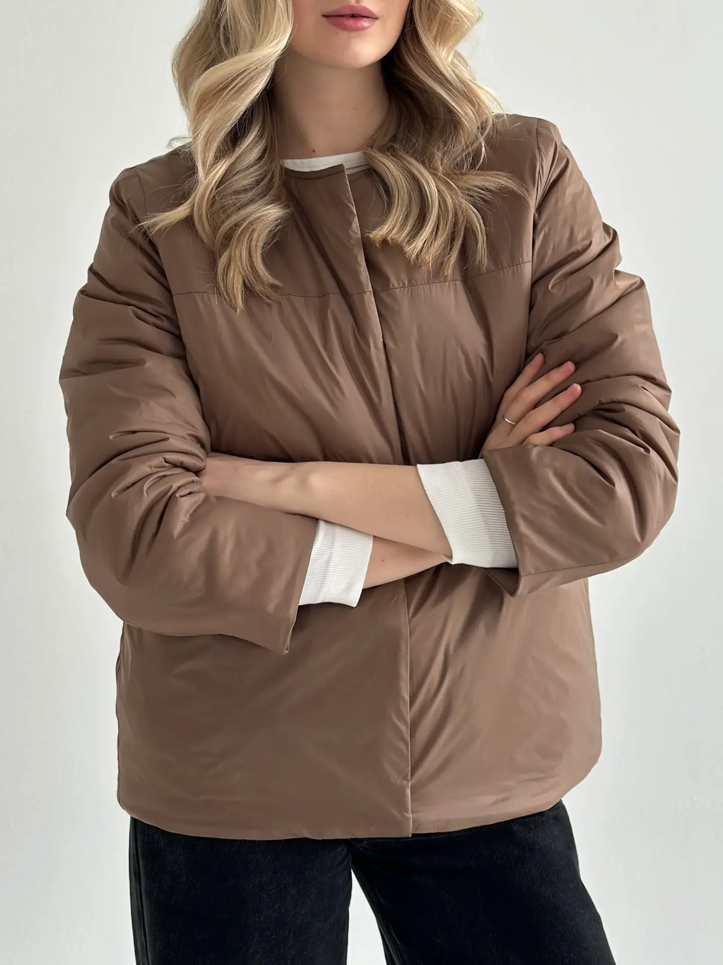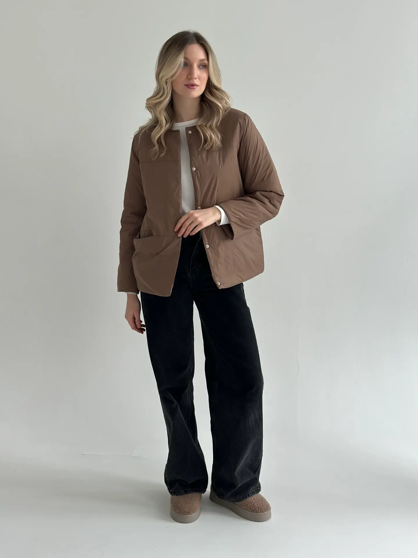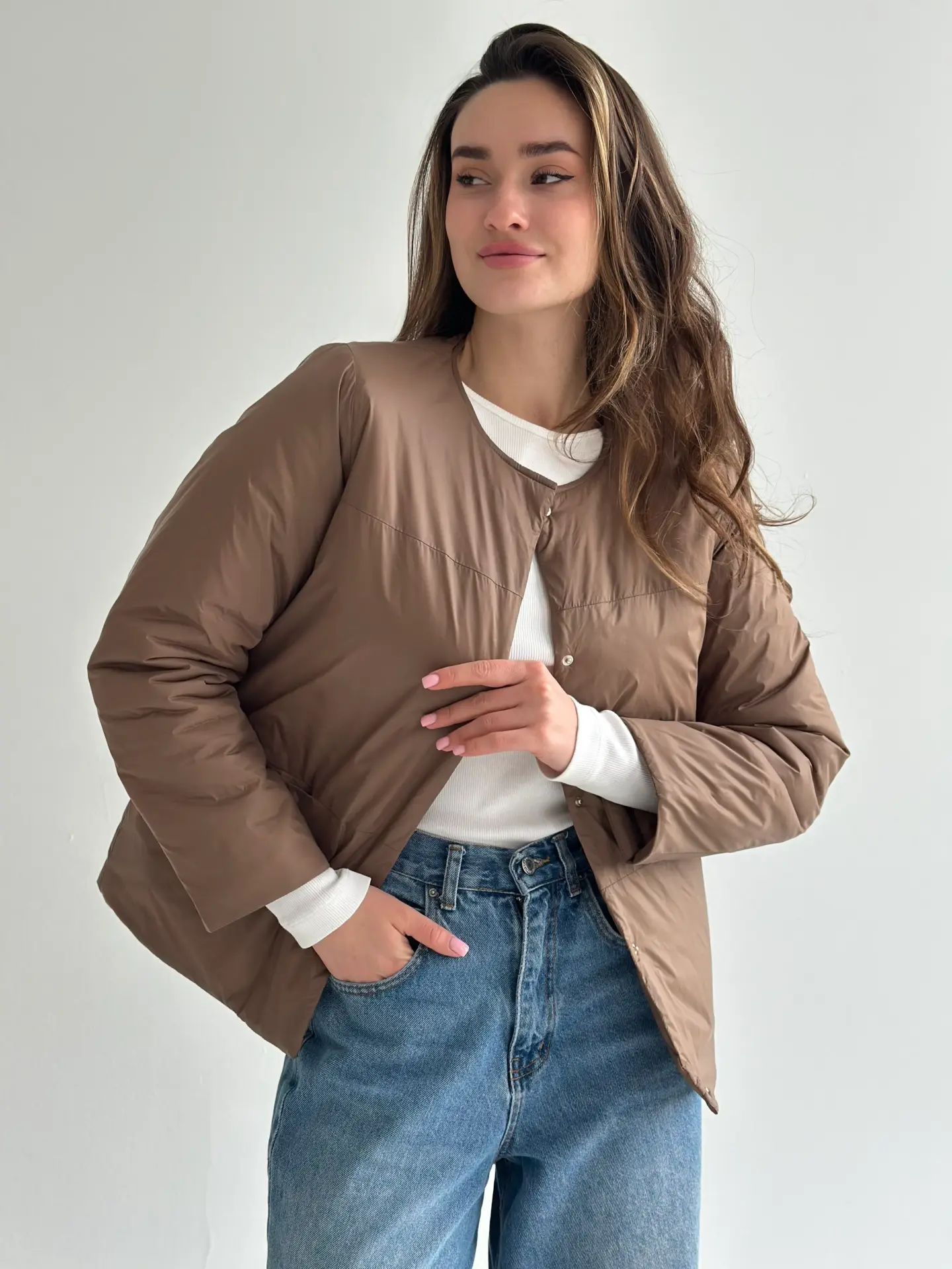 Демісезонна куртка на кнопках легка й зручна у носінні. Має акуратний силует, добре сидить і не обтяжує образ. Практичний варіант для щоденних виходів.