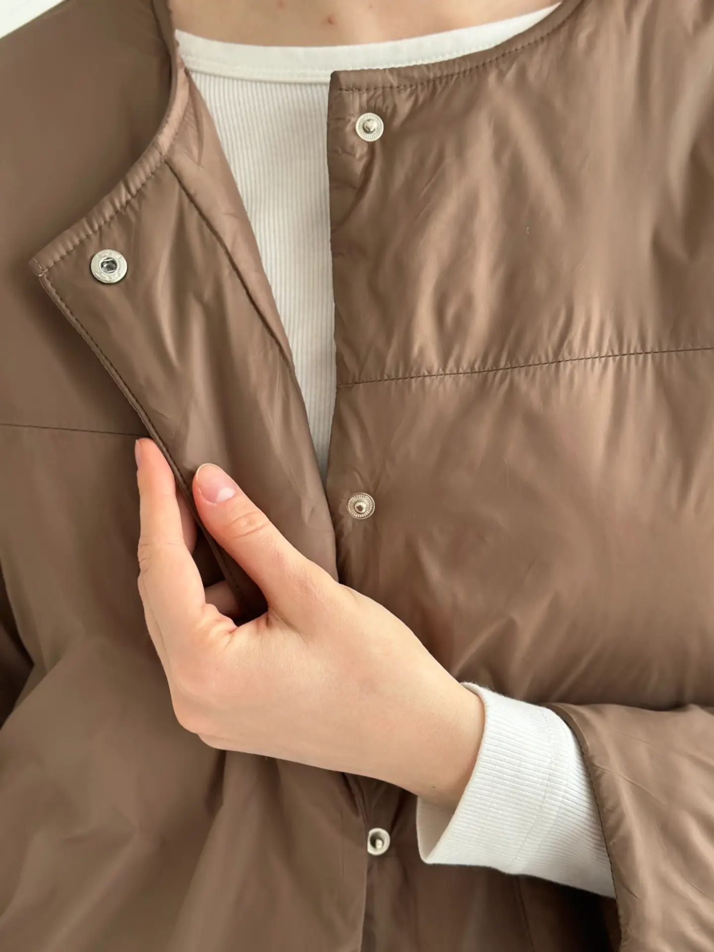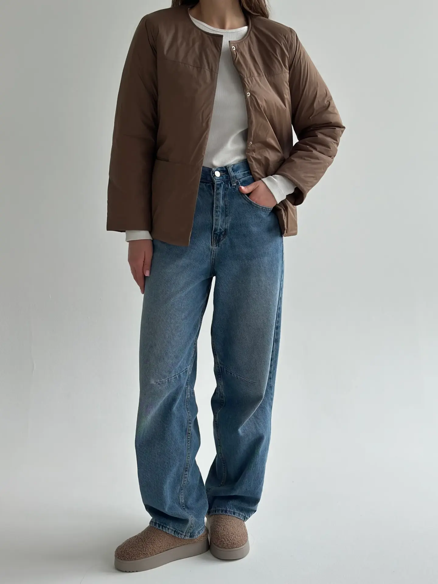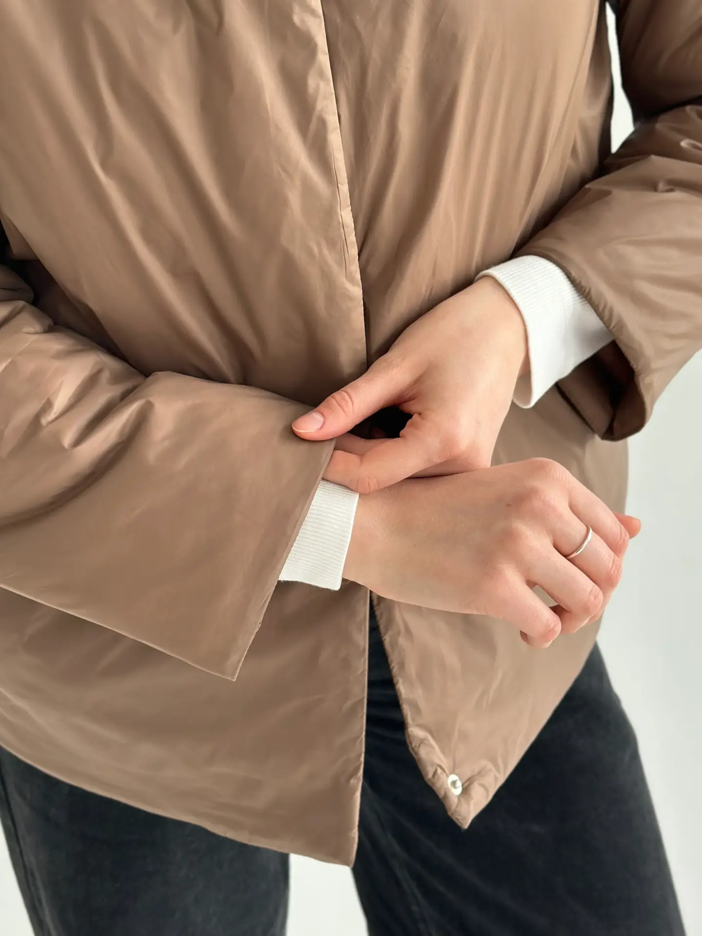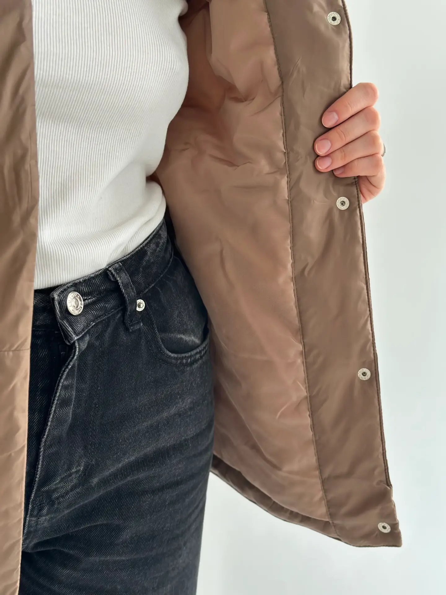 Демісезонна куртка на кнопках легка й зручна у носінні. Має акуратний силует, добре сидить і не обтяжує образ. Практичний варіант для щоденних виходів.