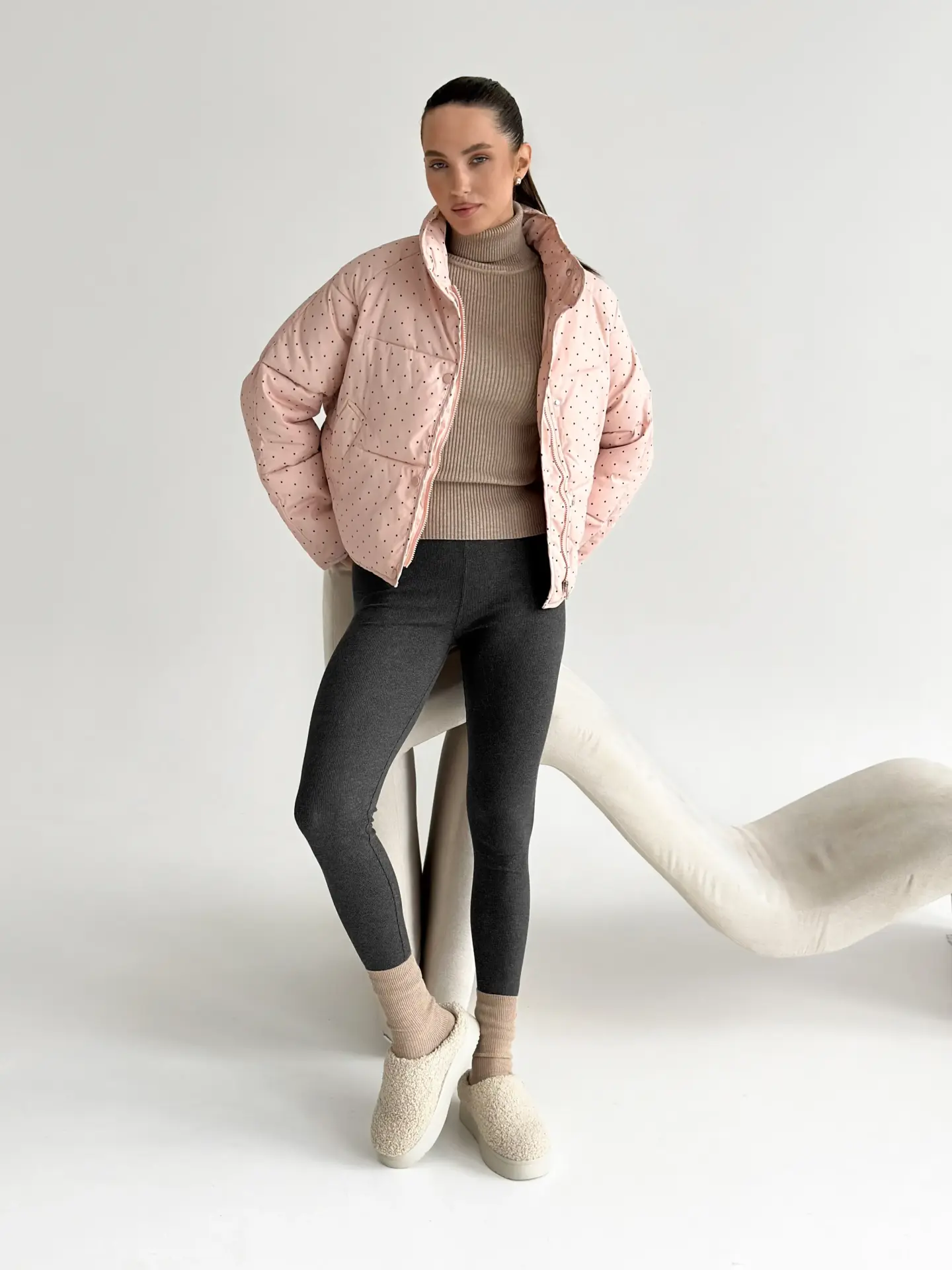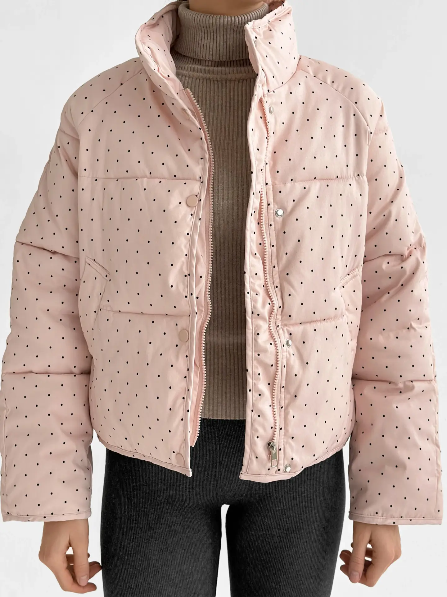 Дута куртка з коміром — тепла, об’ємна й дуже стильна. М’яка тканина та пухкий силует створюють ефект затишних обіймів, а комір додає комфорту в холодні дні. Ідеальна для щоденних луків — від прогулянок до міського casual.