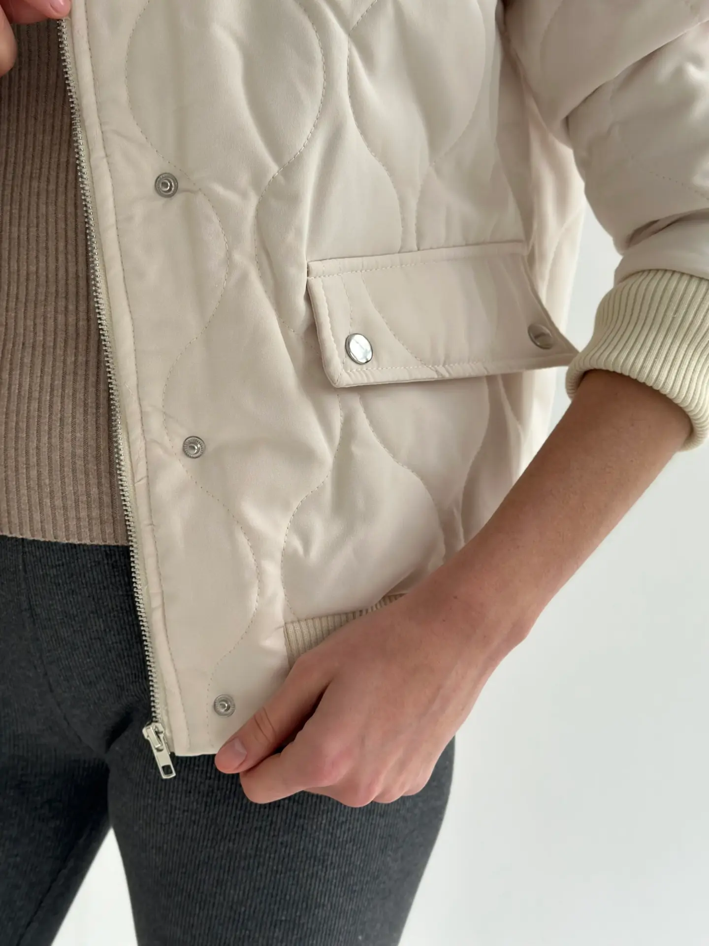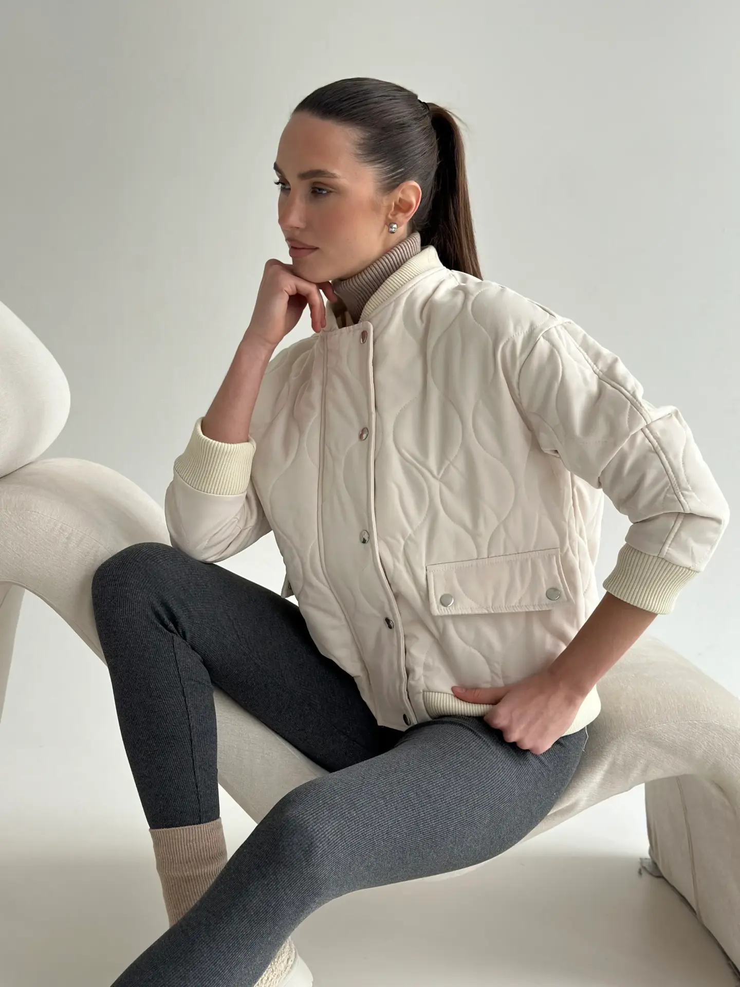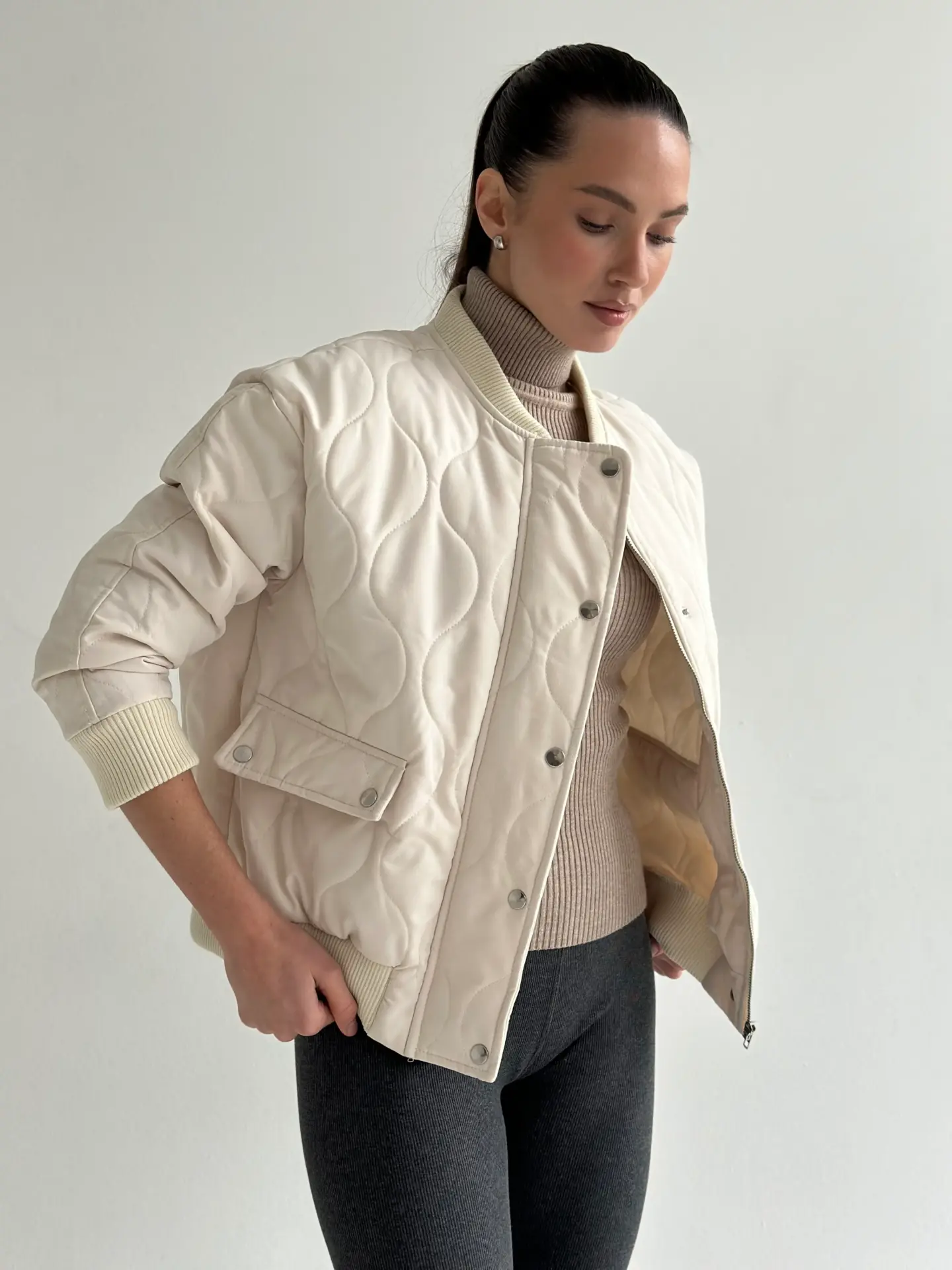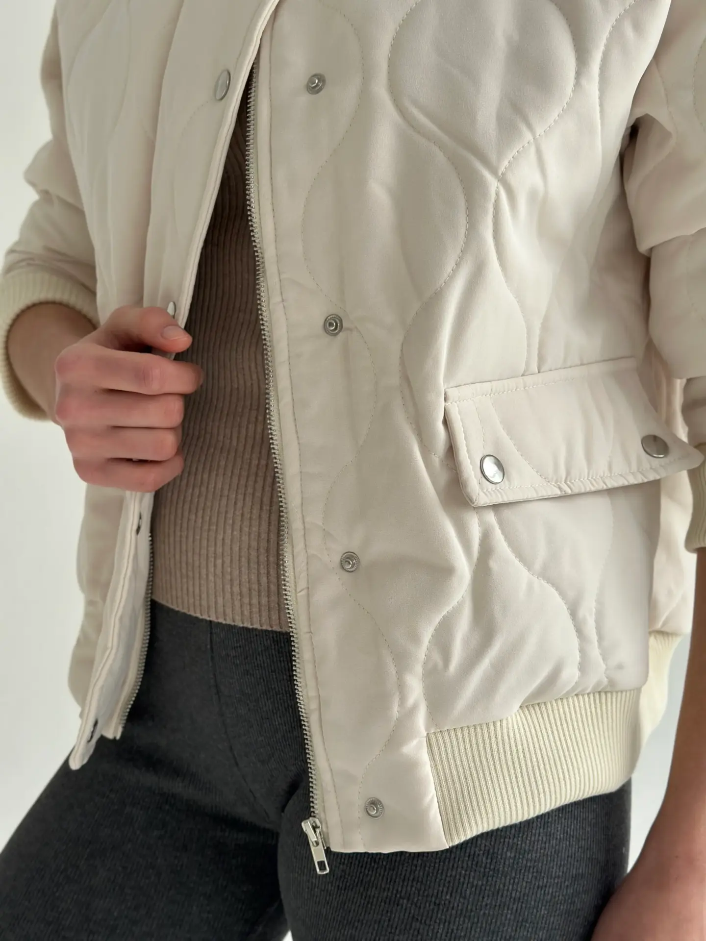 Стьобана куртка-бомбер — стильна, тепла й універсальна. М’яка тканина та об’ємна прострочка створюють комфортний силует, а мінімалістичний дизайн легко поєднується з будь-якими образами. Ідеальний вибір для щоденного носіння, прогулянок і міського стилю.