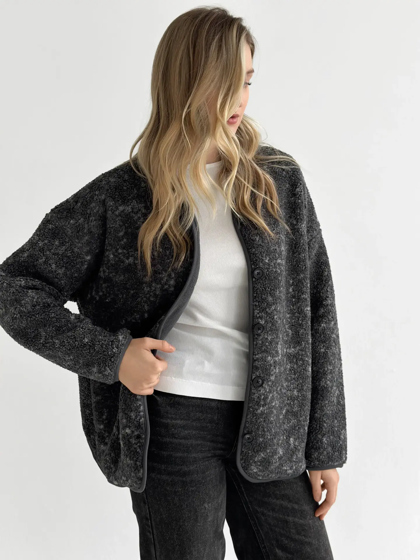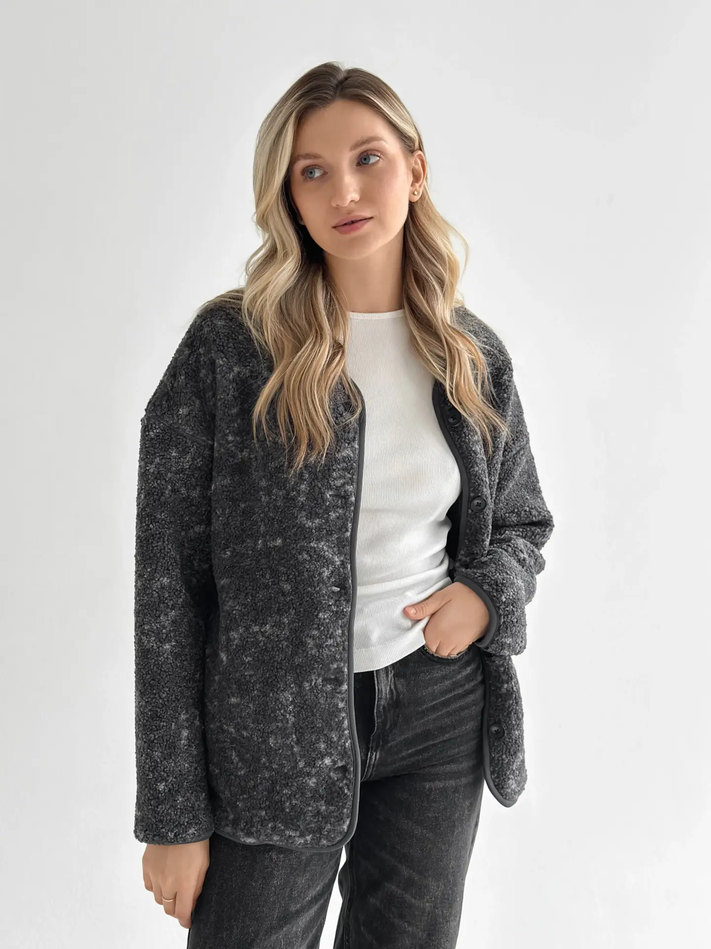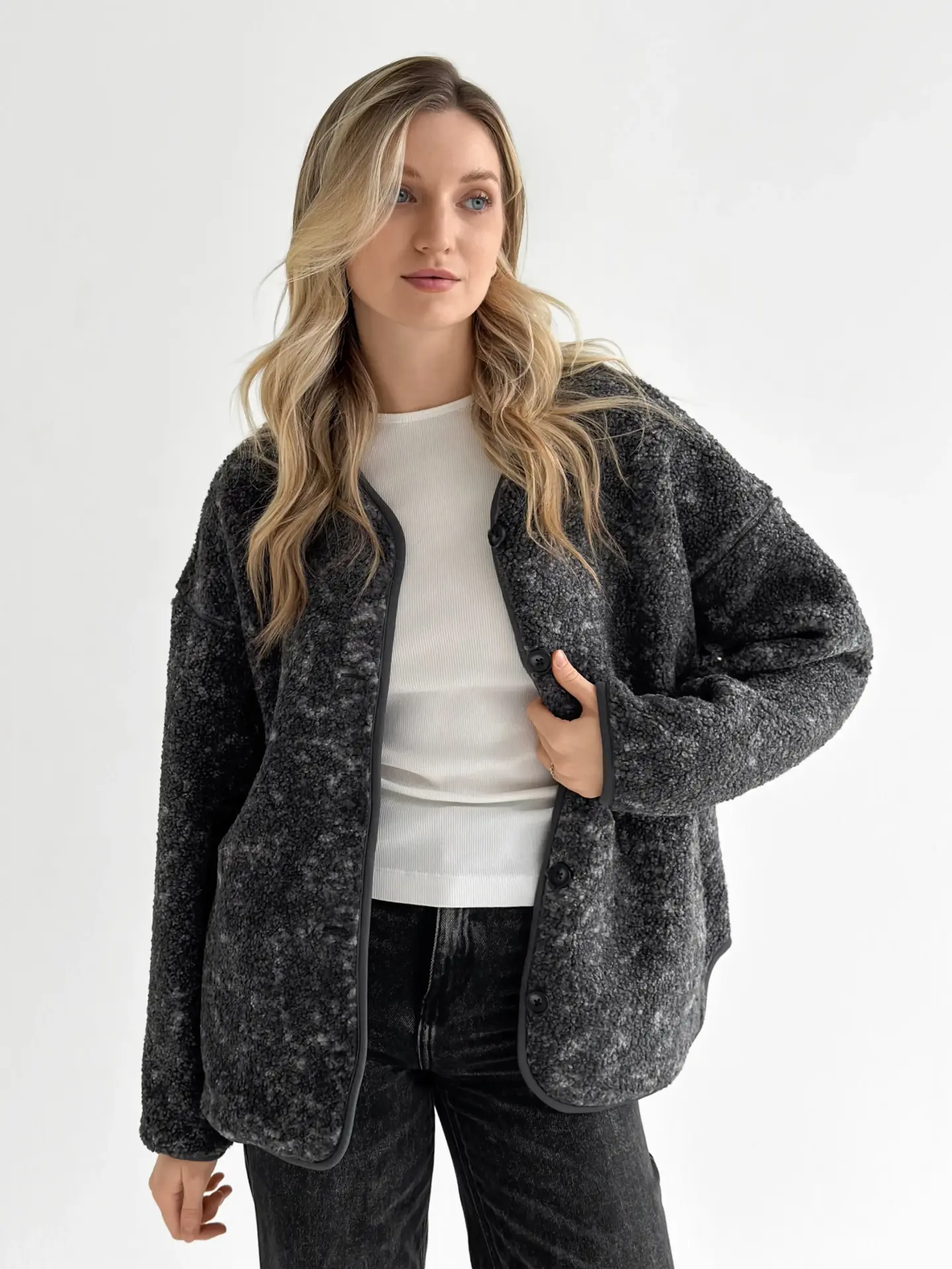 М’яка й затишна демісезонна куртка зі стильної плюшевої тканини Teddy. Приємна на дотик, тепла та легка — ідеальний варіант для прохолодної погоди. Універсальний фасон легко поєднується з повсякденними образами та додає комфорту в кожному русі.