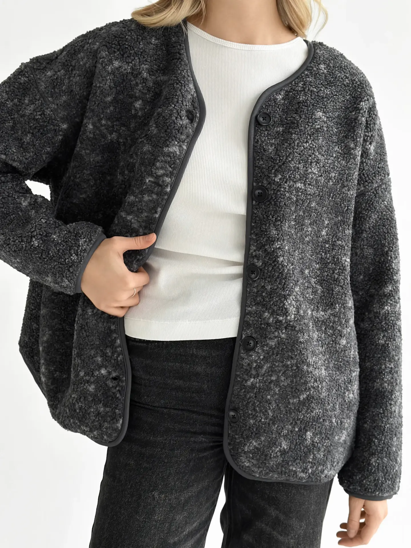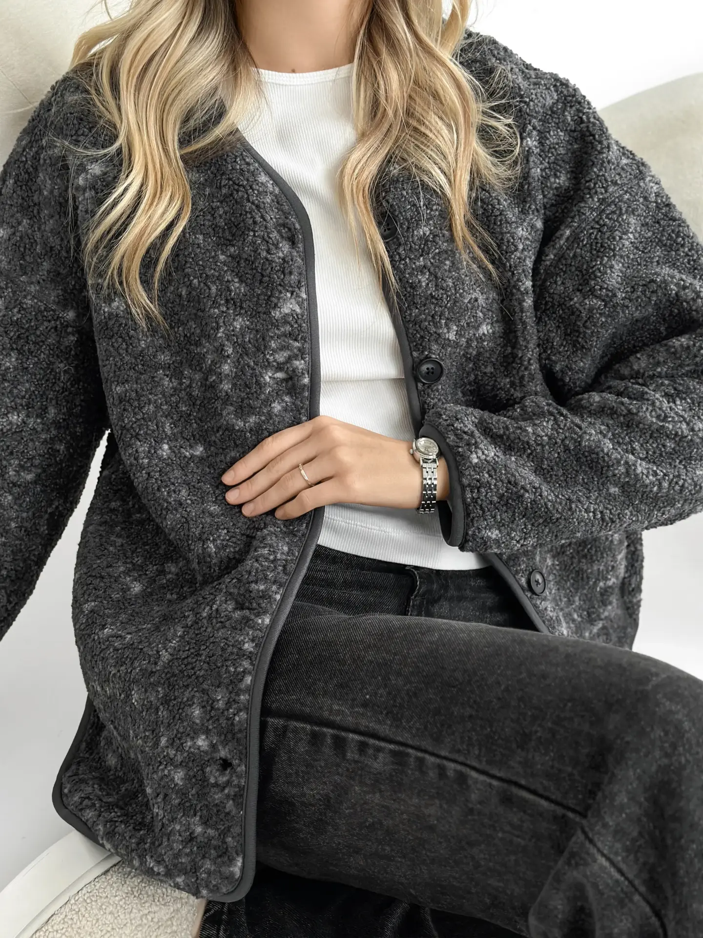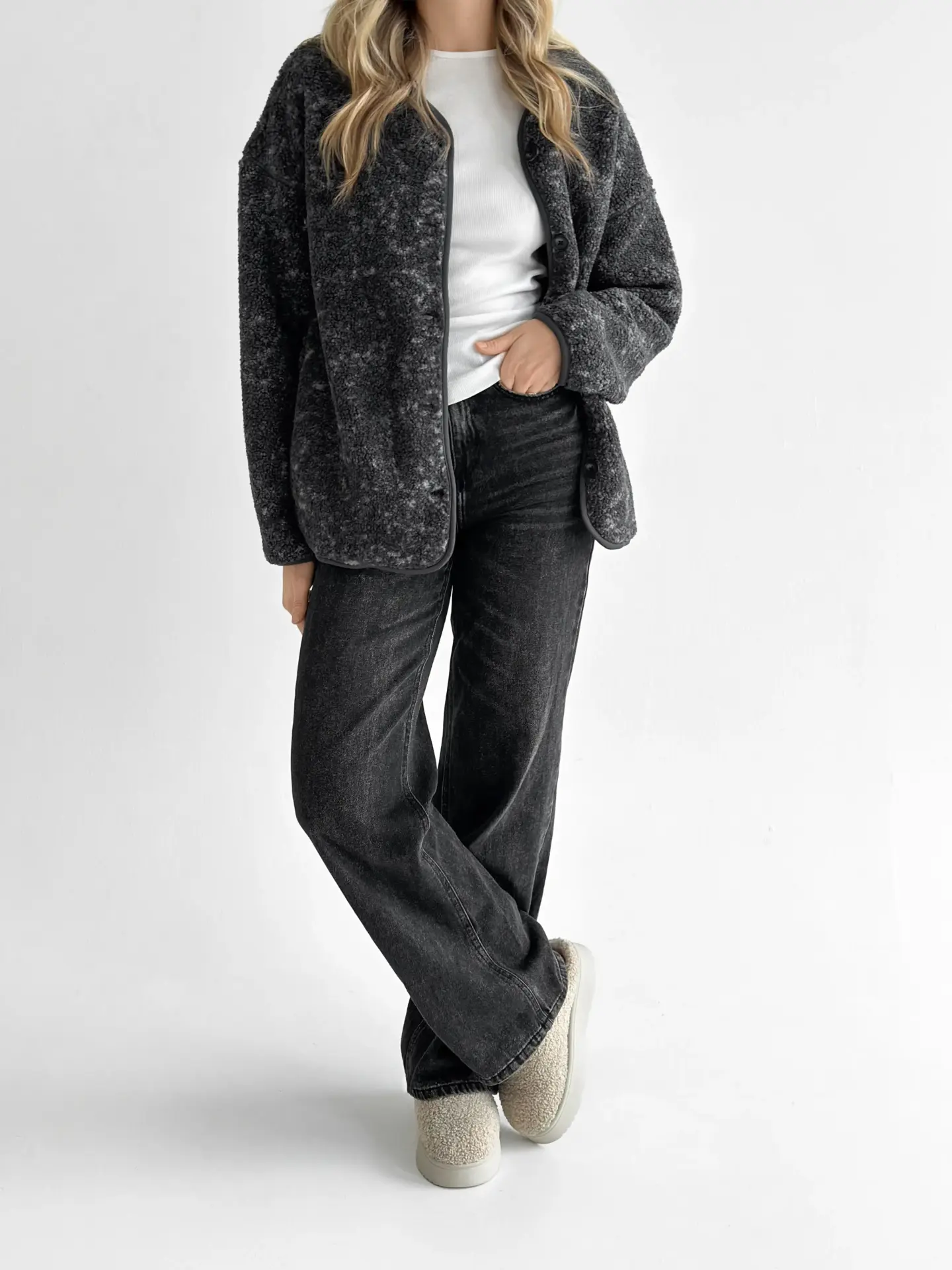 М’яка й затишна демісезонна куртка зі стильної плюшевої тканини Teddy. Приємна на дотик, тепла та легка — ідеальний варіант для прохолодної погоди. Універсальний фасон легко поєднується з повсякденними образами та додає комфорту в кожному русі.