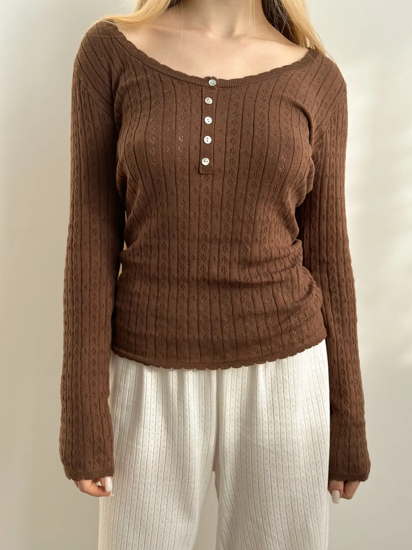 Лонгслів вʼязаний коричневий