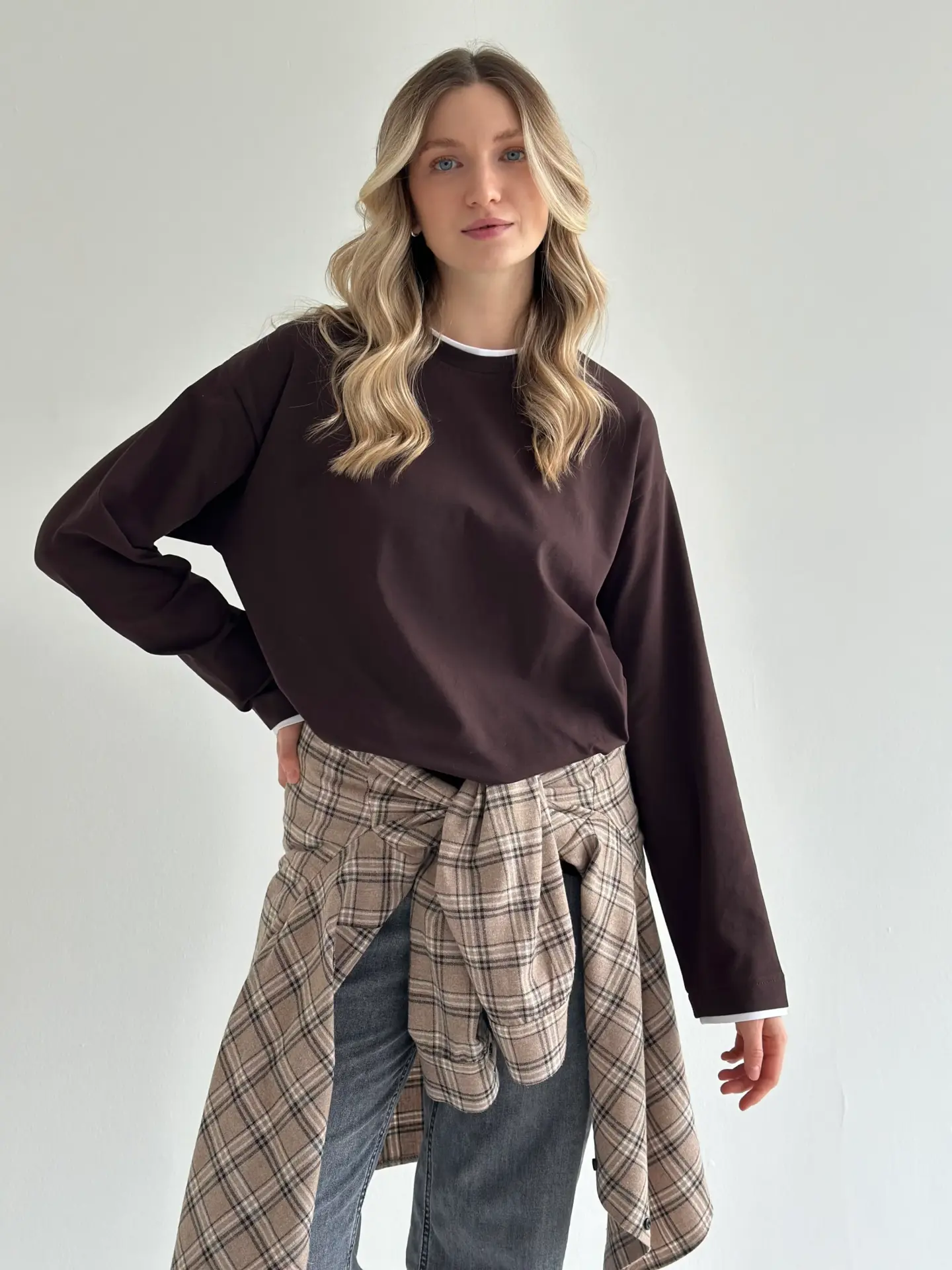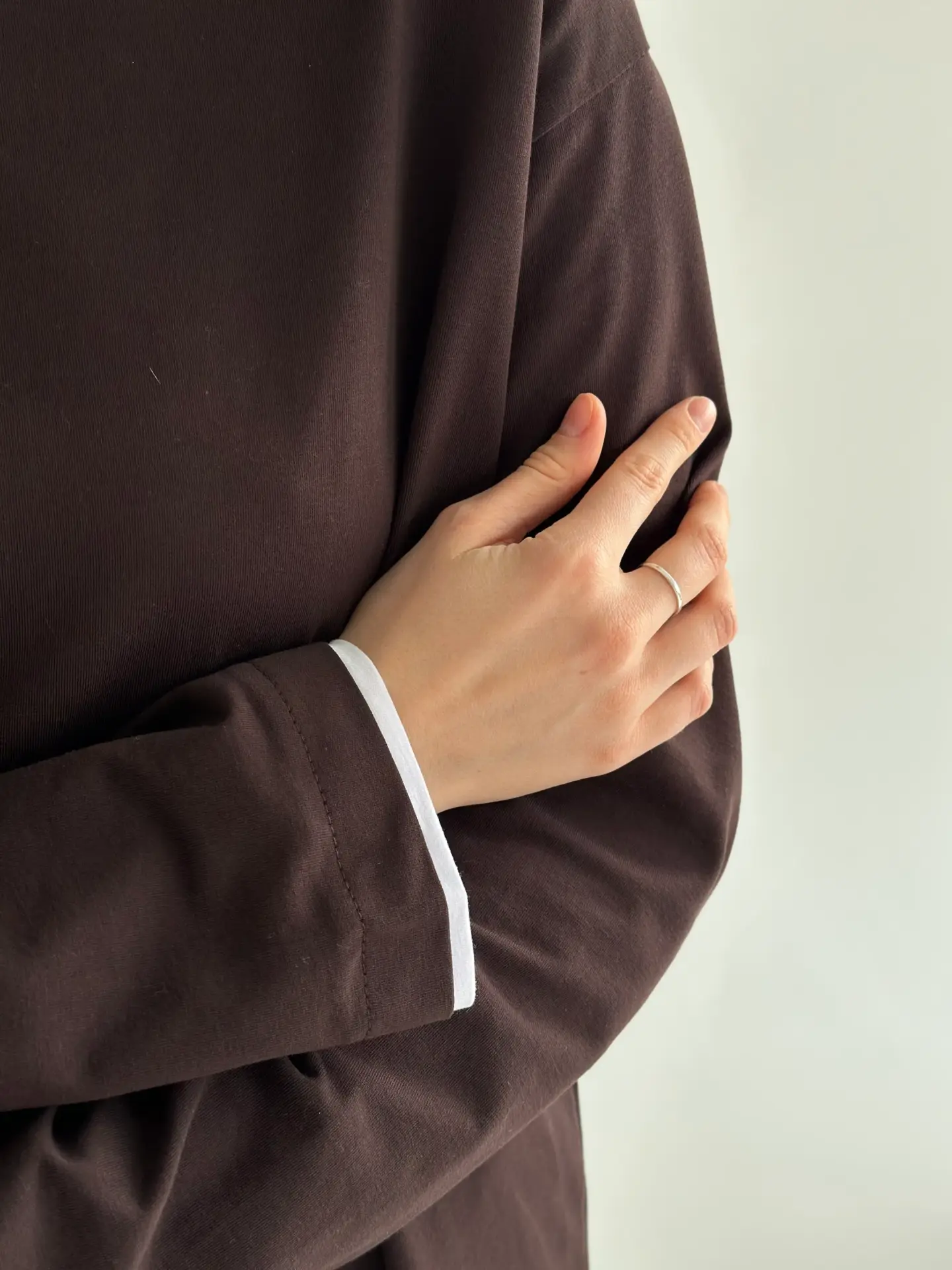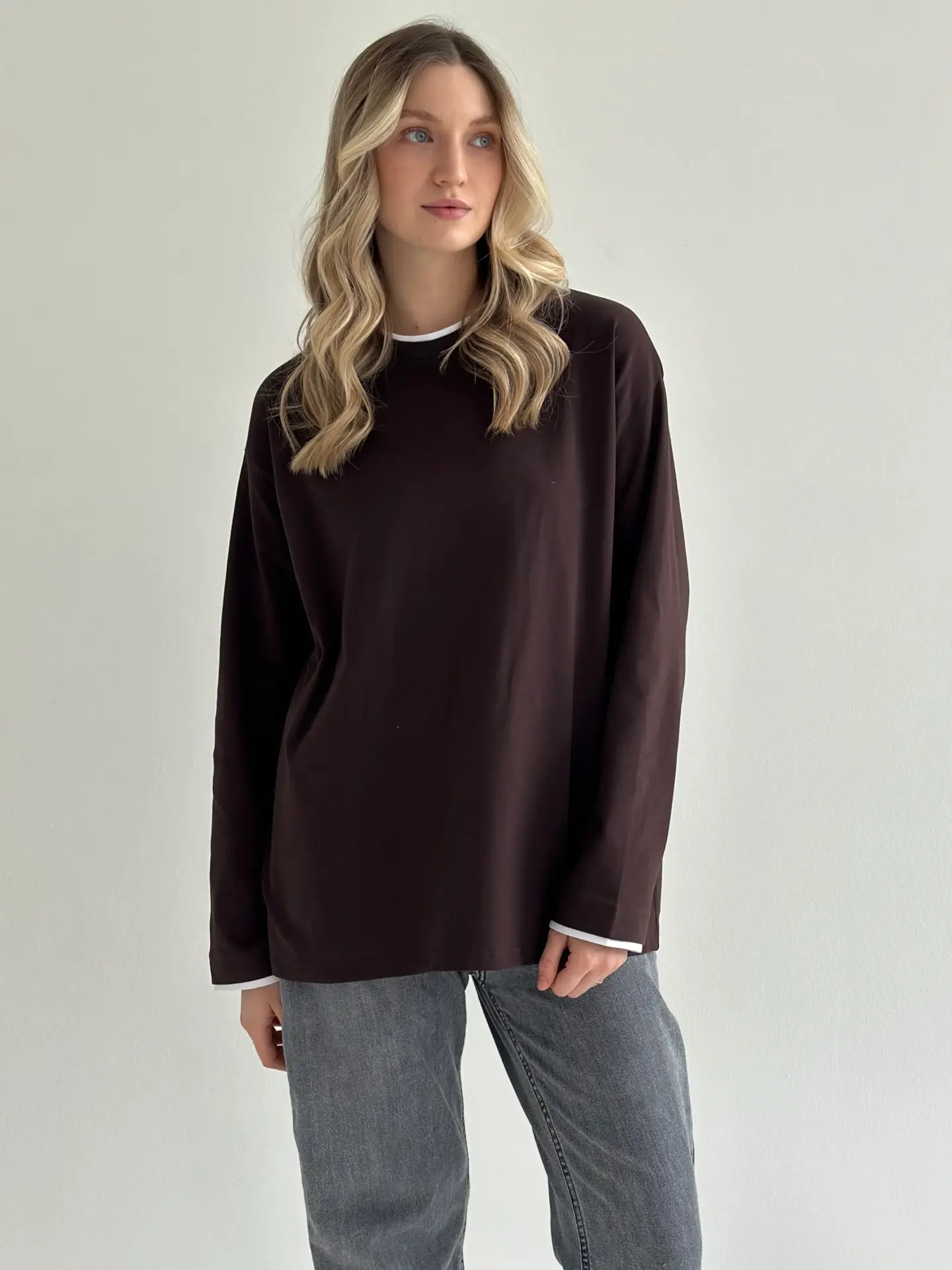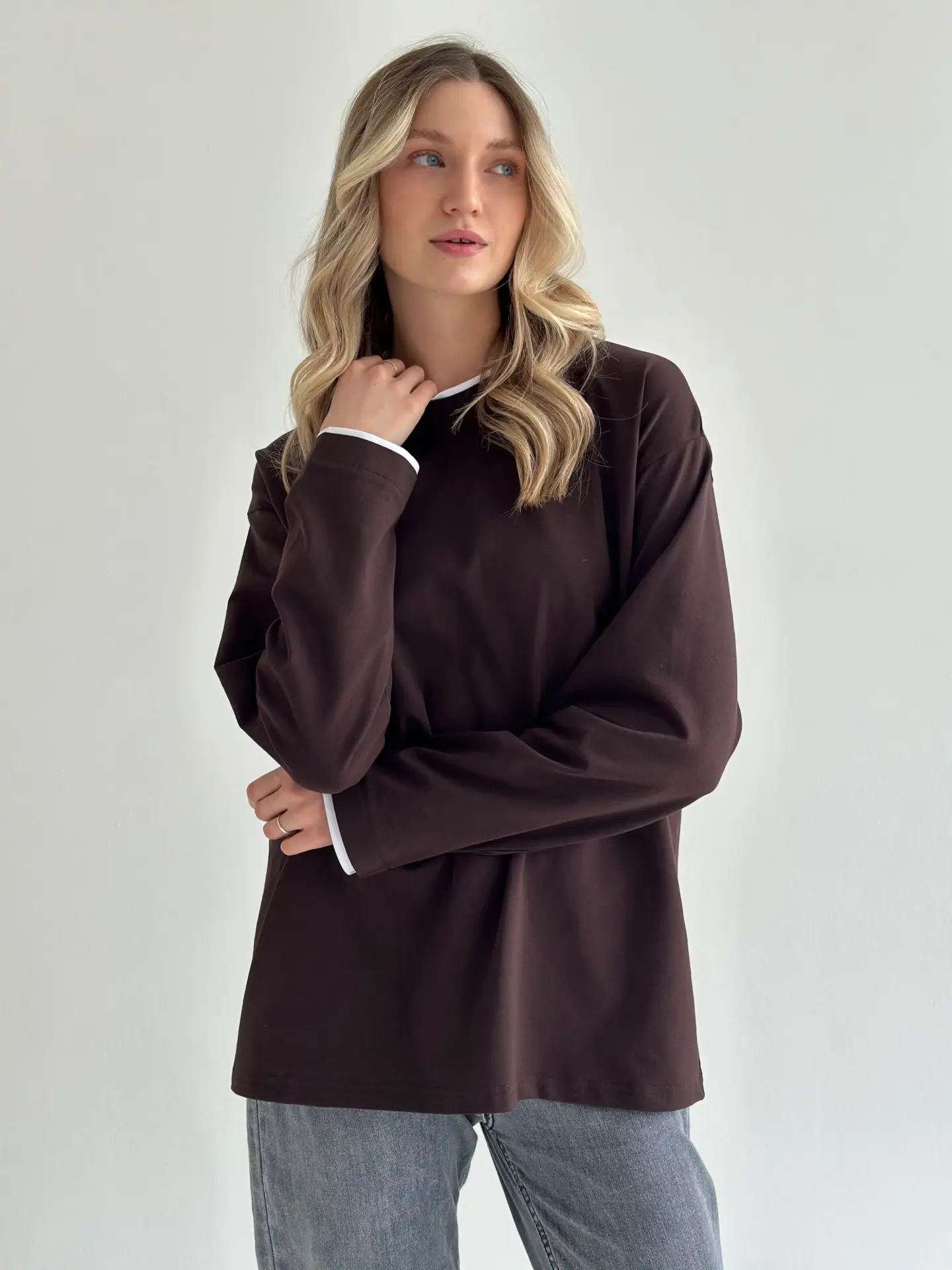 Лонгслів з білим кантом коричневий, onesize - Twins
