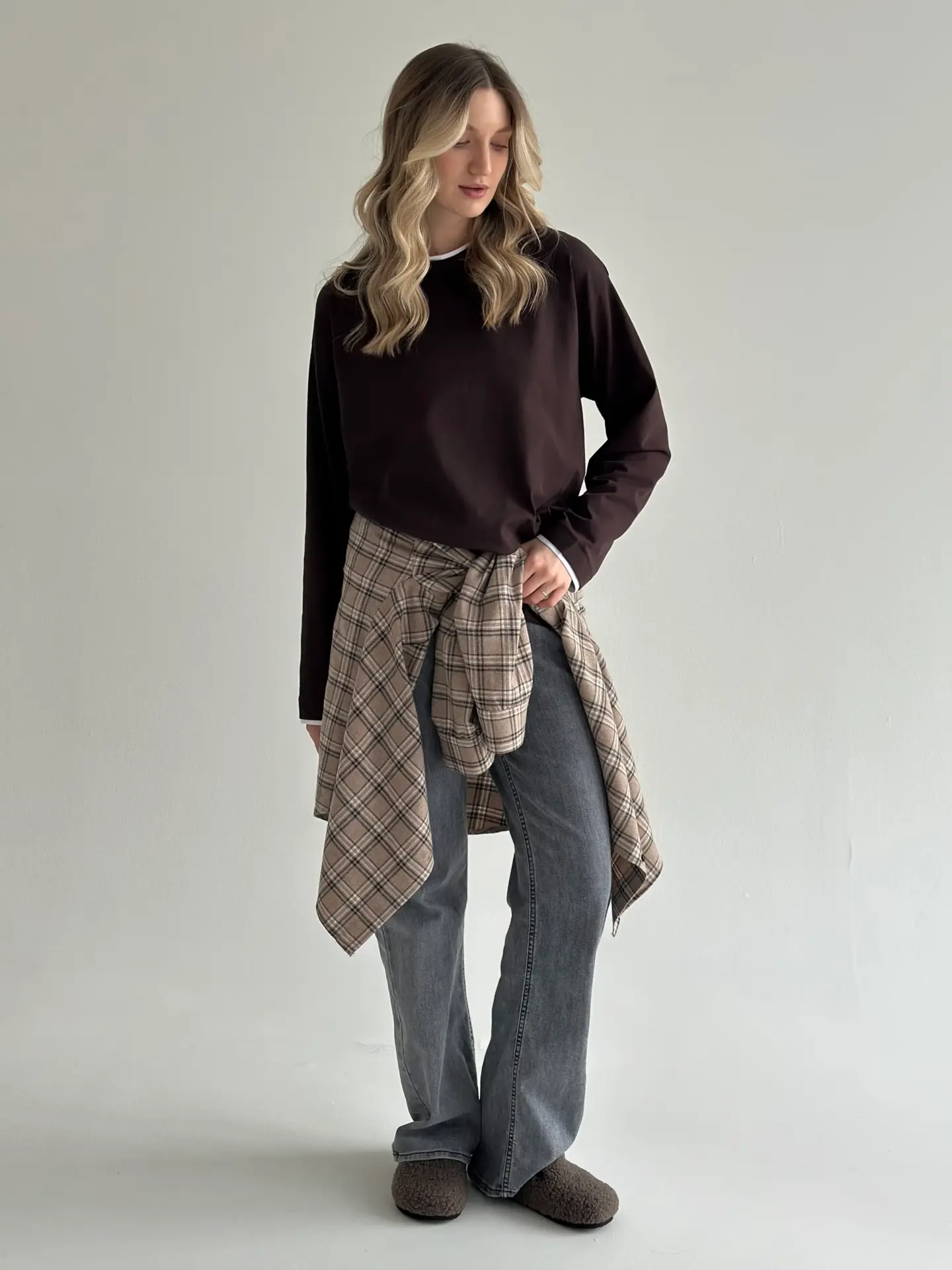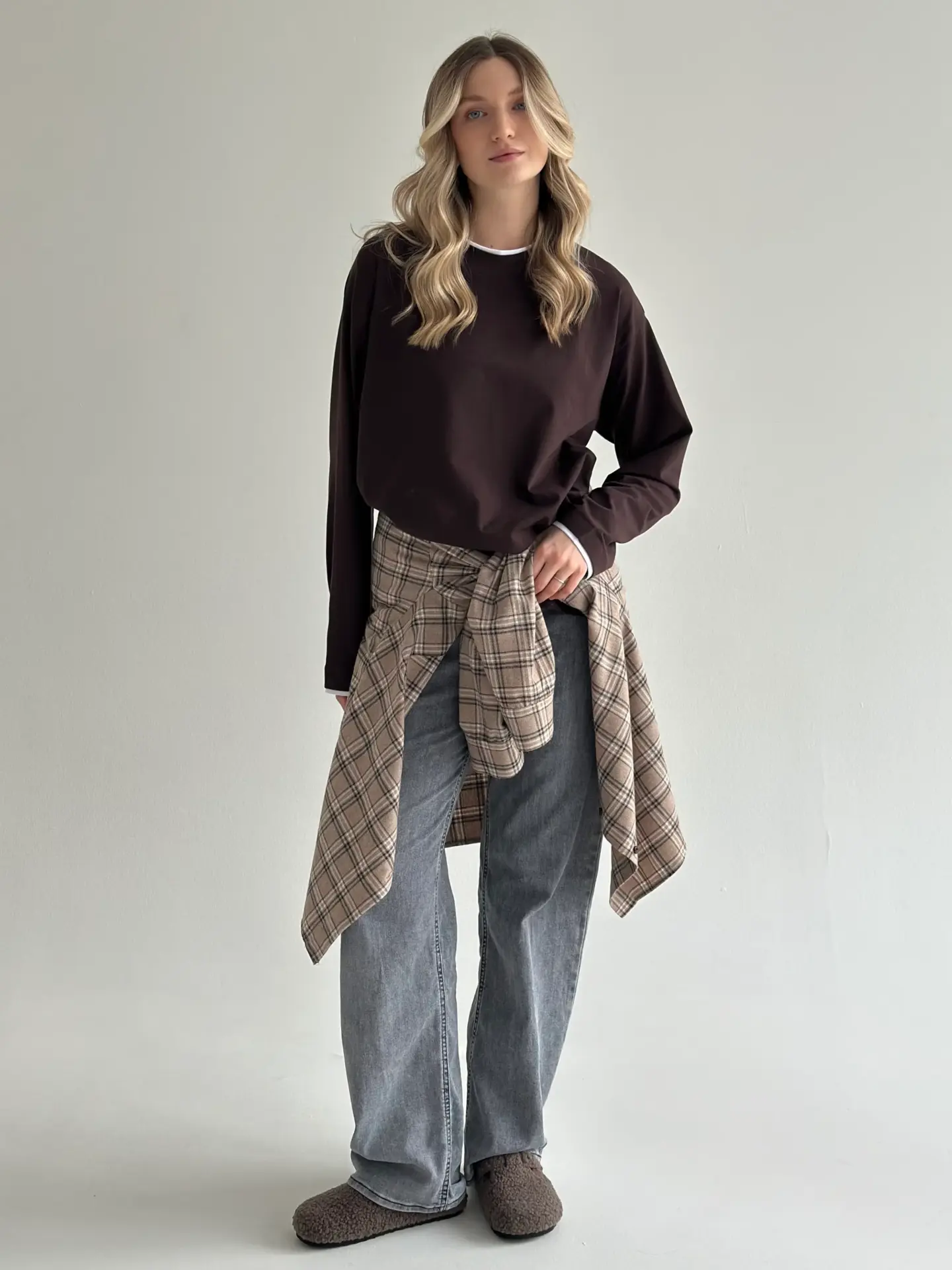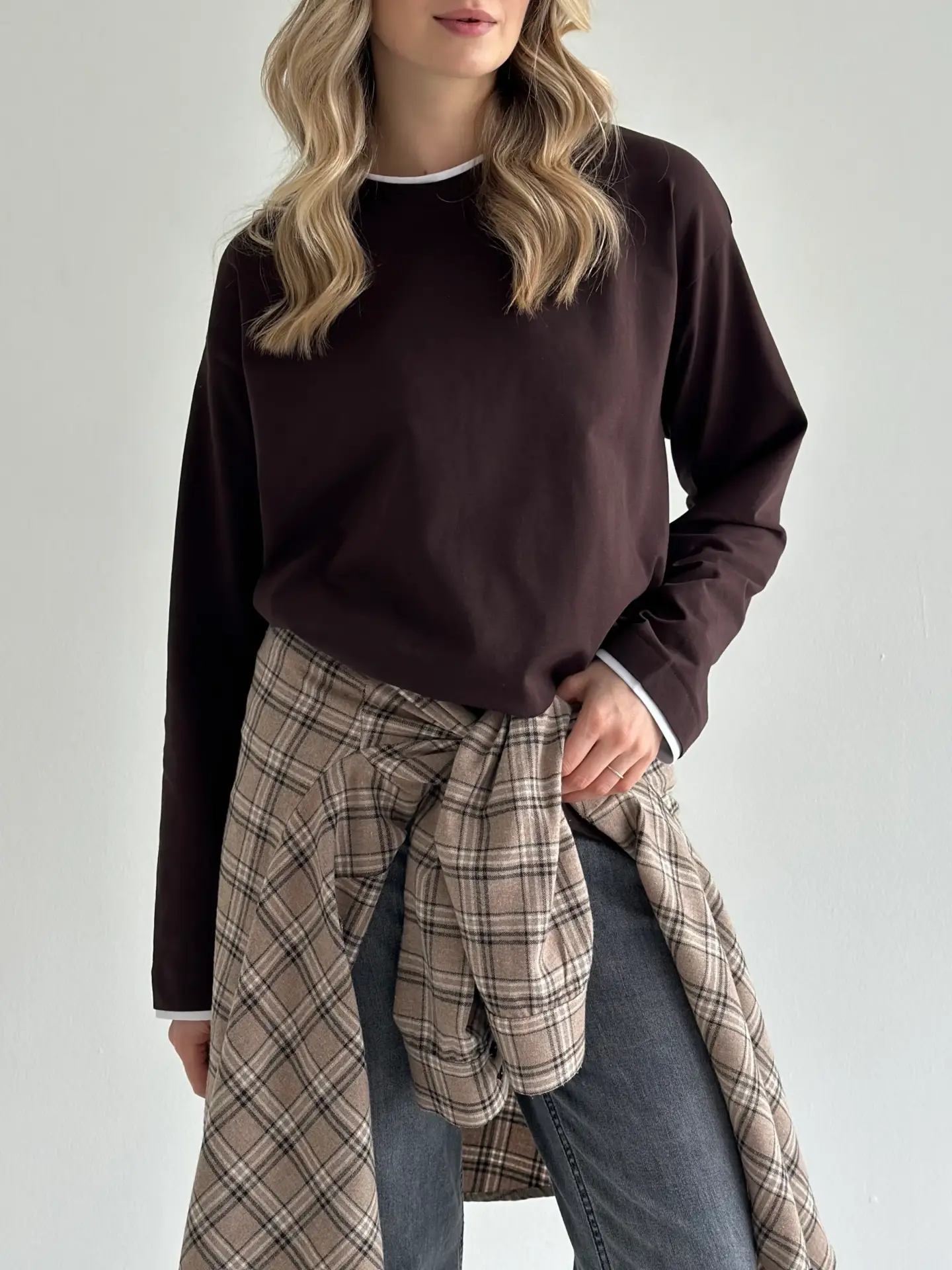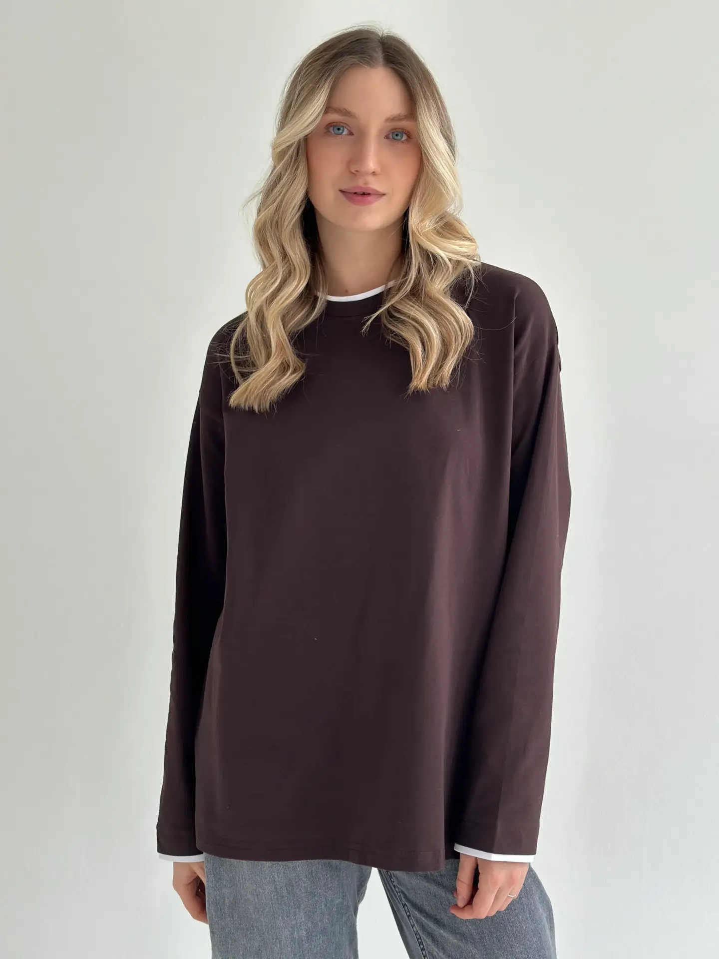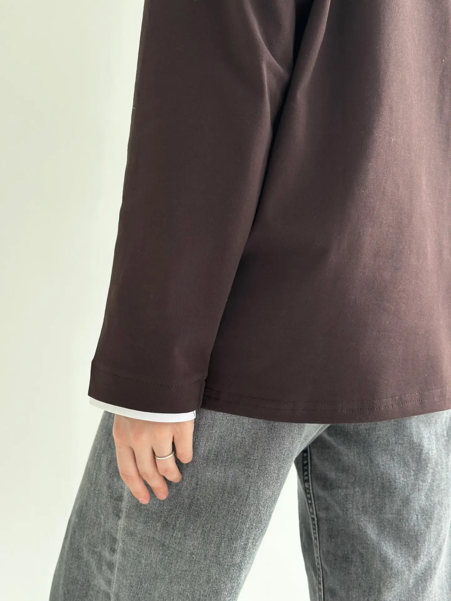 Лонгслів з білим кантом коричневий, onesize - Twins