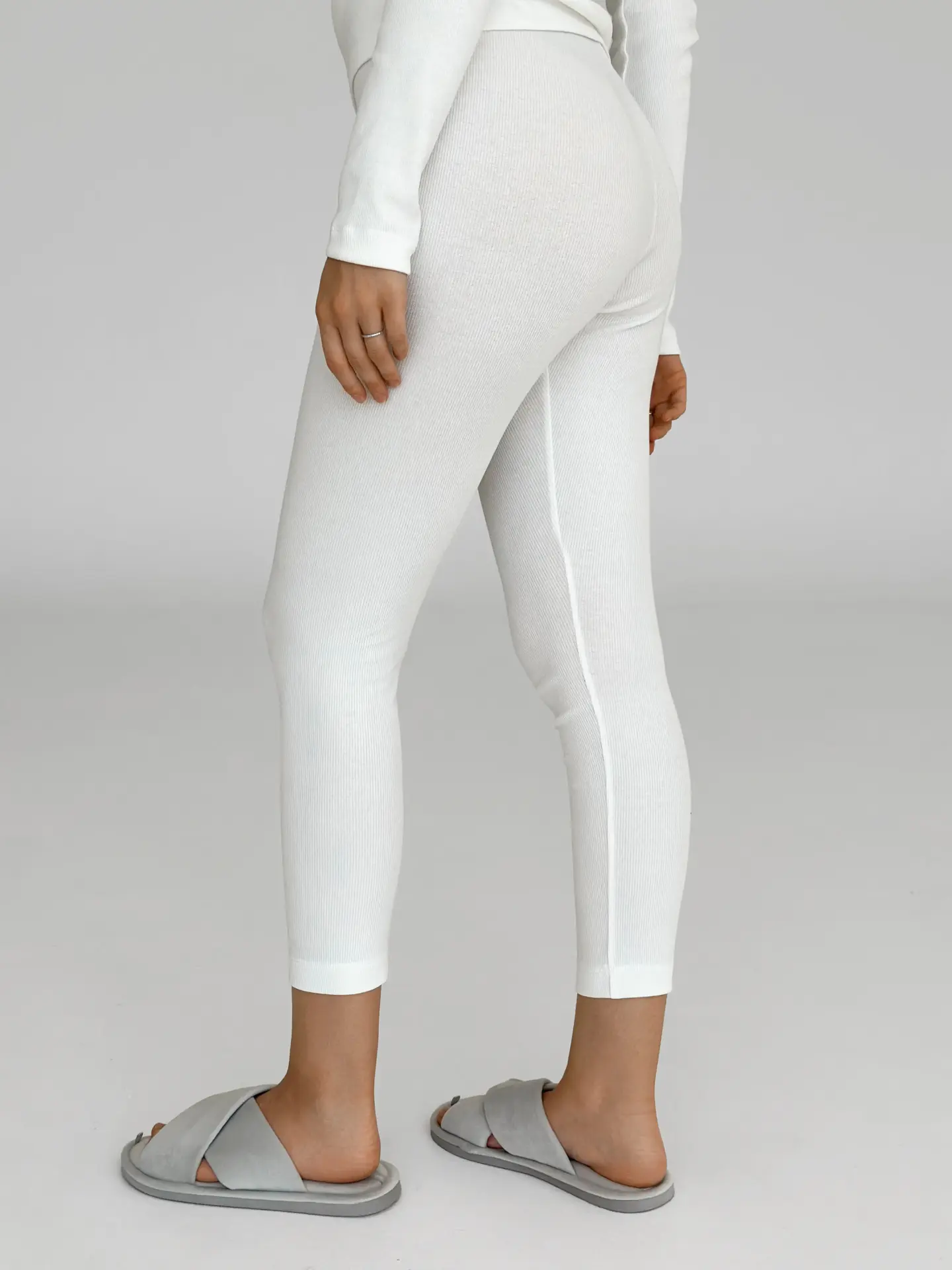 Лосини з трикотажу рубчик поєднують комфорт і стиль. Еластична тканина м’яко облягає фігуру та забезпечує зручність у носінні. Ідеально підходять для повсякденних образів та відпочинку.