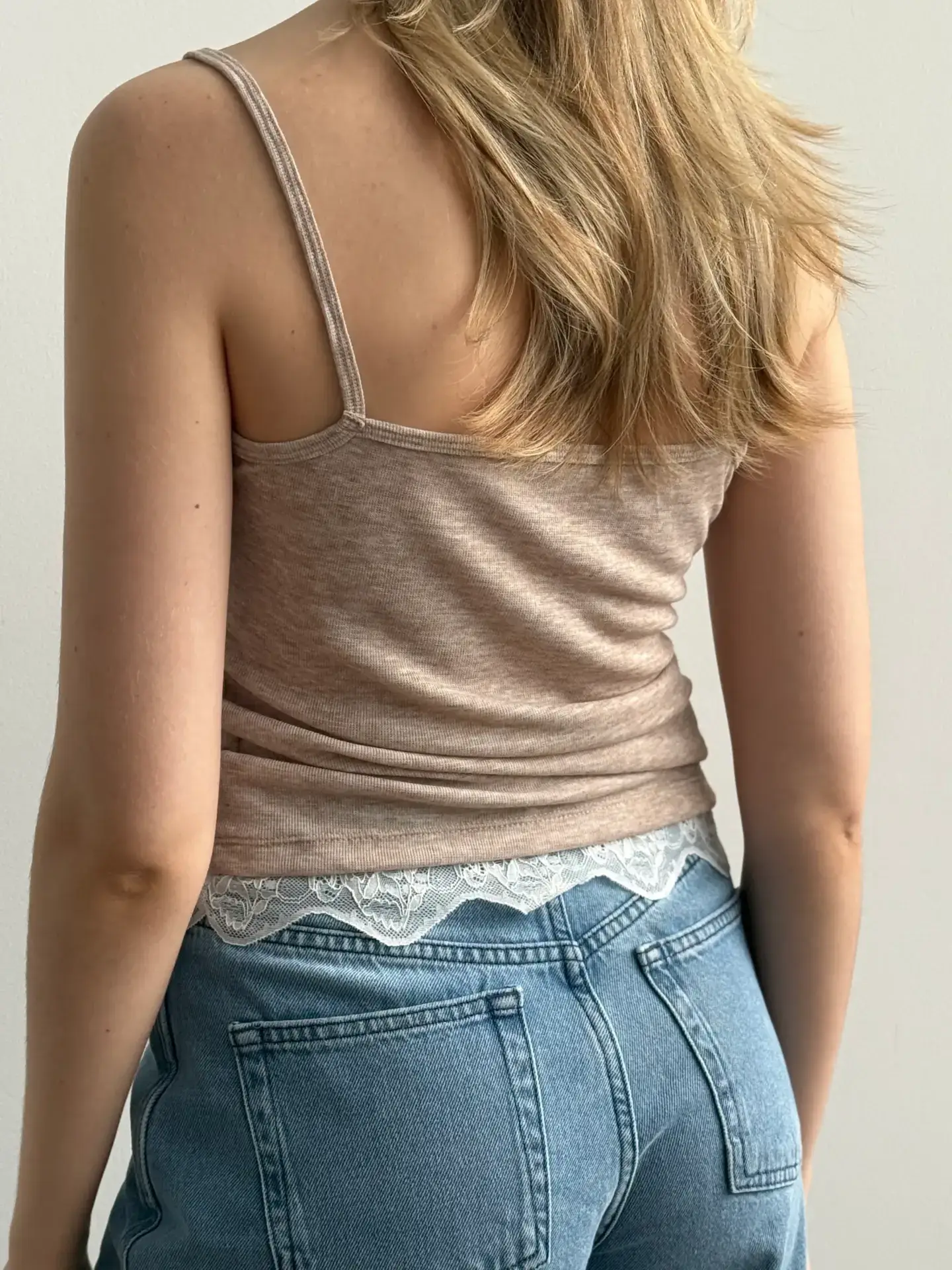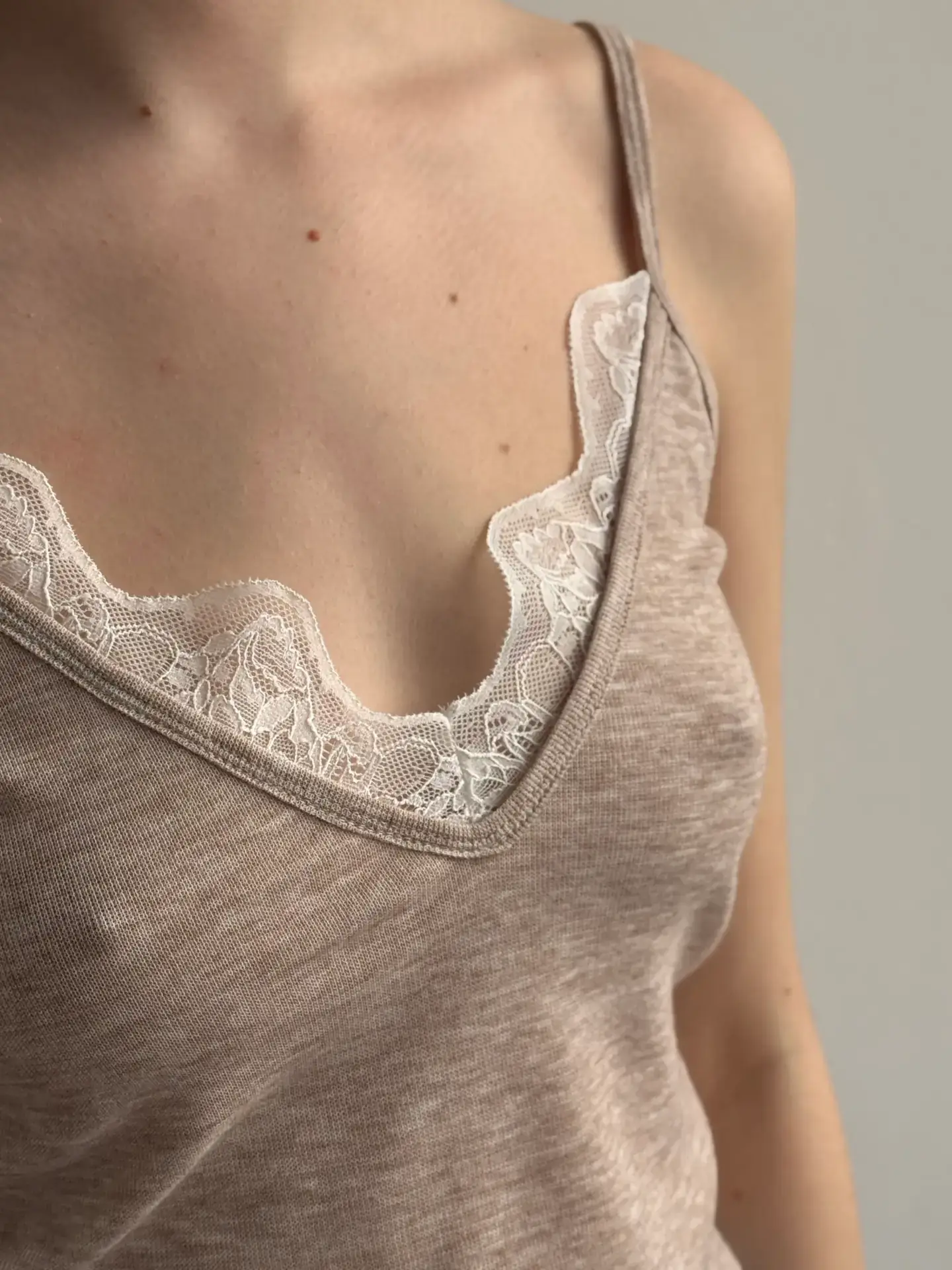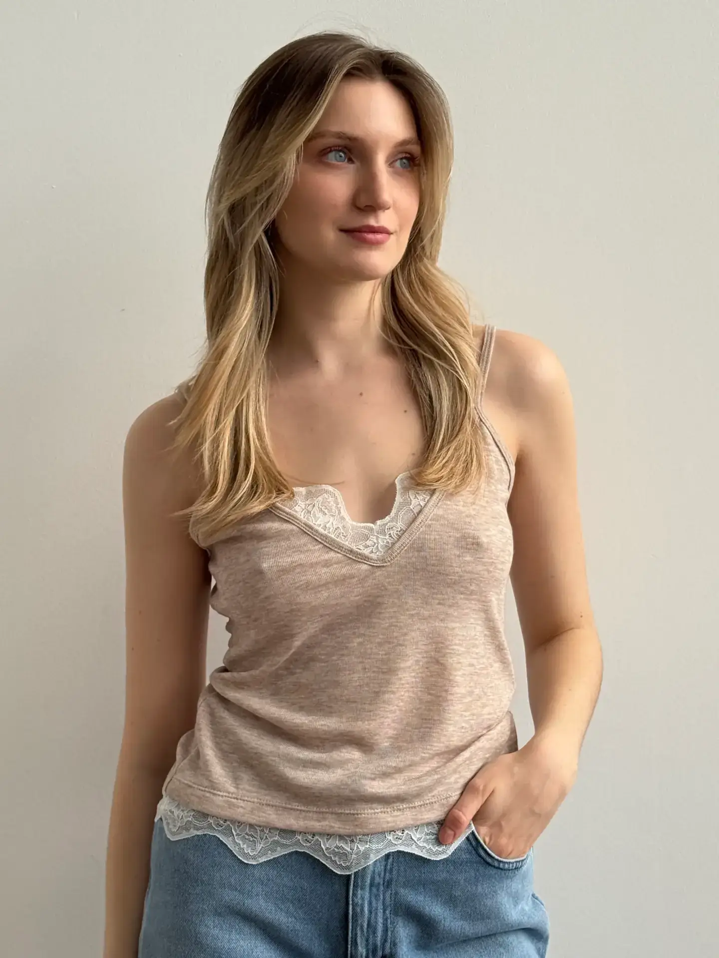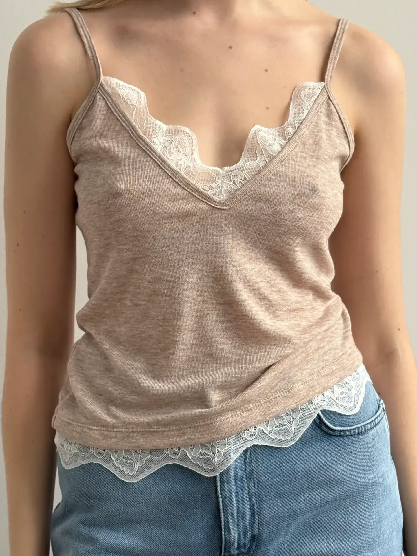 Майка трикотаж з мереживом бежева