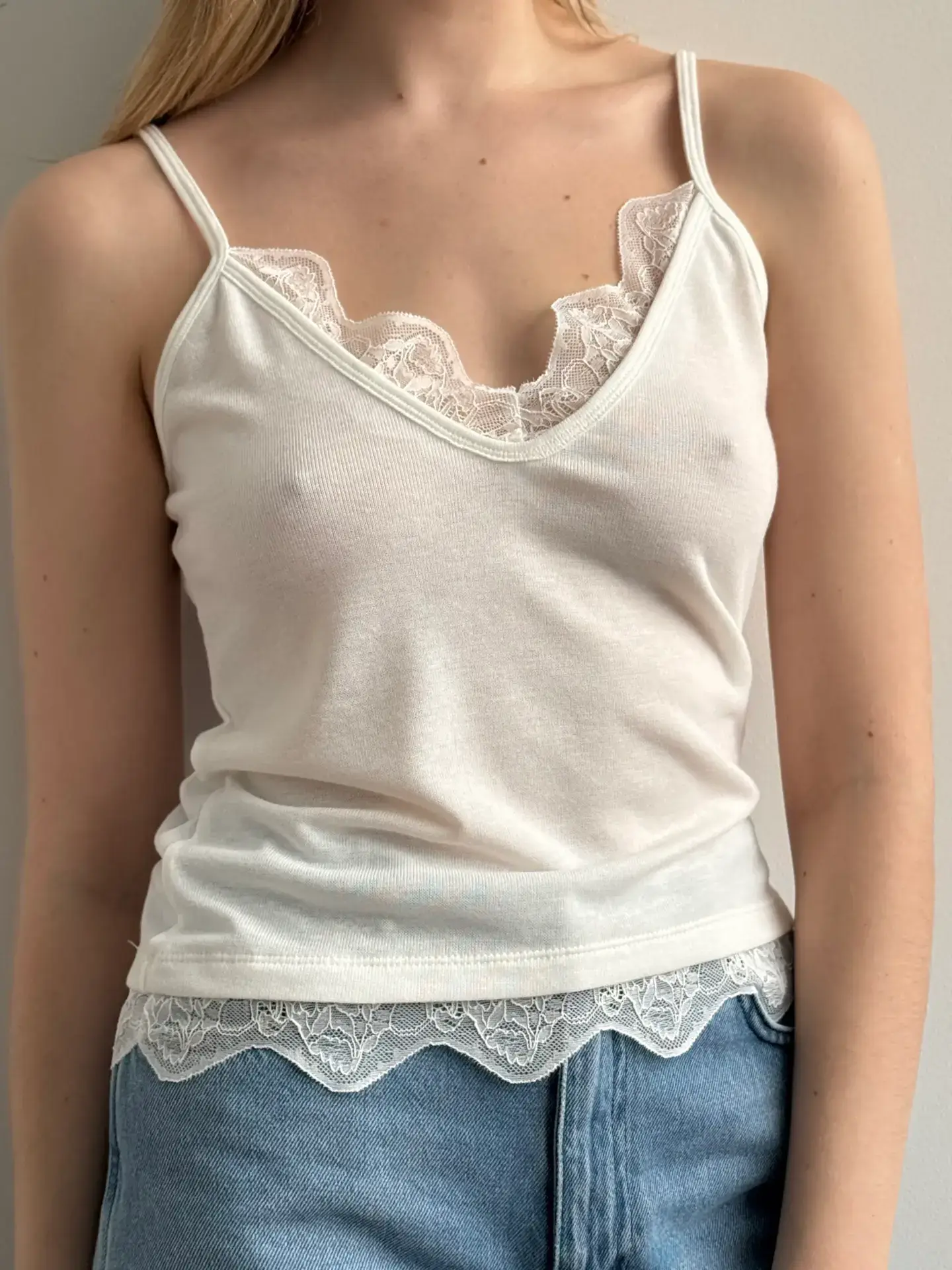 Майка трикотаж з мереживом біла