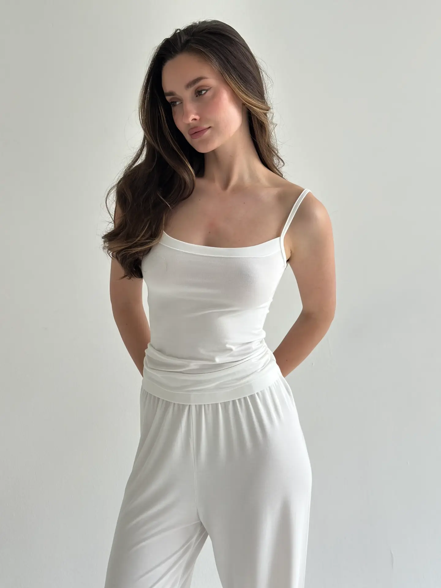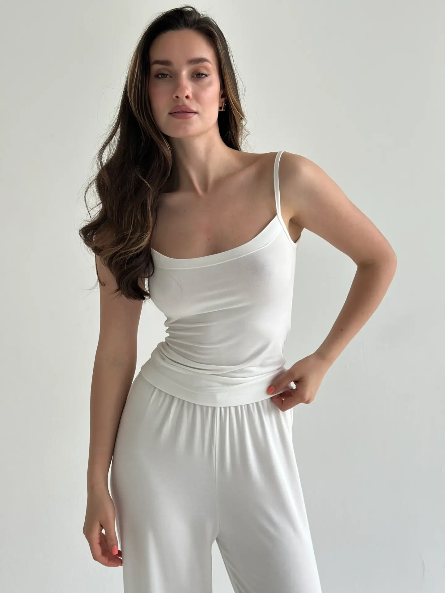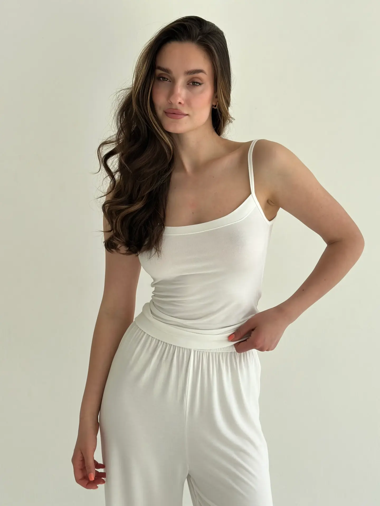 Модал Костюм штани та майка на бретелях молочний