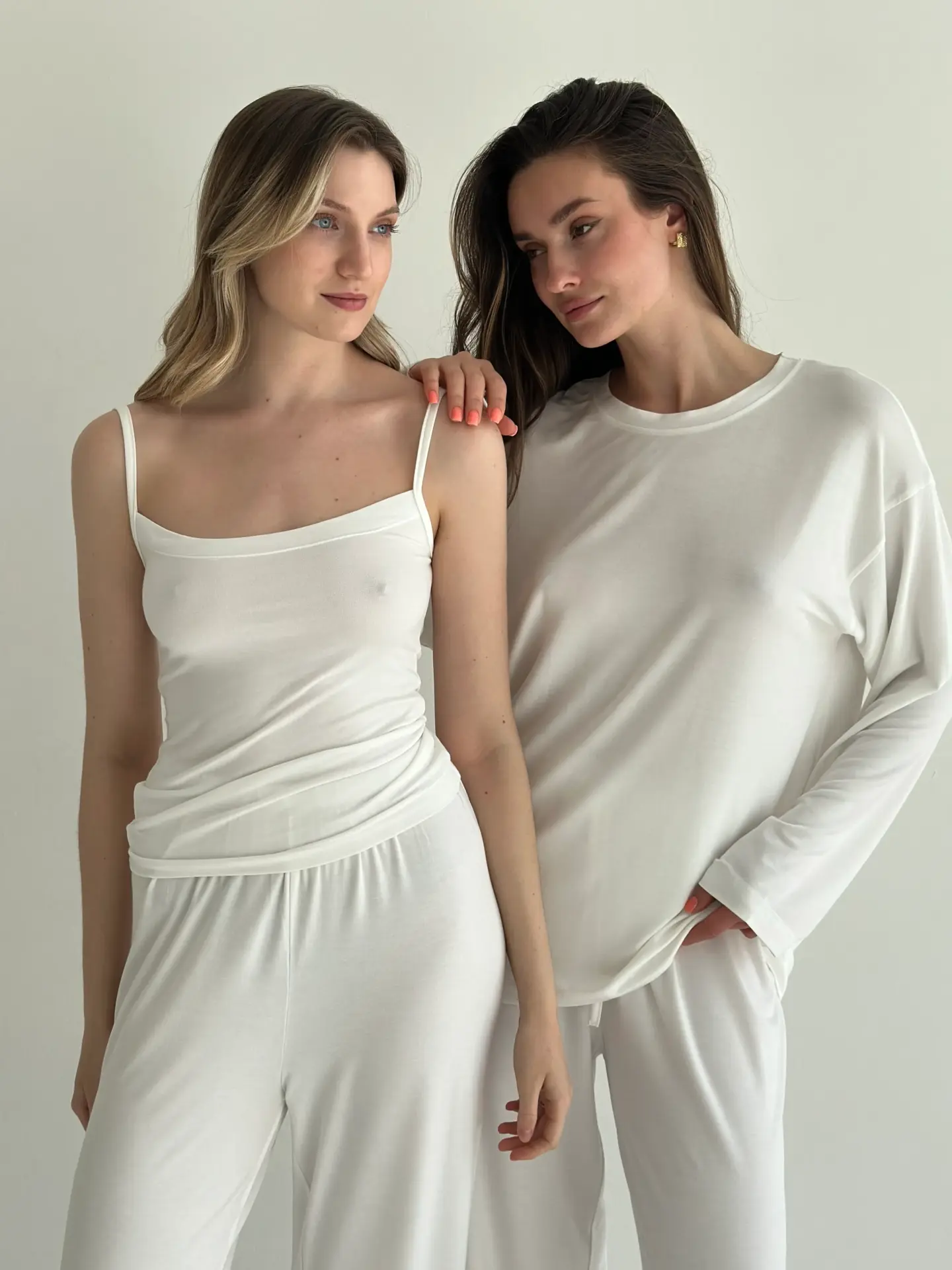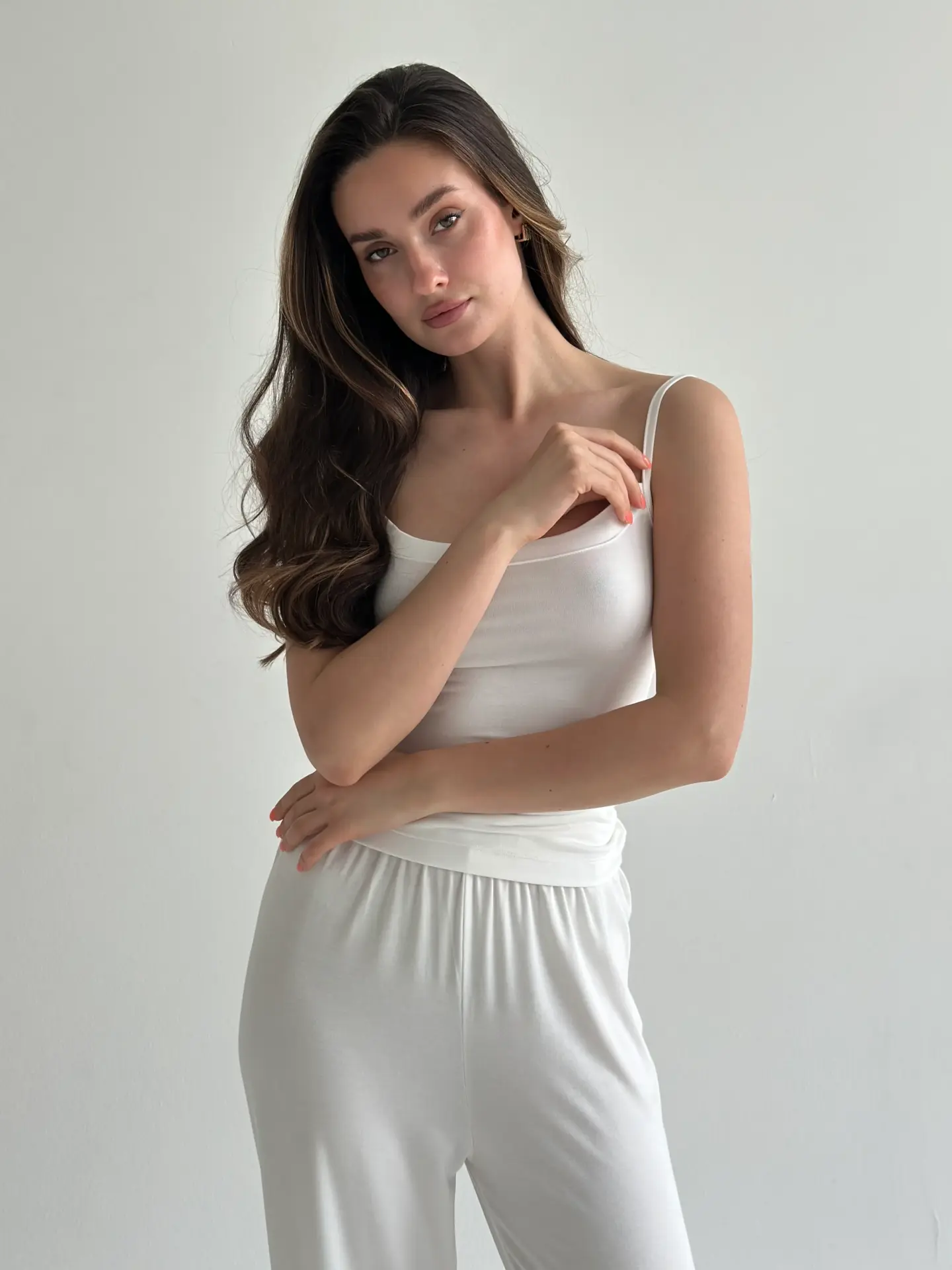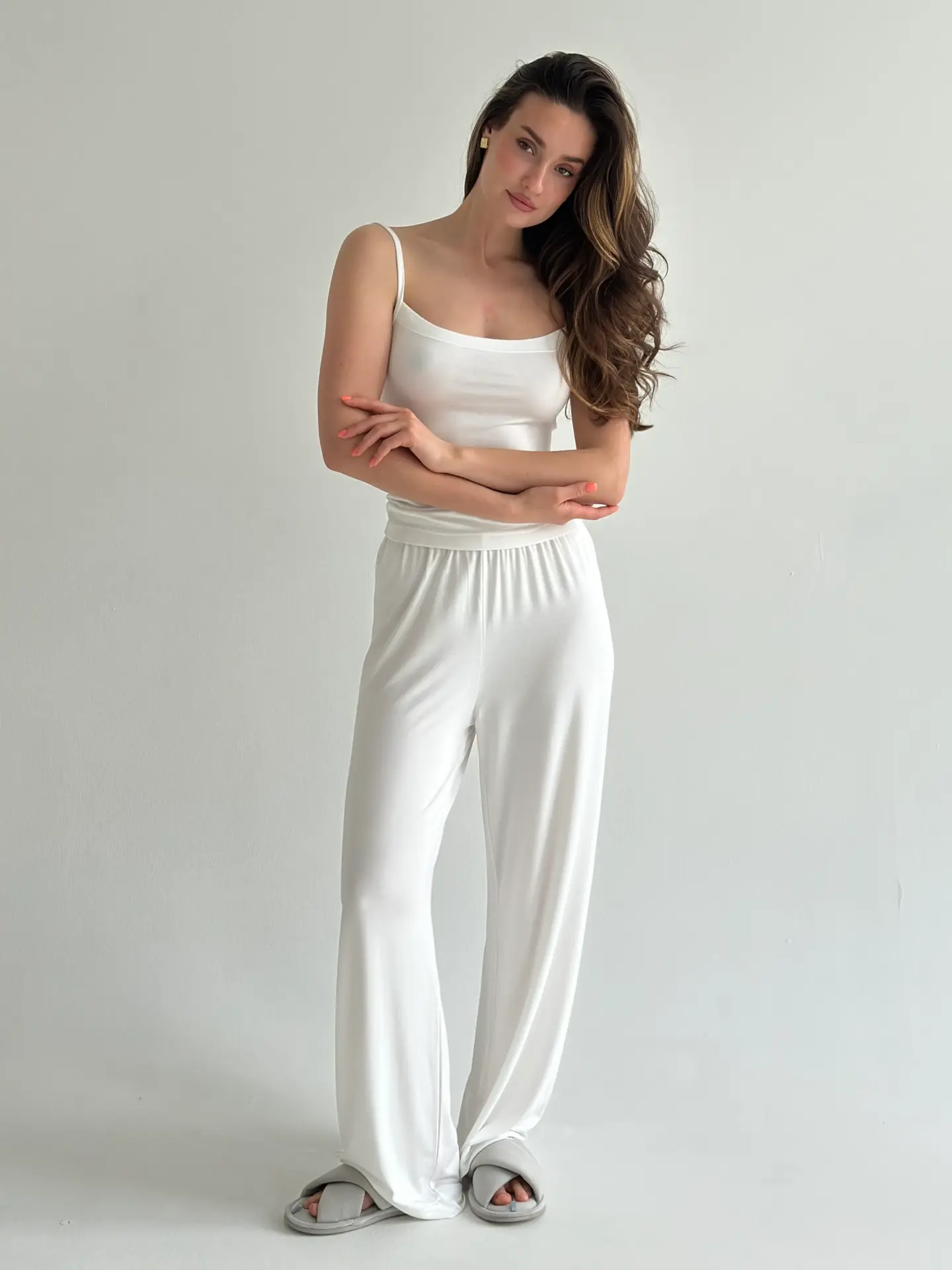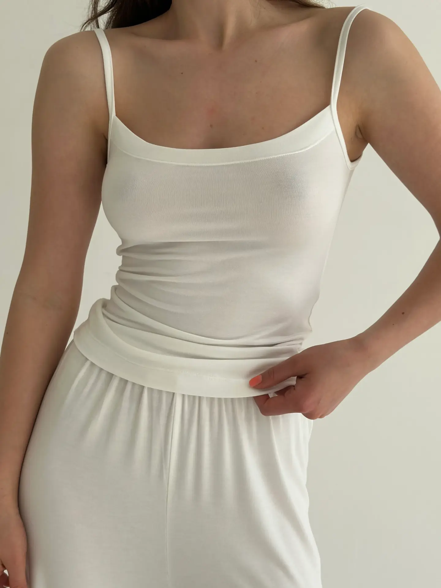 Модал Костюм штани та майка на бретелях молочний
