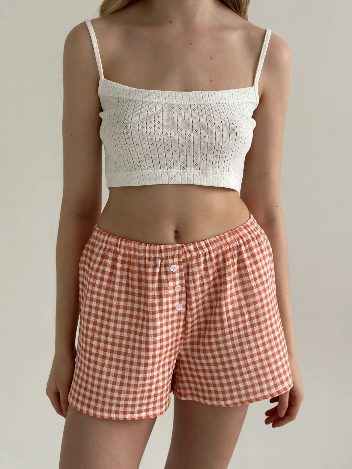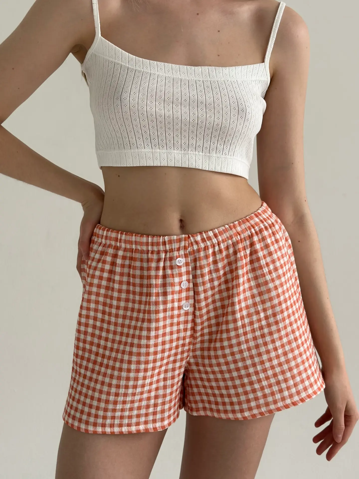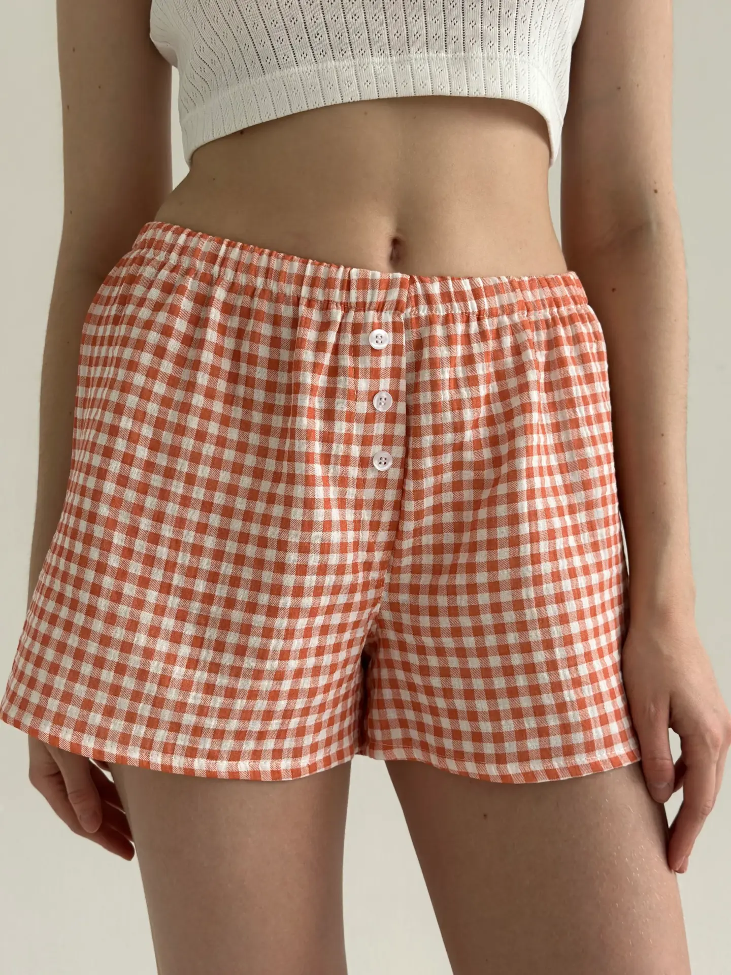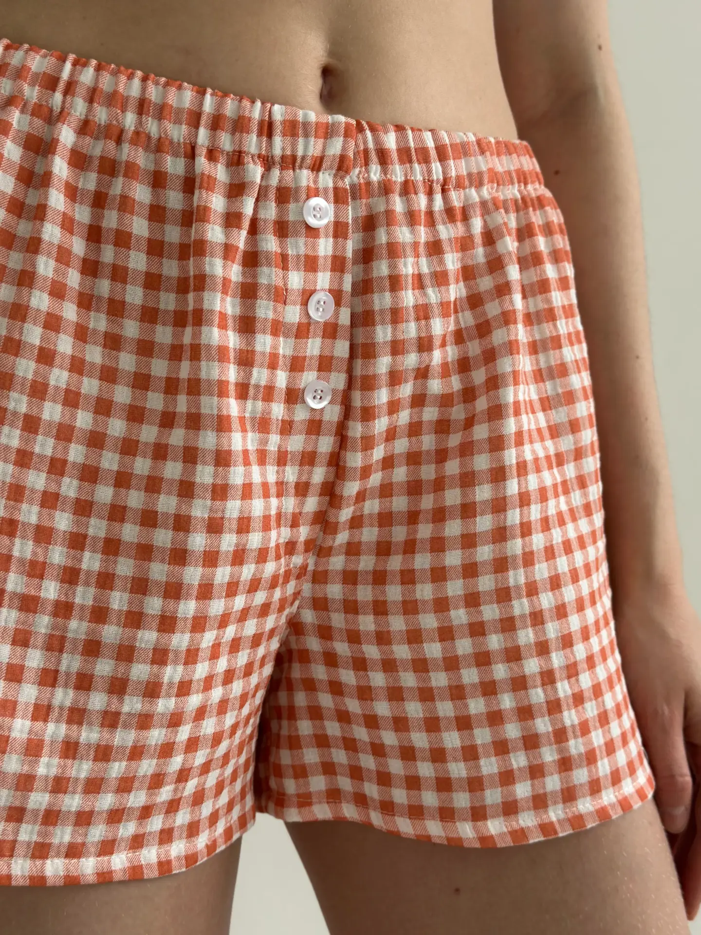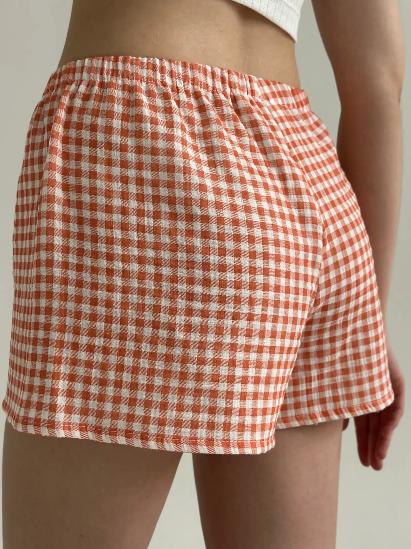 Муслін 2х шаровий Шорти МОНО клітинка теракот на молочном