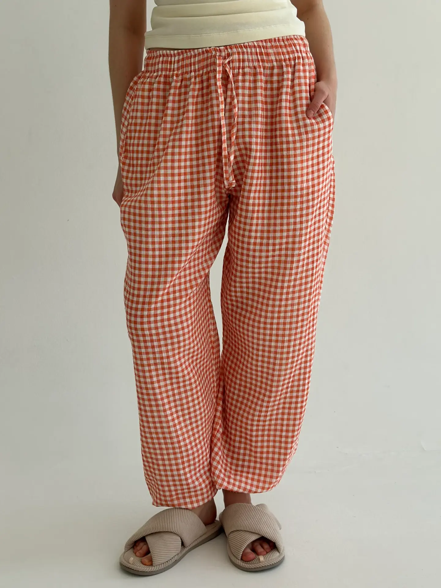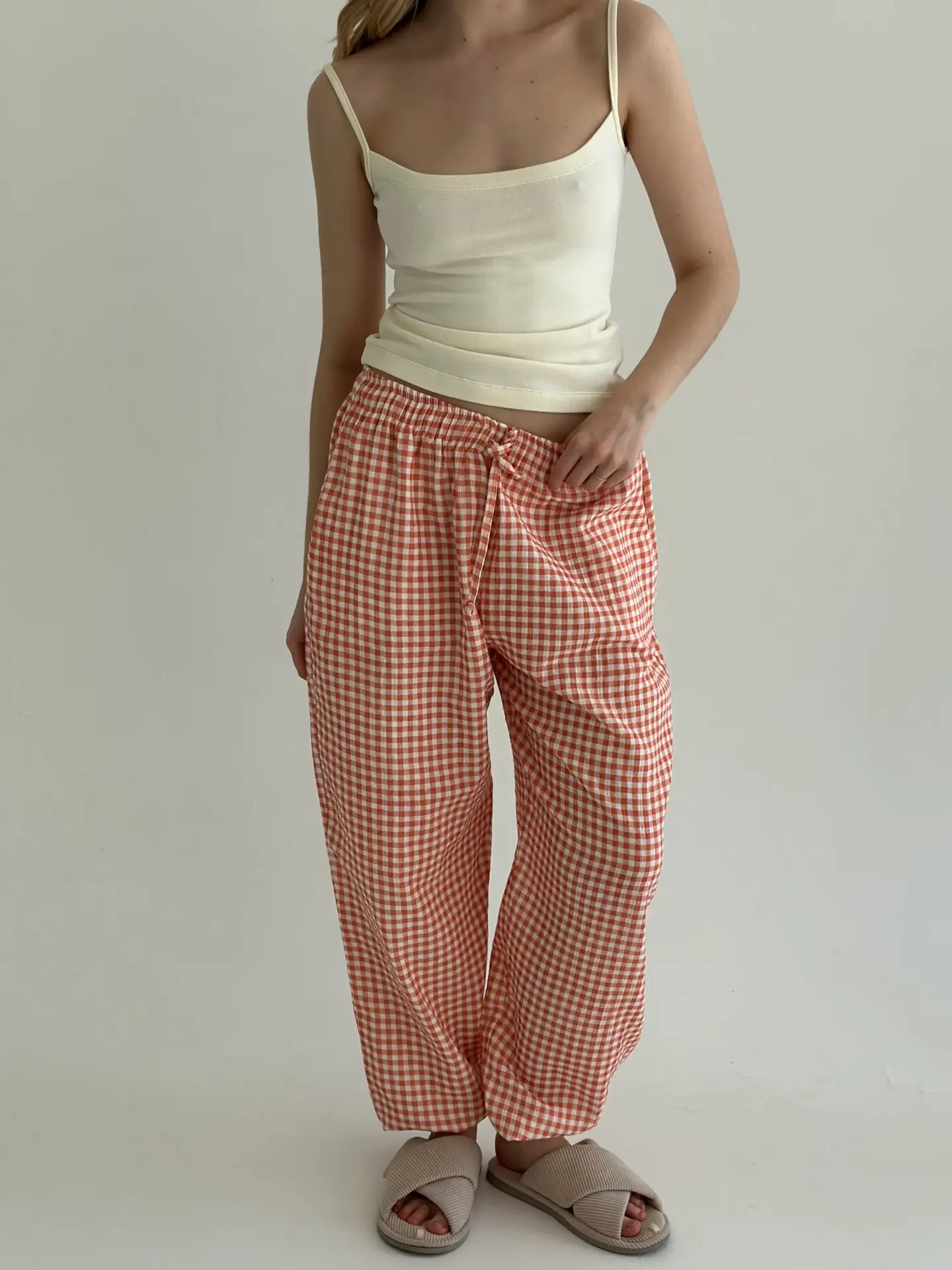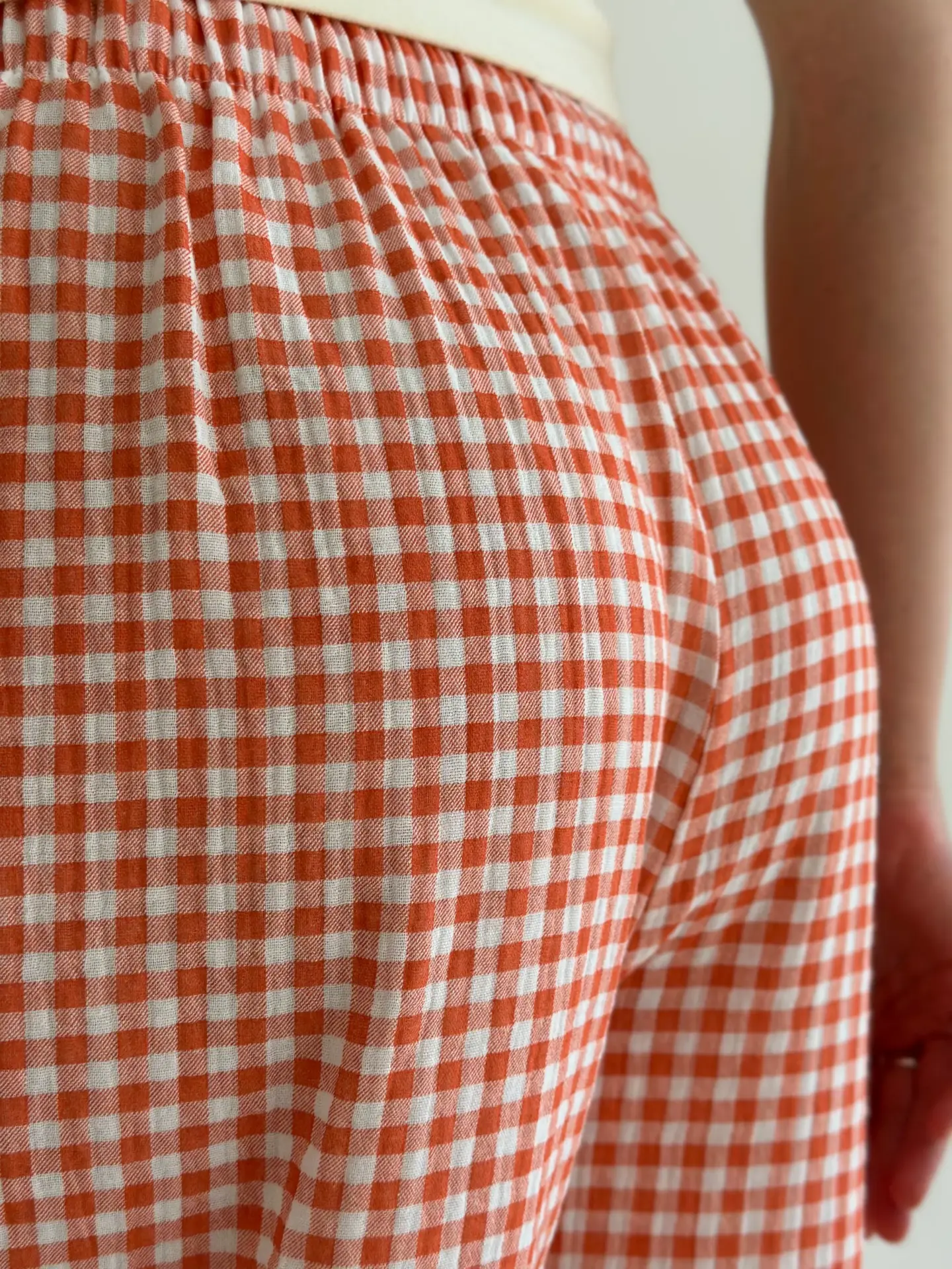 Муслін 2х шаровий Штани шаровари клітинка теракот на молочном