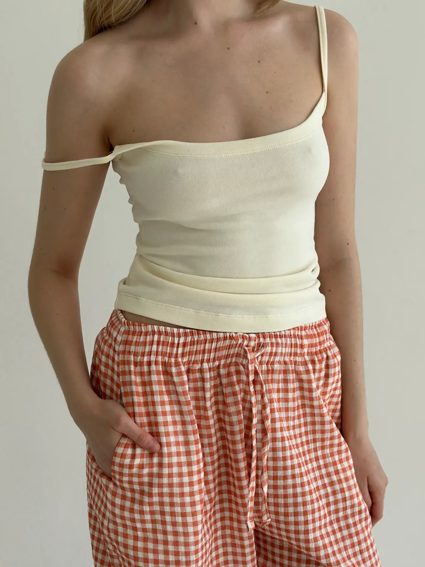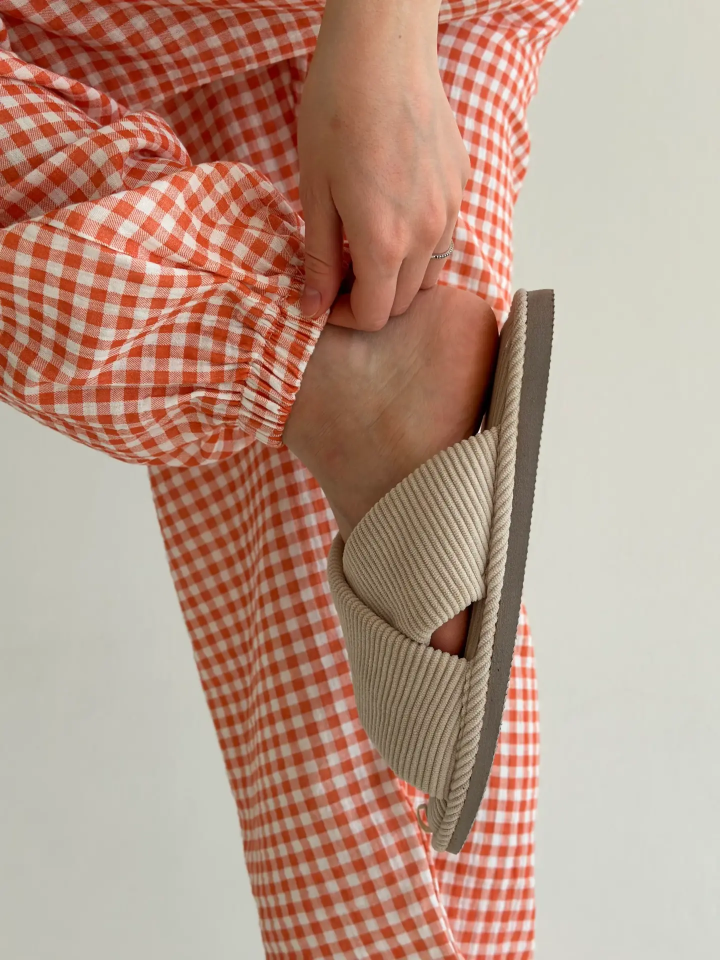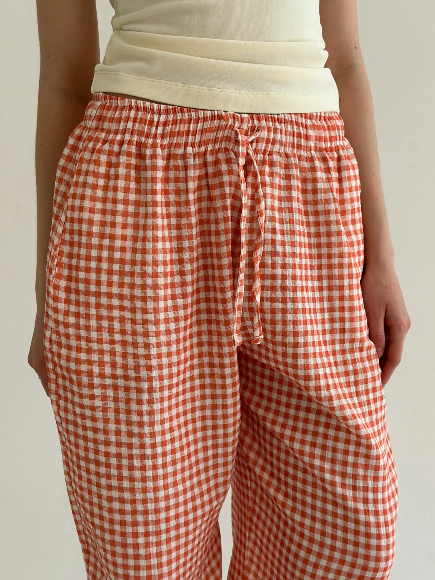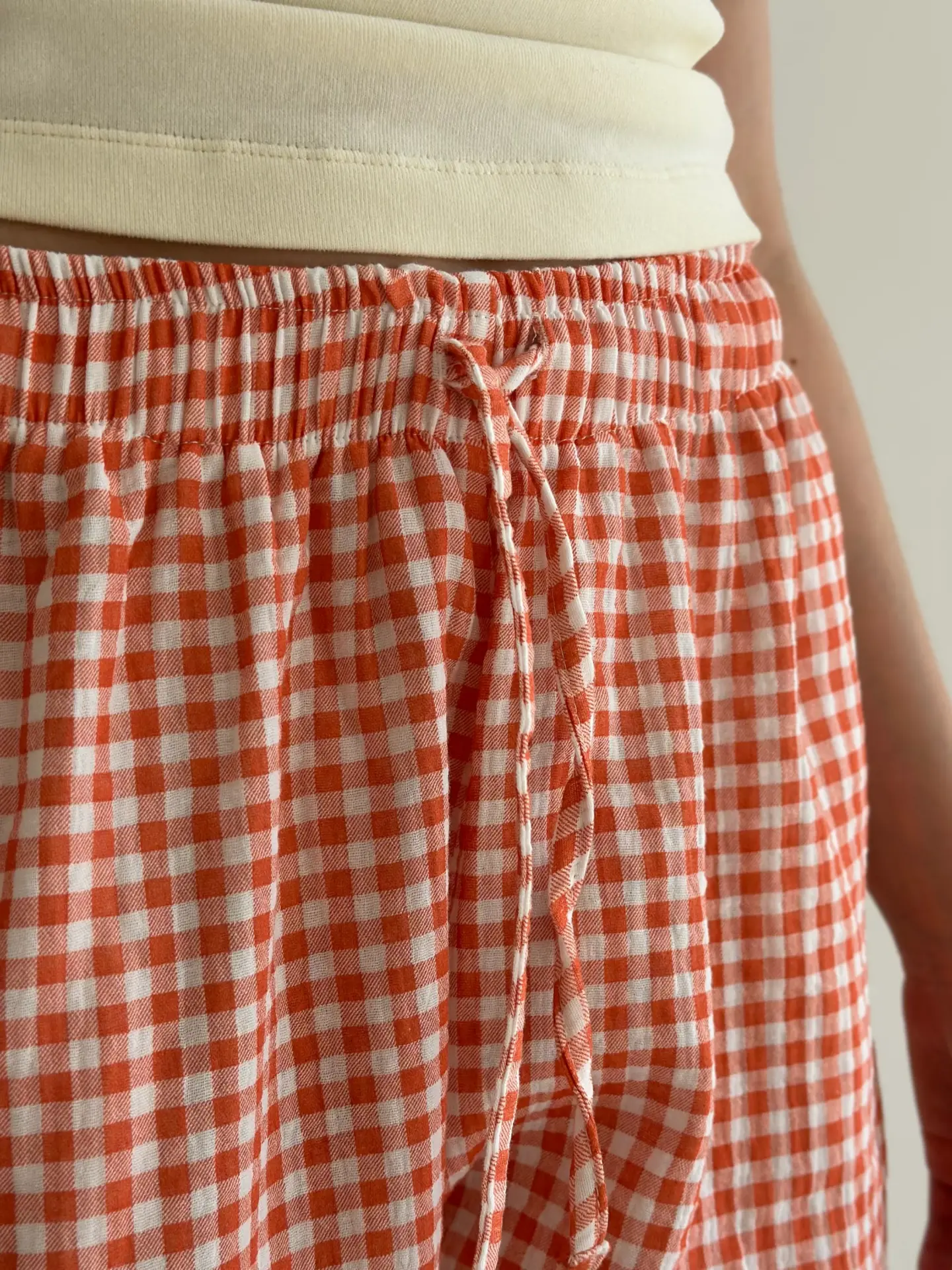 Муслін 2х шаровий Штани шаровари клітинка теракот на молочном