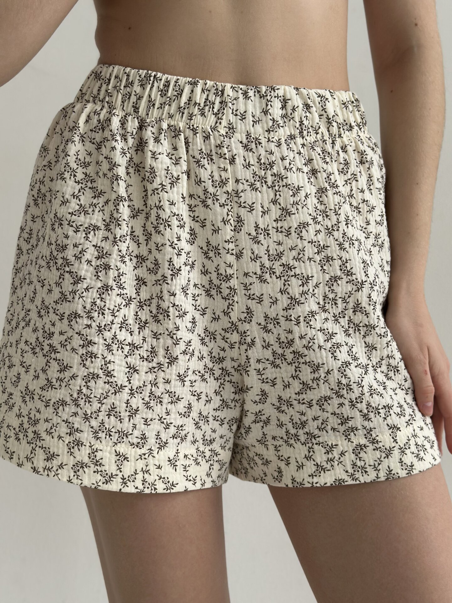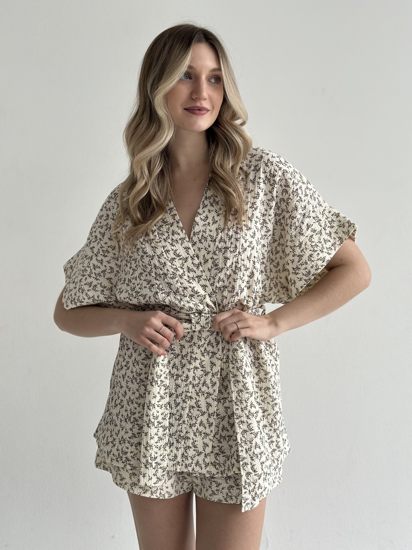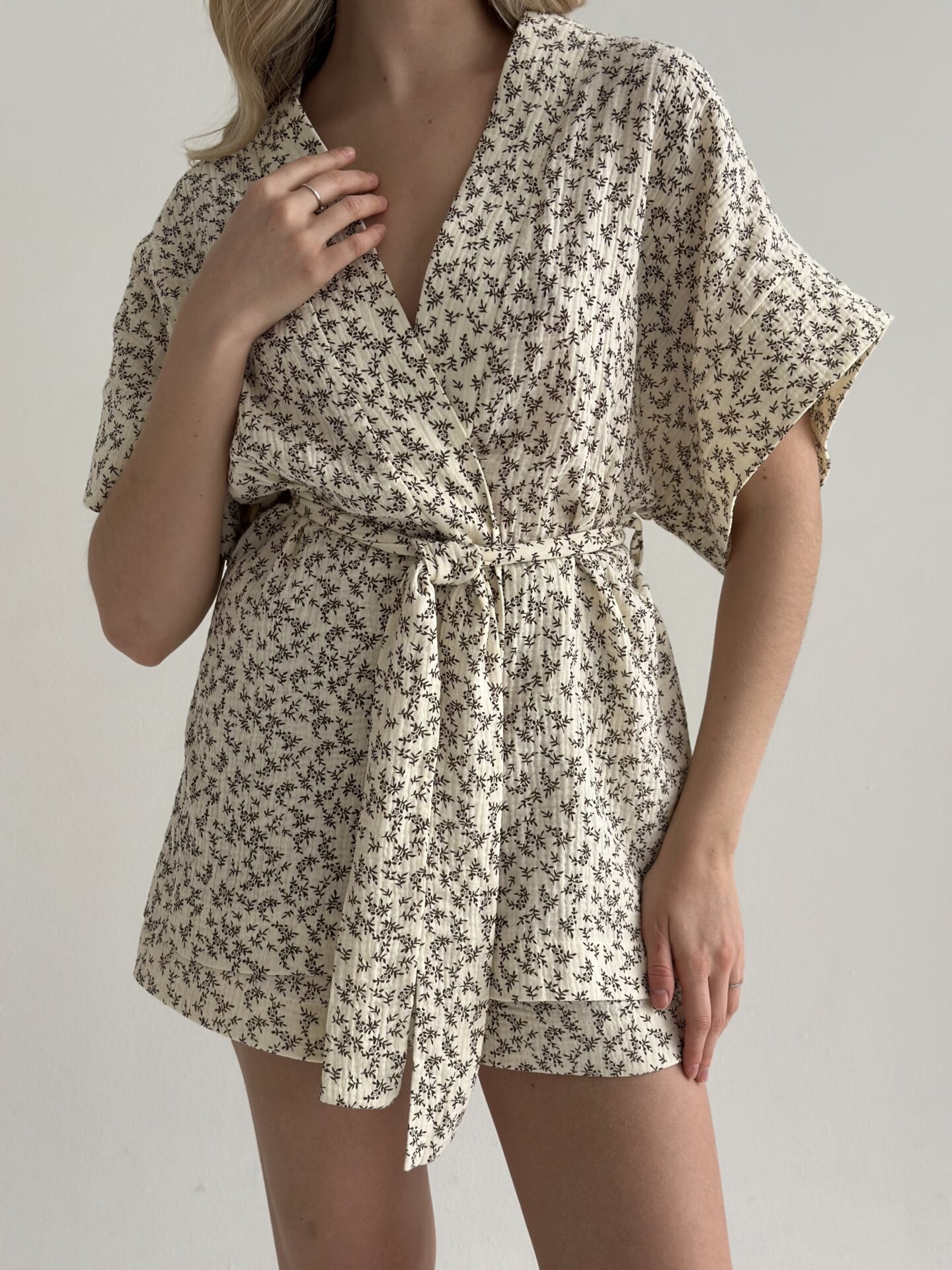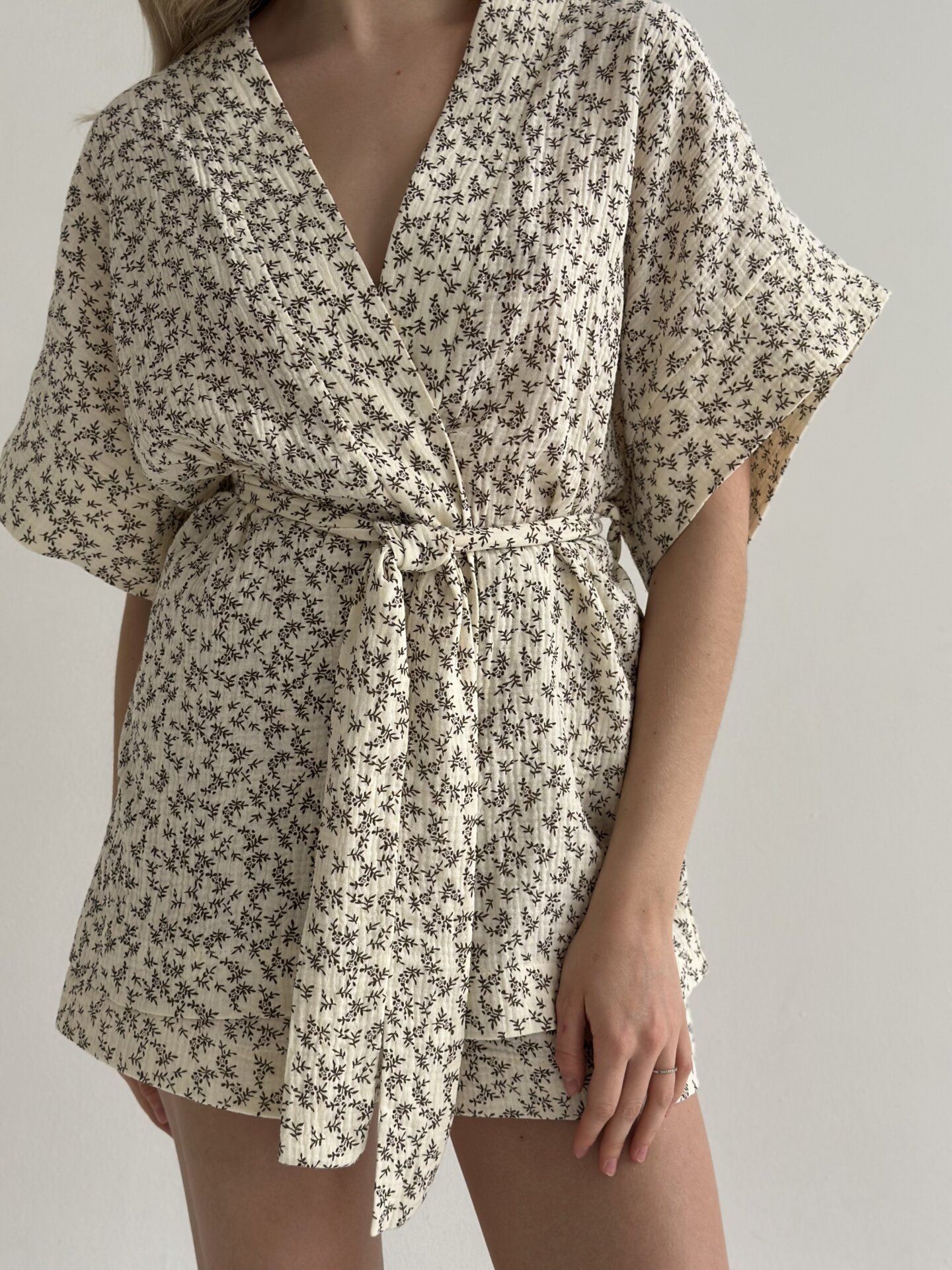 Муслін Костюм кімано та шорти “темно-коричневі гілочки” на айворі 2-х сл