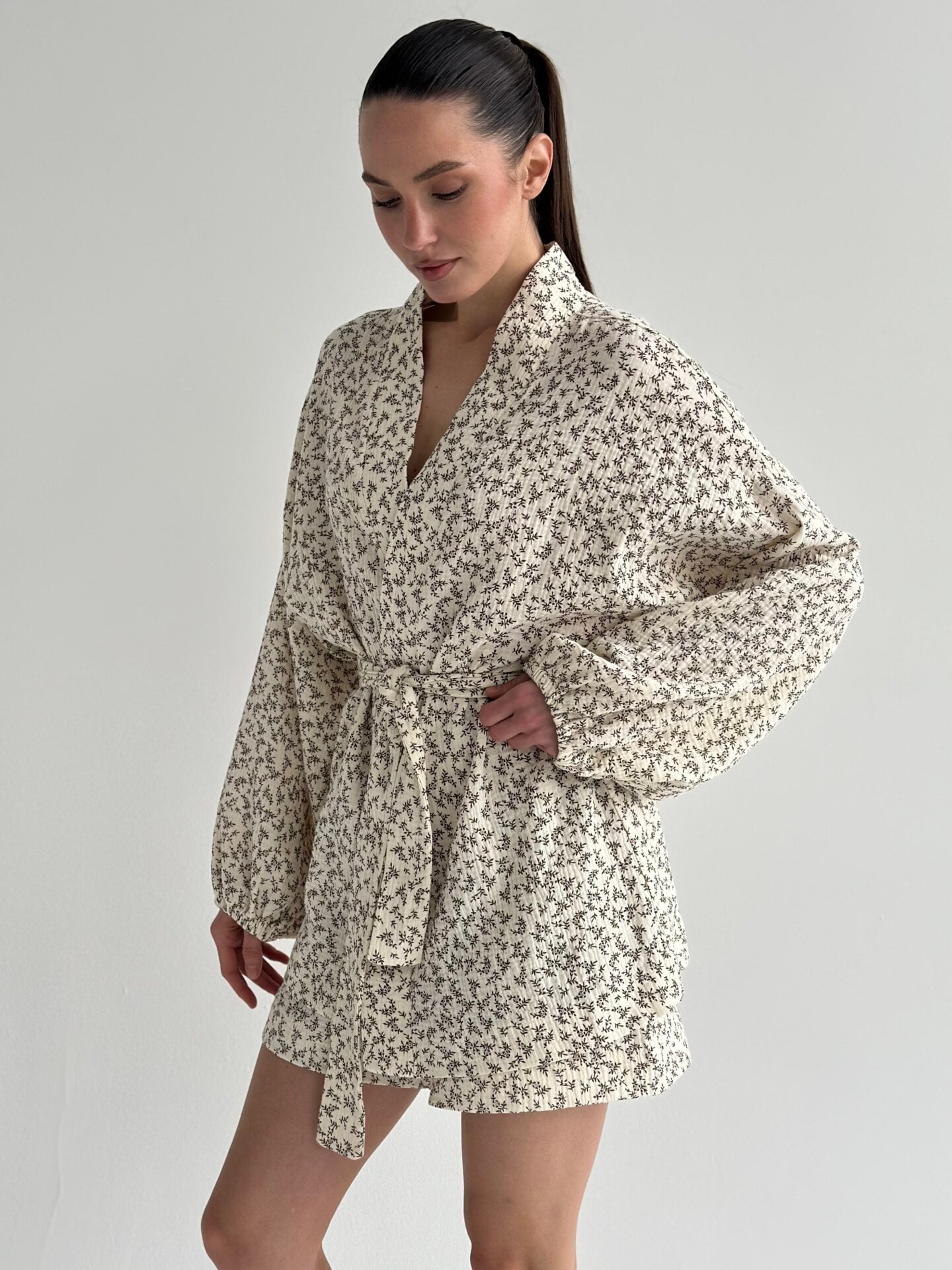 Мусліновий костюм дуже легкий і приємний до тіла. Тканина м’яка, добре пропускає повітря і не створює відчуття спеки. У ньому комфортно протягом усього дня, нічого не тисне і не сковує рухів. Саме той варіант, який хочеться носити постійно вдома або на відпочинку.