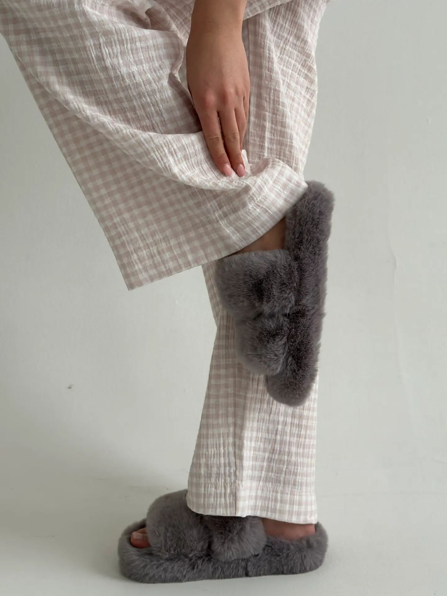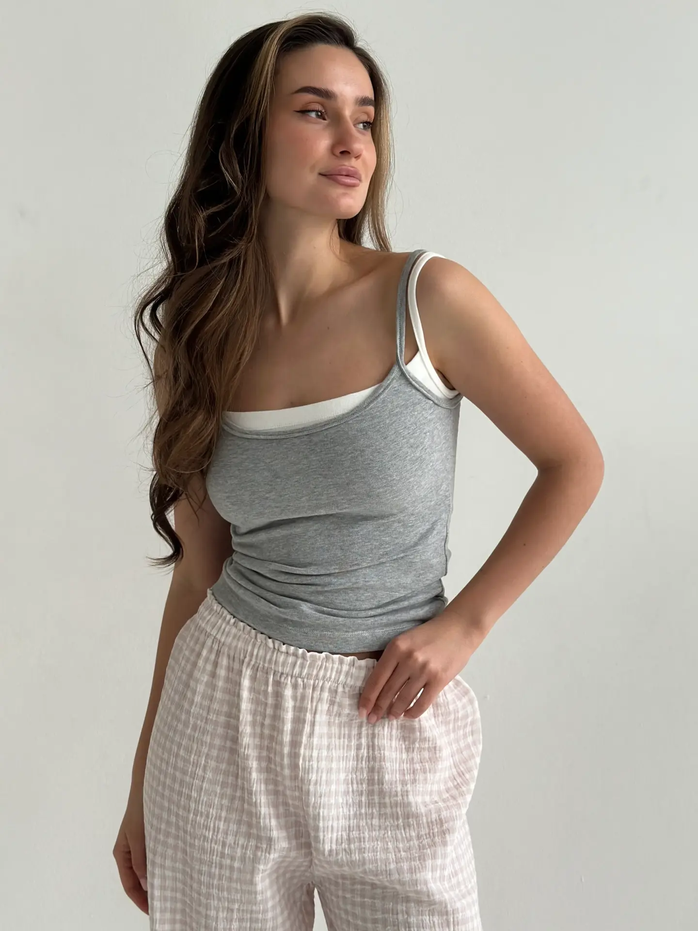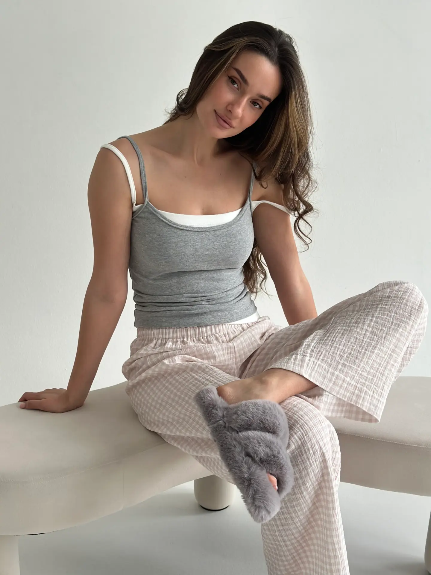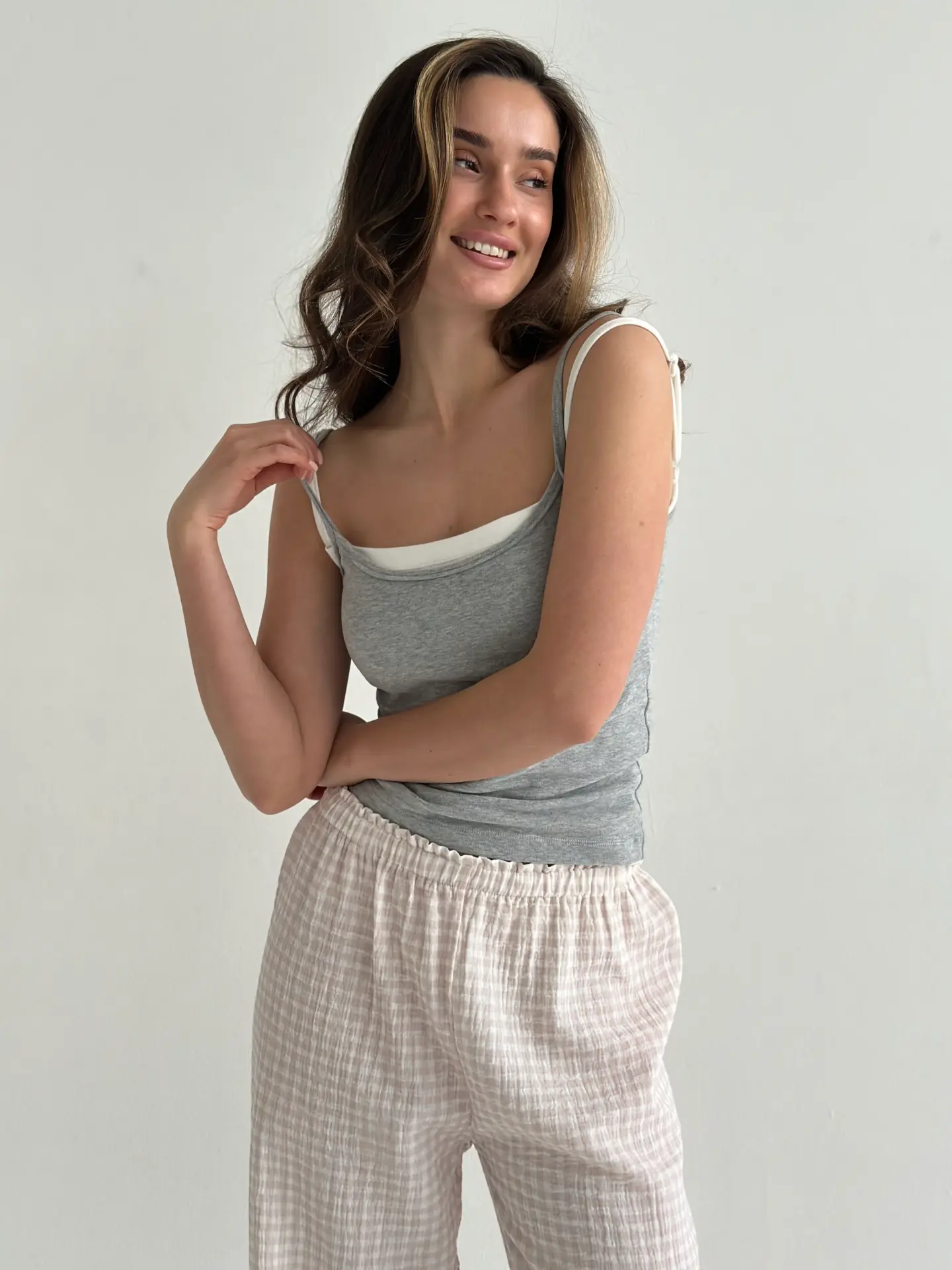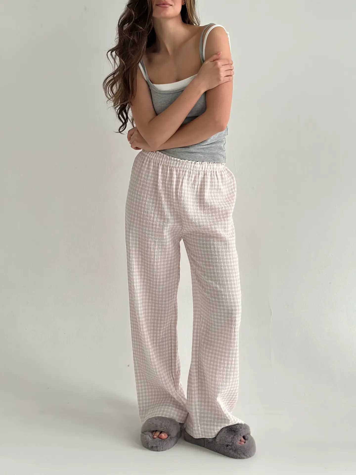 Муслін Штани Моно бежева клітинка на молочному 2-х сл.
