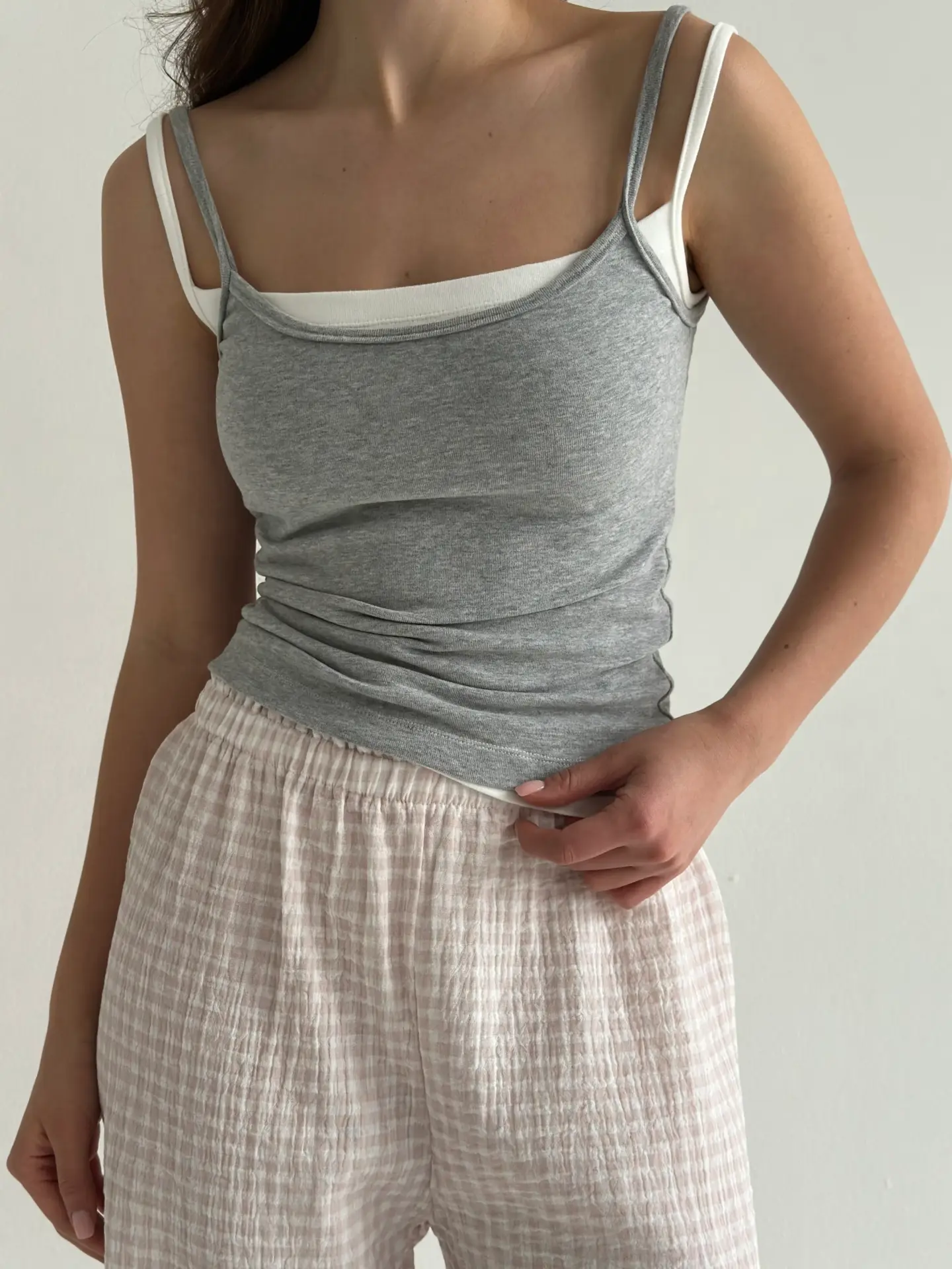 Муслін Штани Моно бежева клітинка на молочному 2-х сл. - Twins