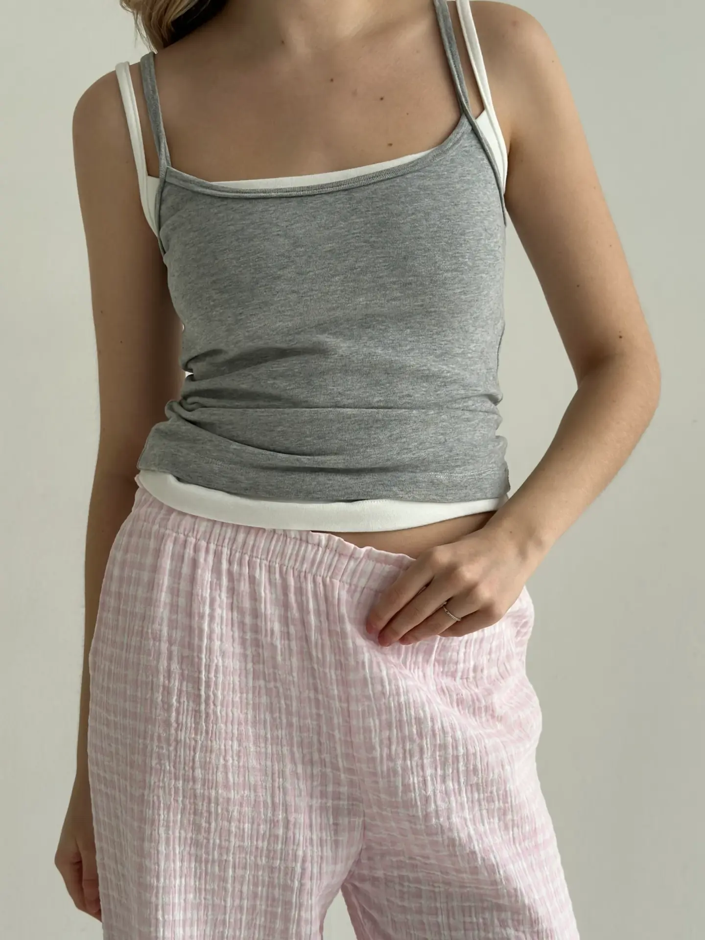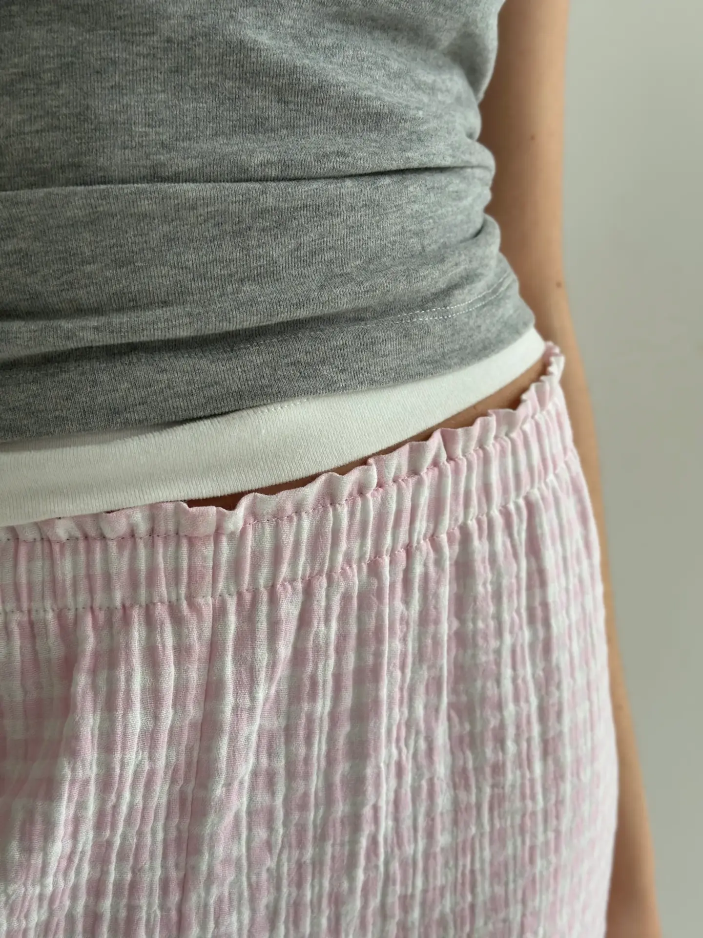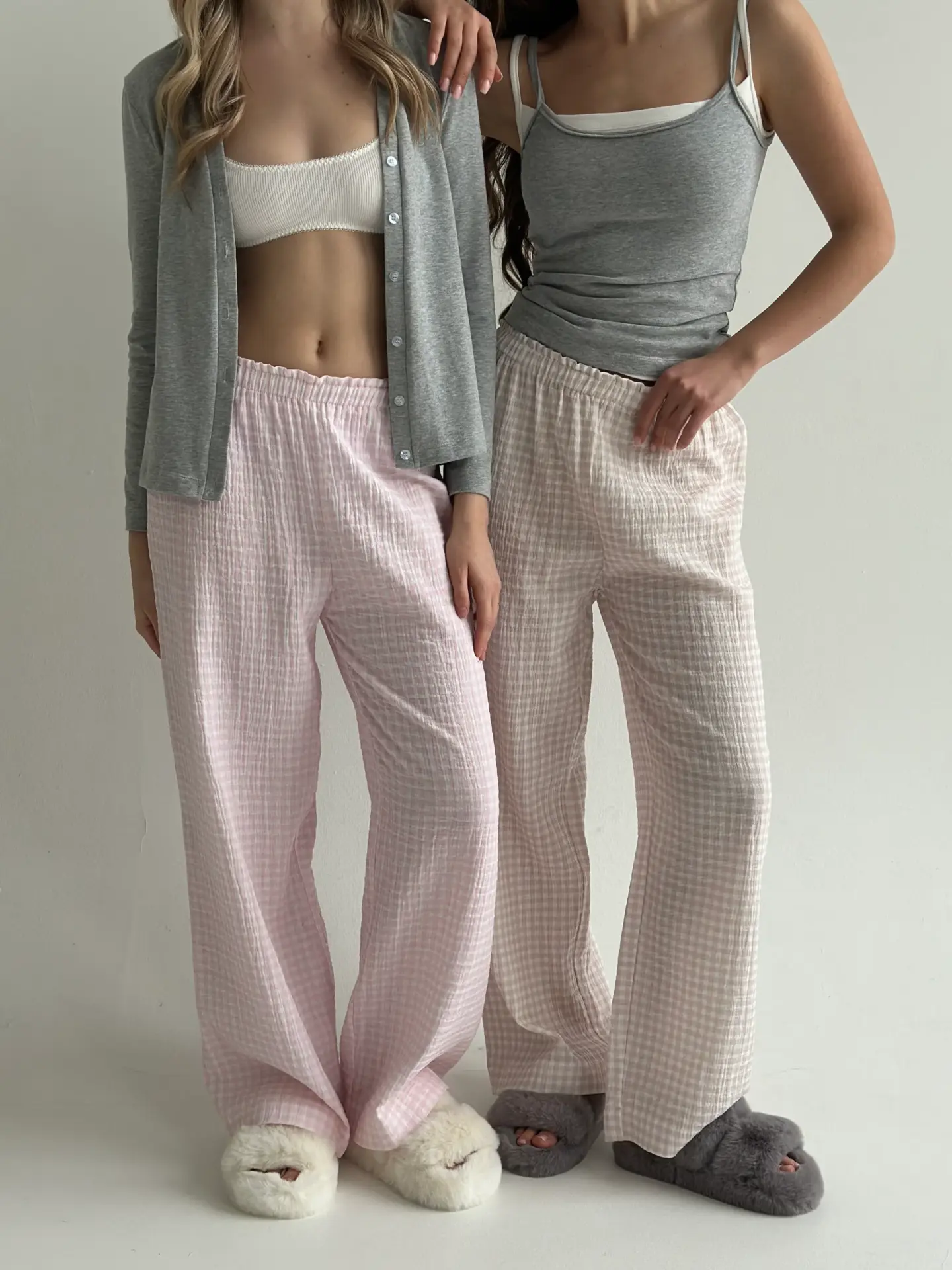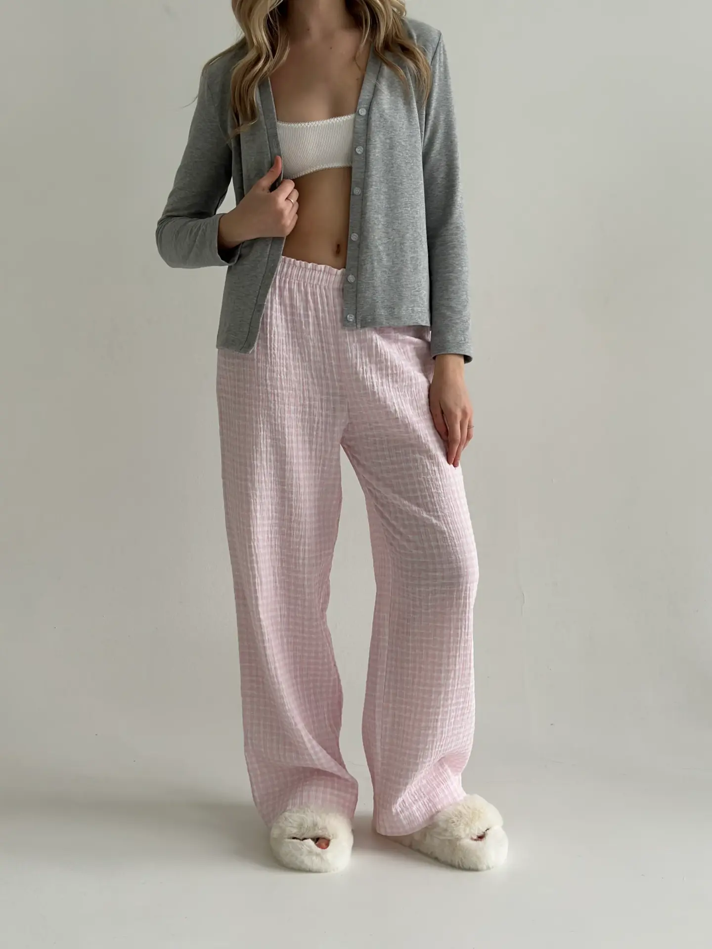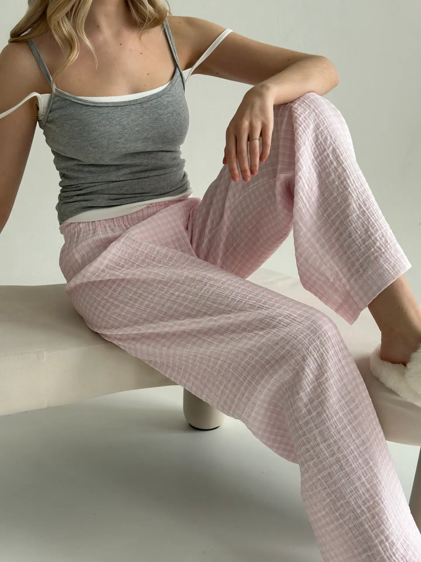 Муслін Штани Моно рожева клітинка на молочному 2-х сл.