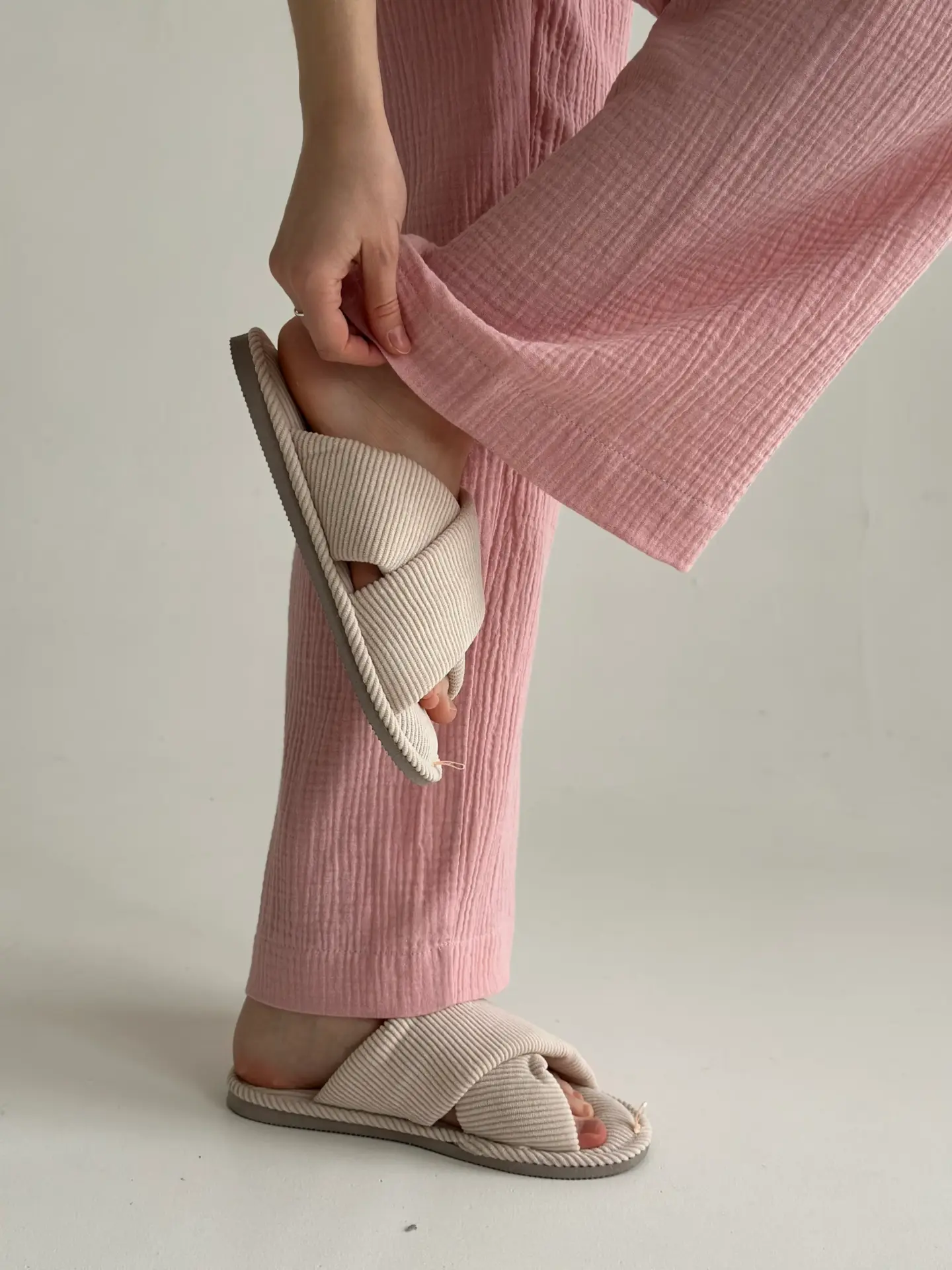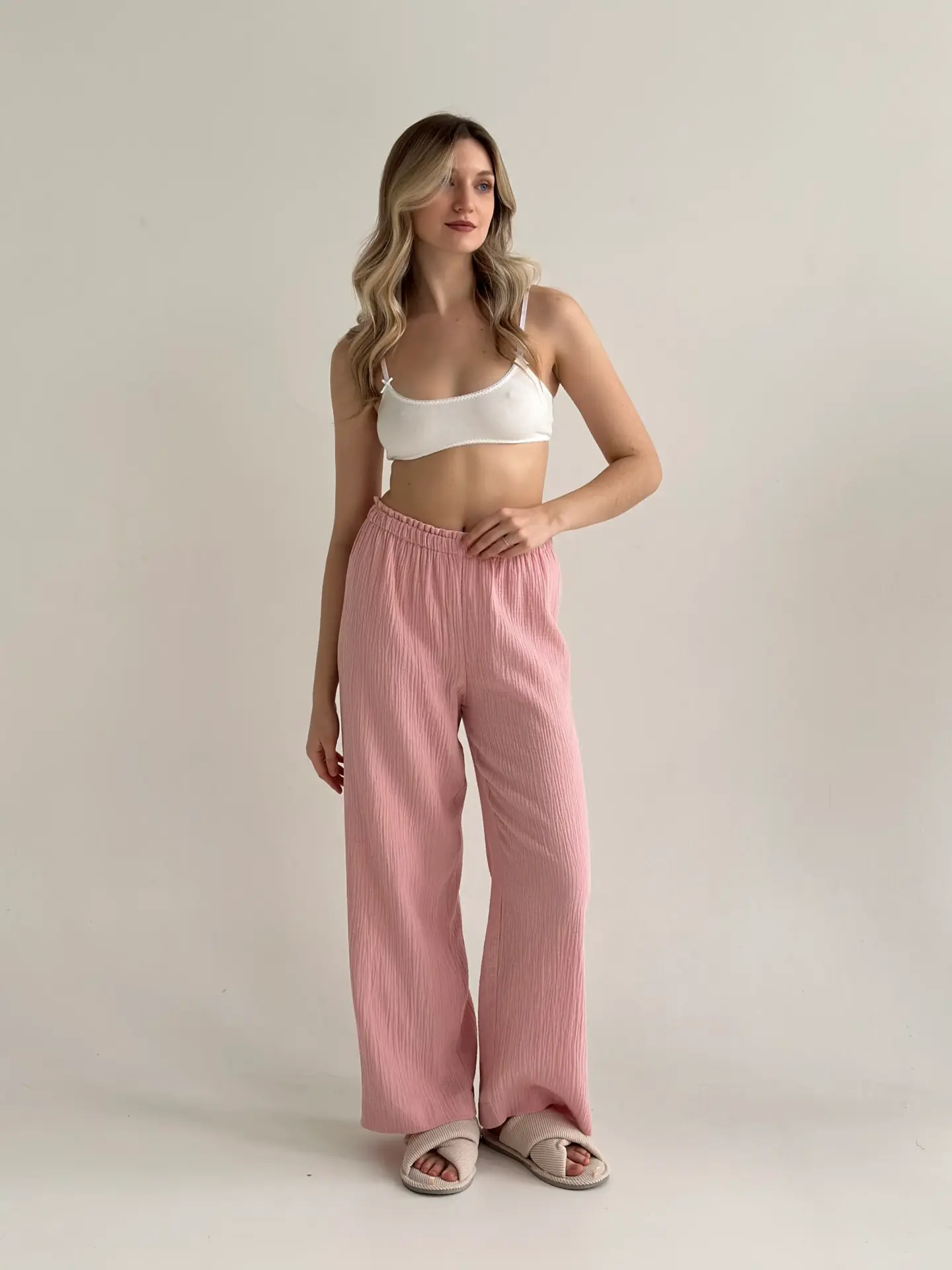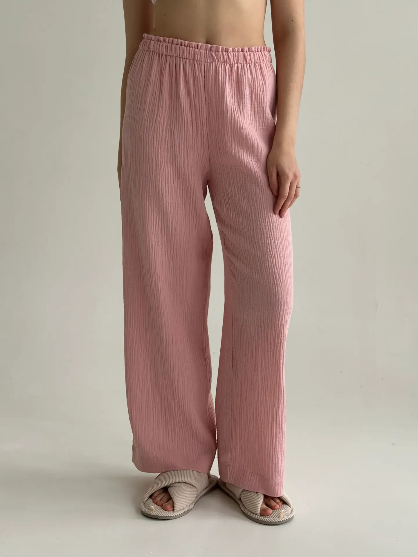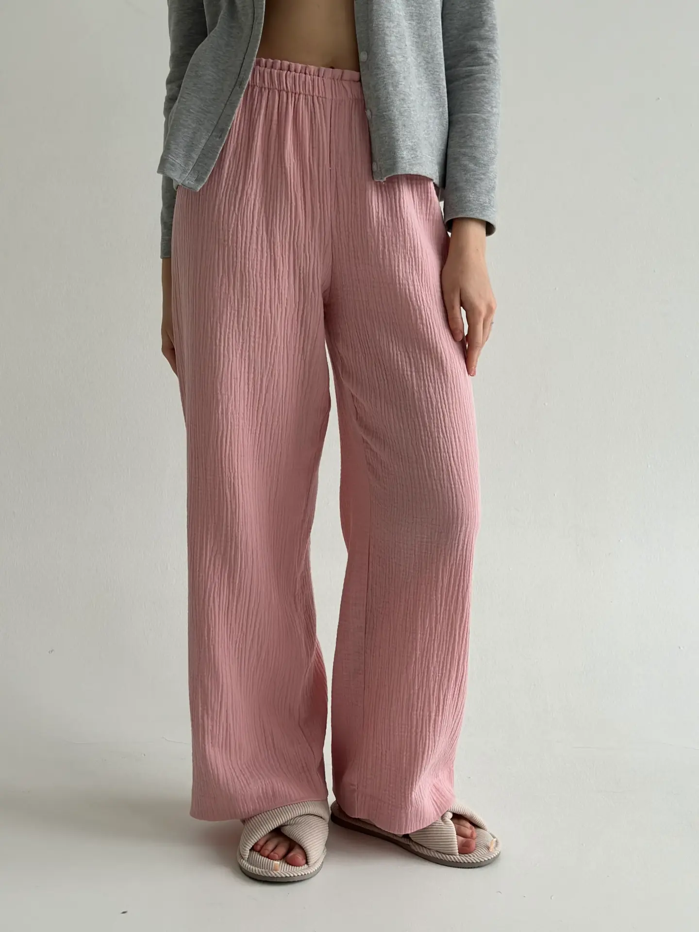 Штани “Моно” з мусліну – легкі, дихаючі та неймовірно комфортні. Натуральна тканина забезпечує м’якість і свободу рухів, ідеально підходячи для теплої пори року.