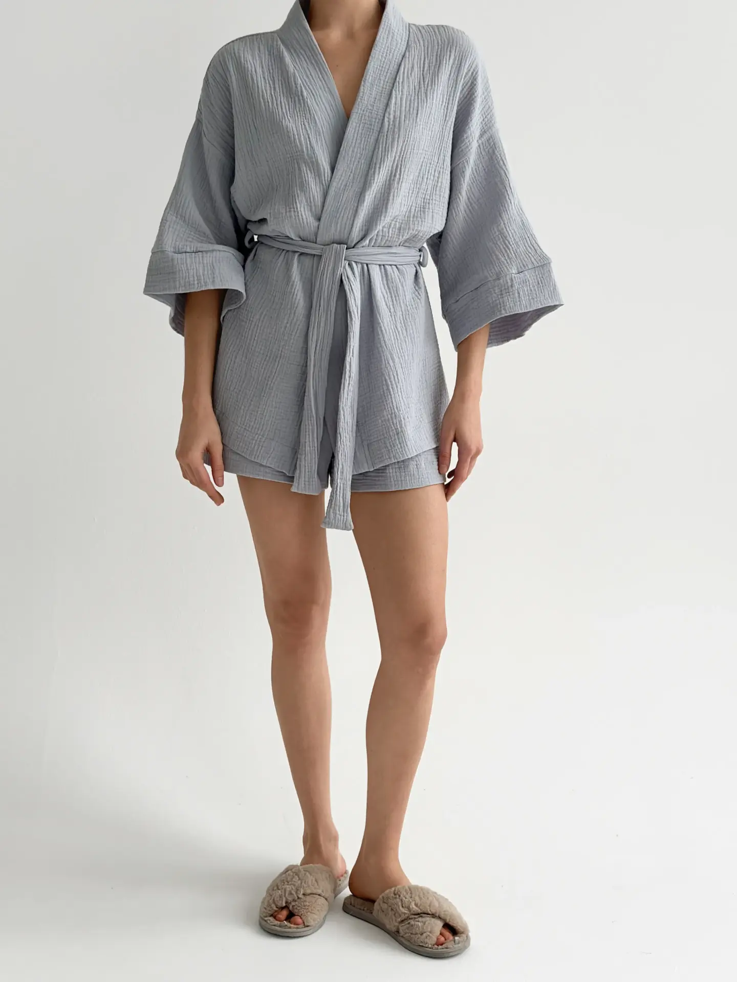 Халат Кімоно короткий муслін сірий 2-х сл.