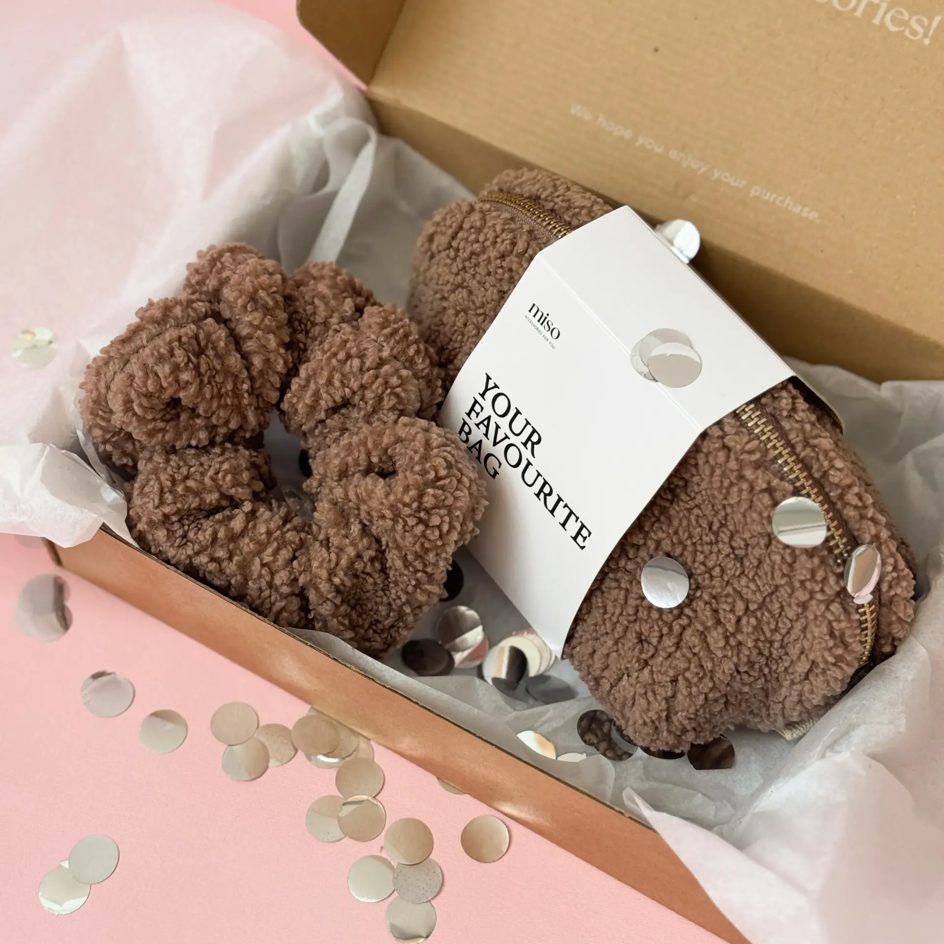 Набір Тедді резинка та мала косметичка колір коричневий