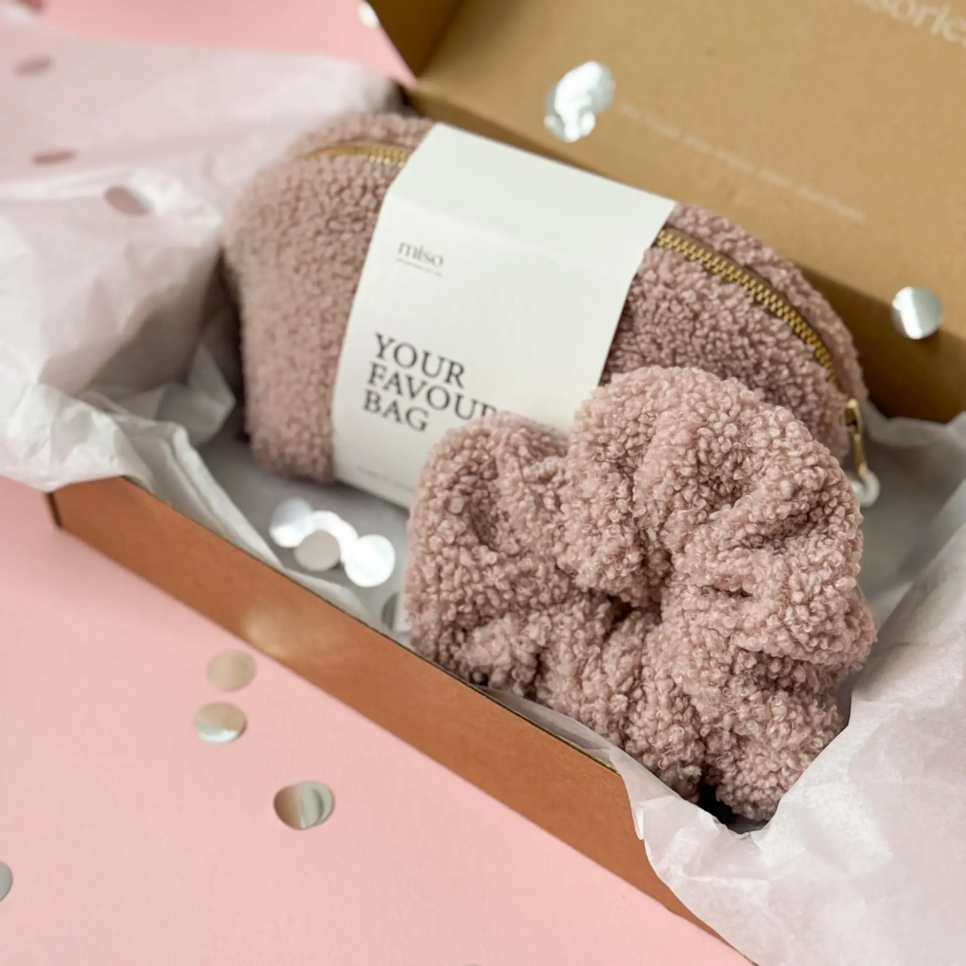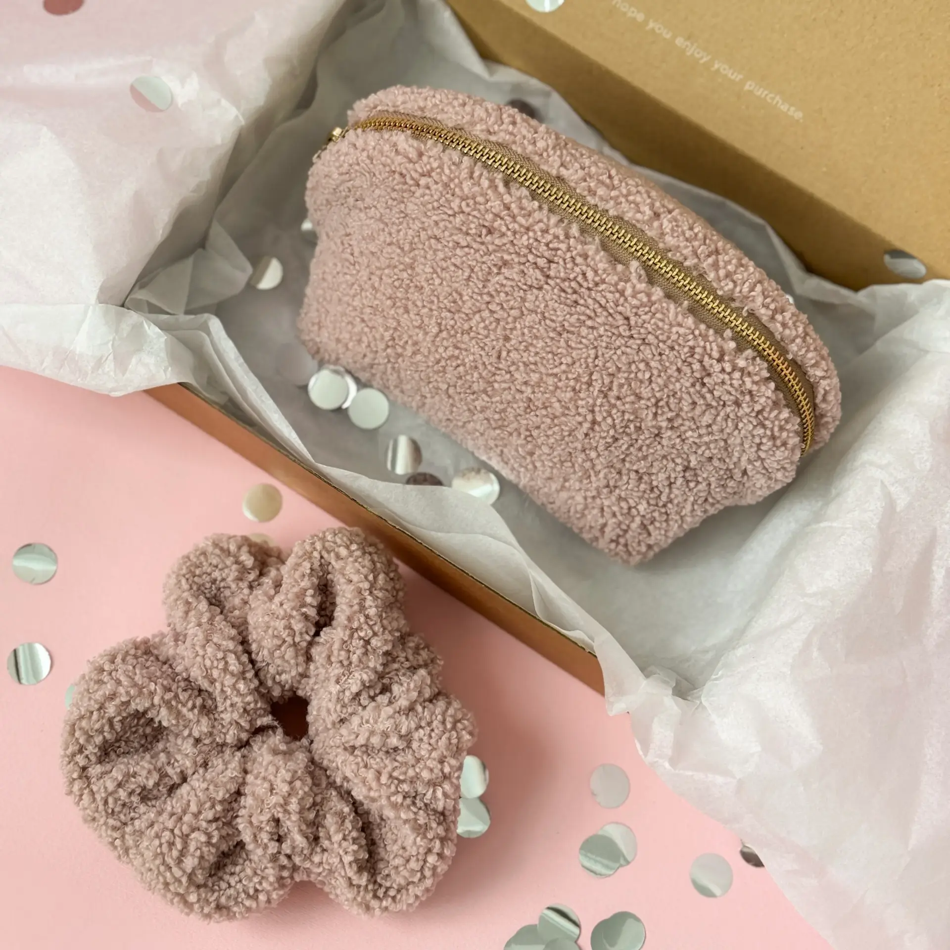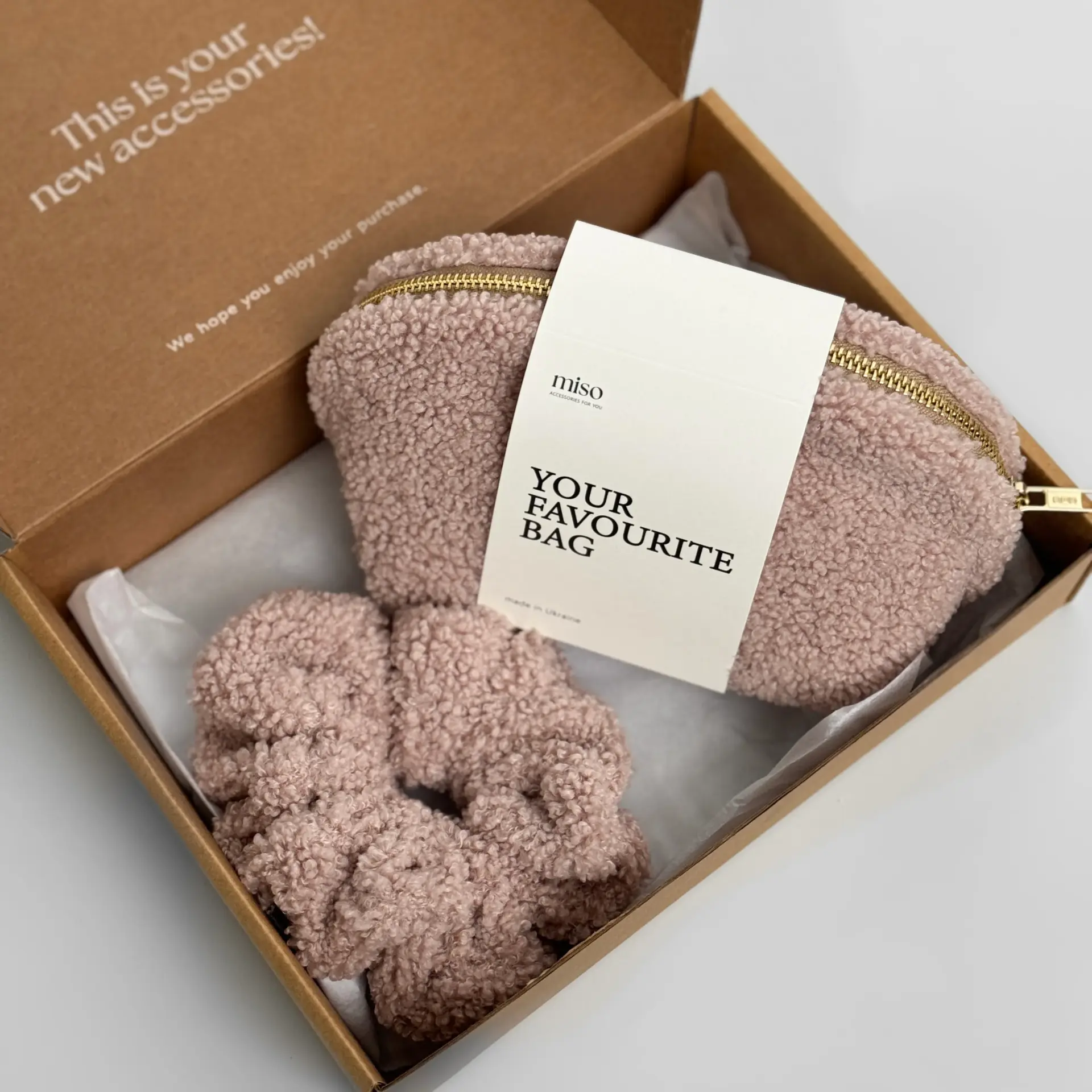 Набір Тедді резинка та мала косметичка колір пудра