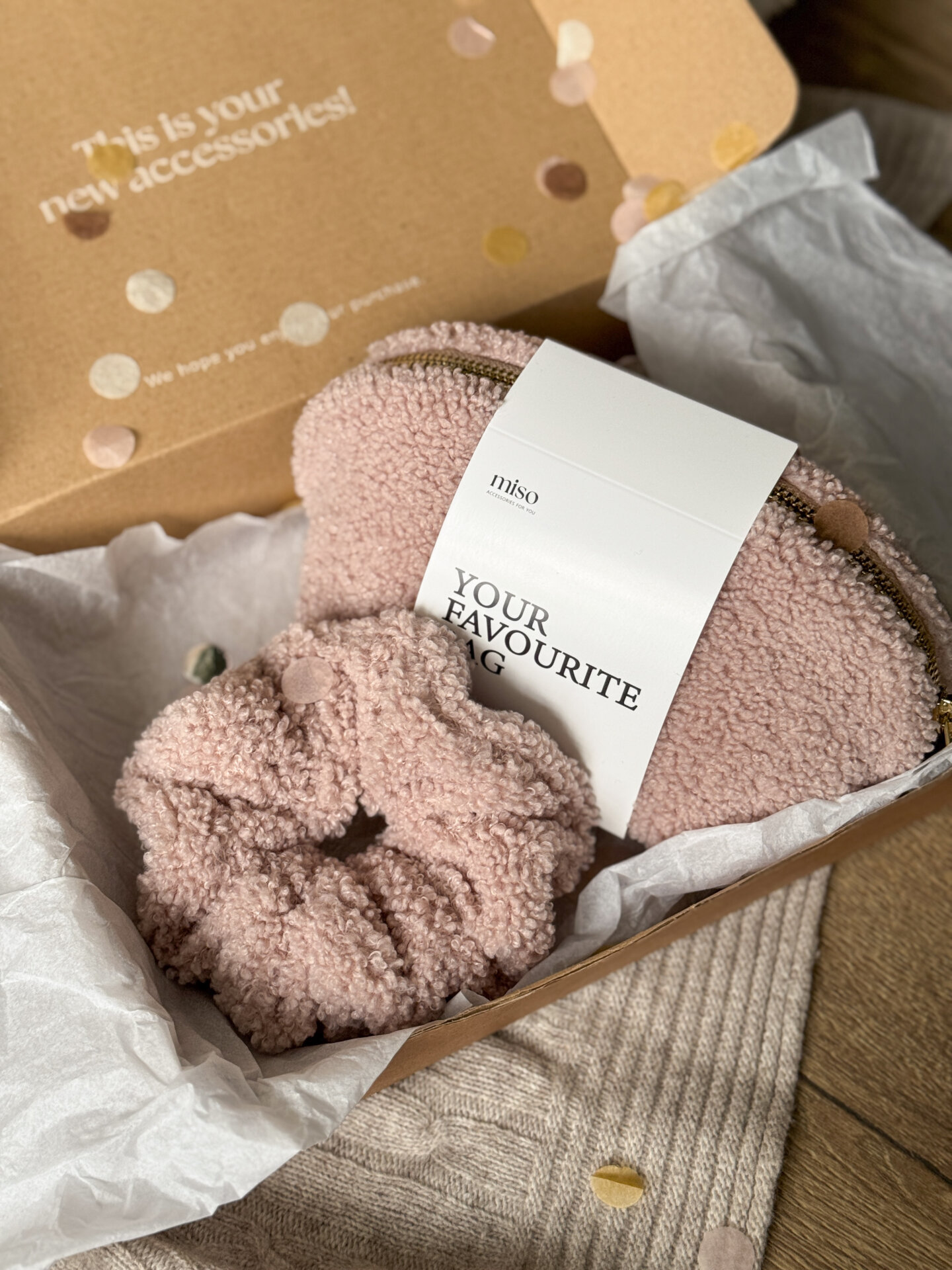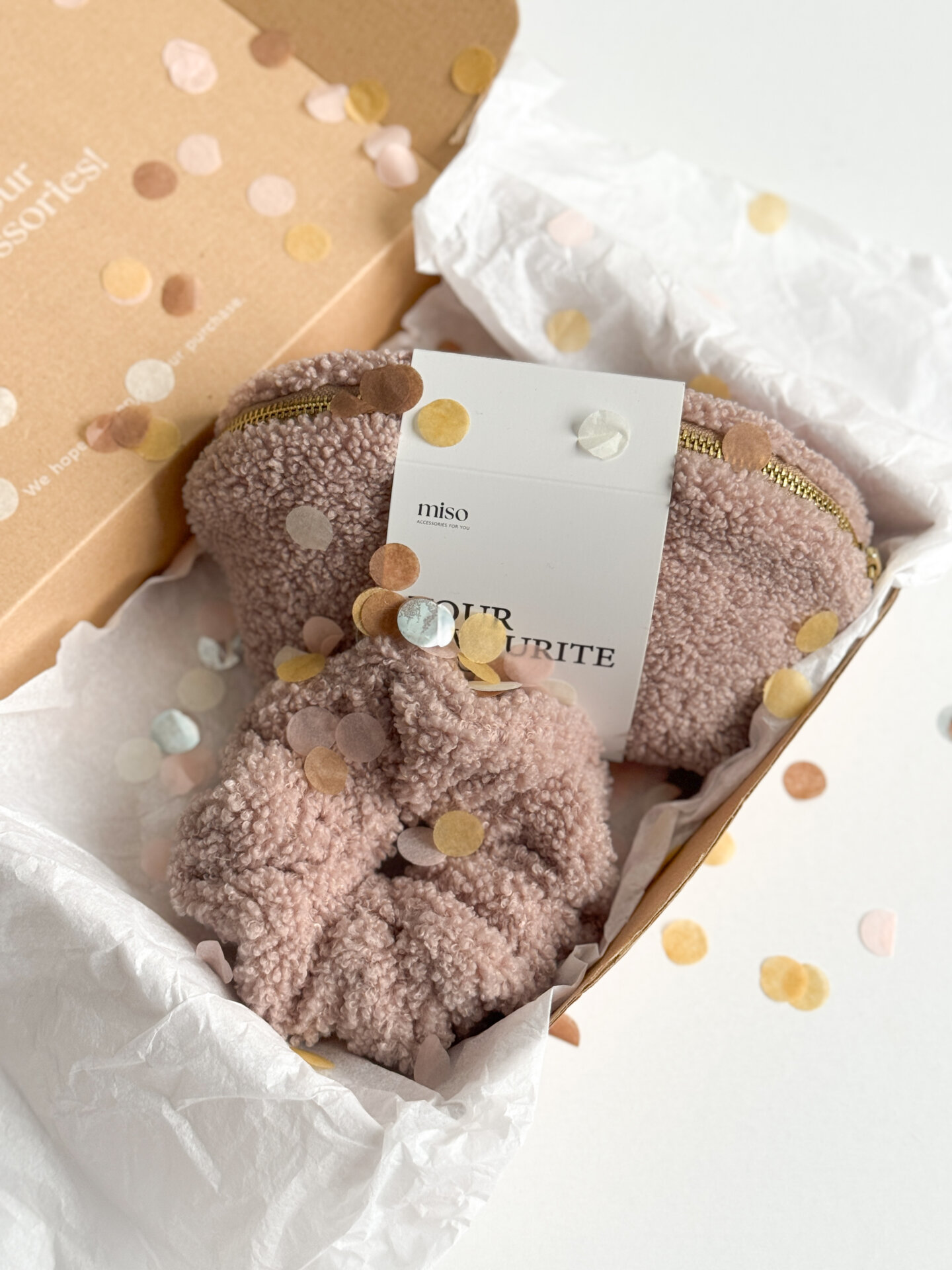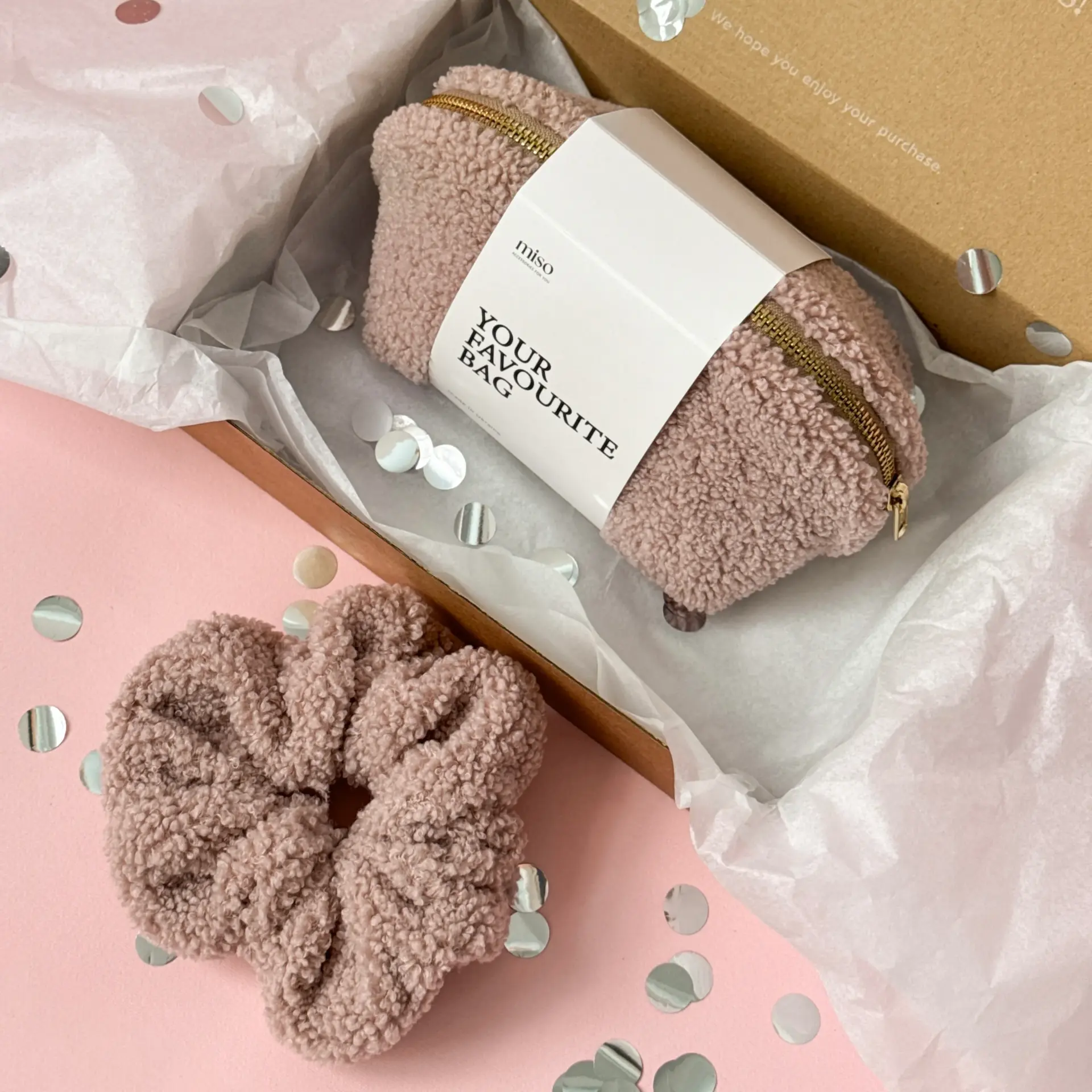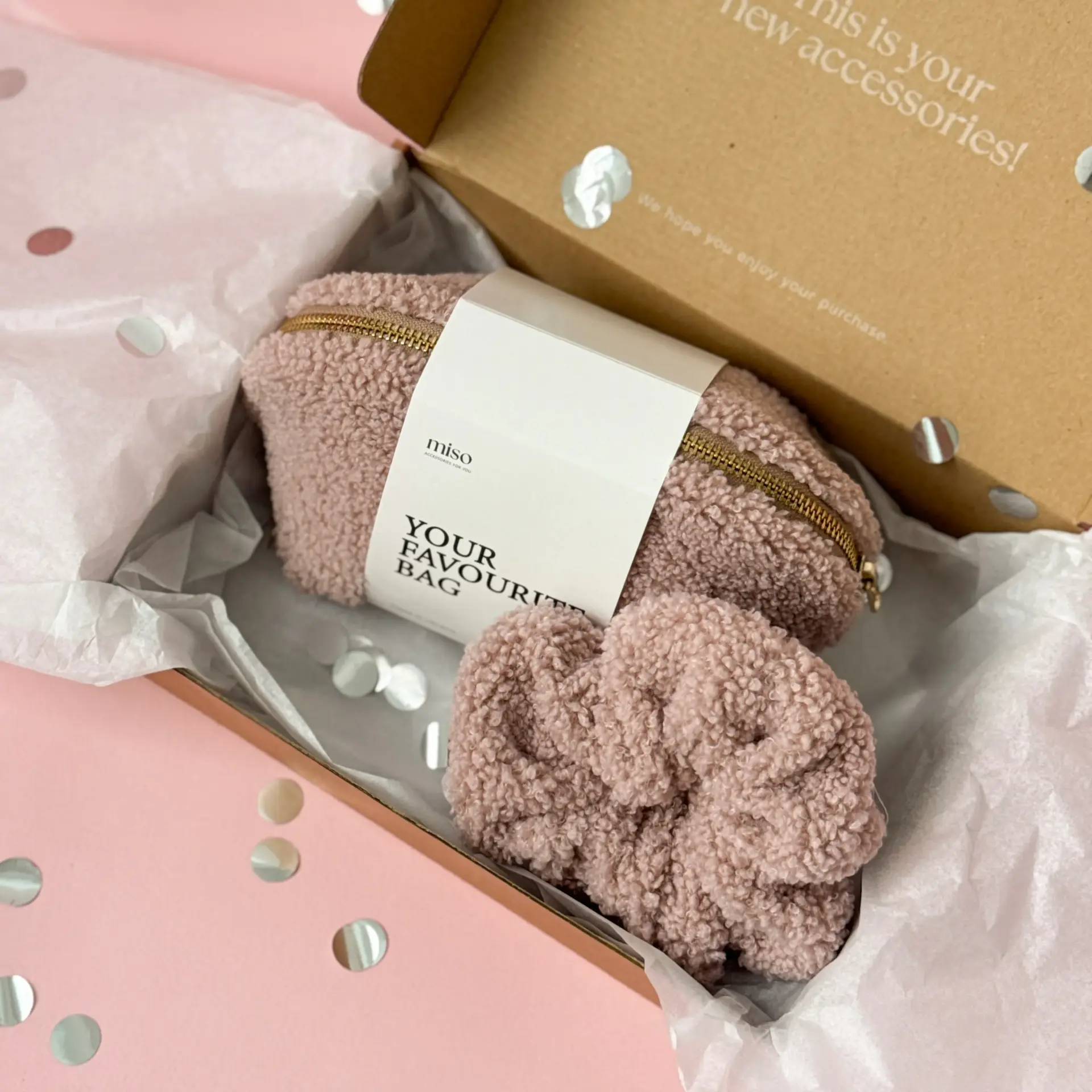 Набір Тедді резинка та мала косметичка колір пудра