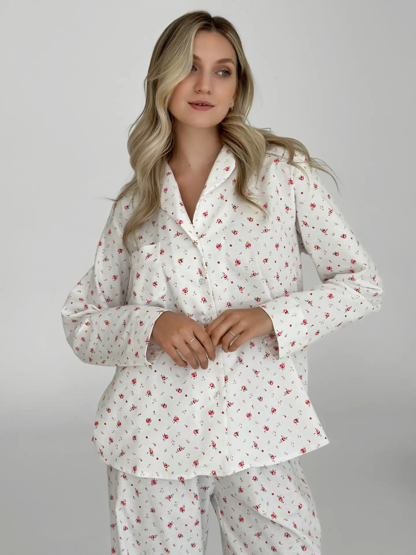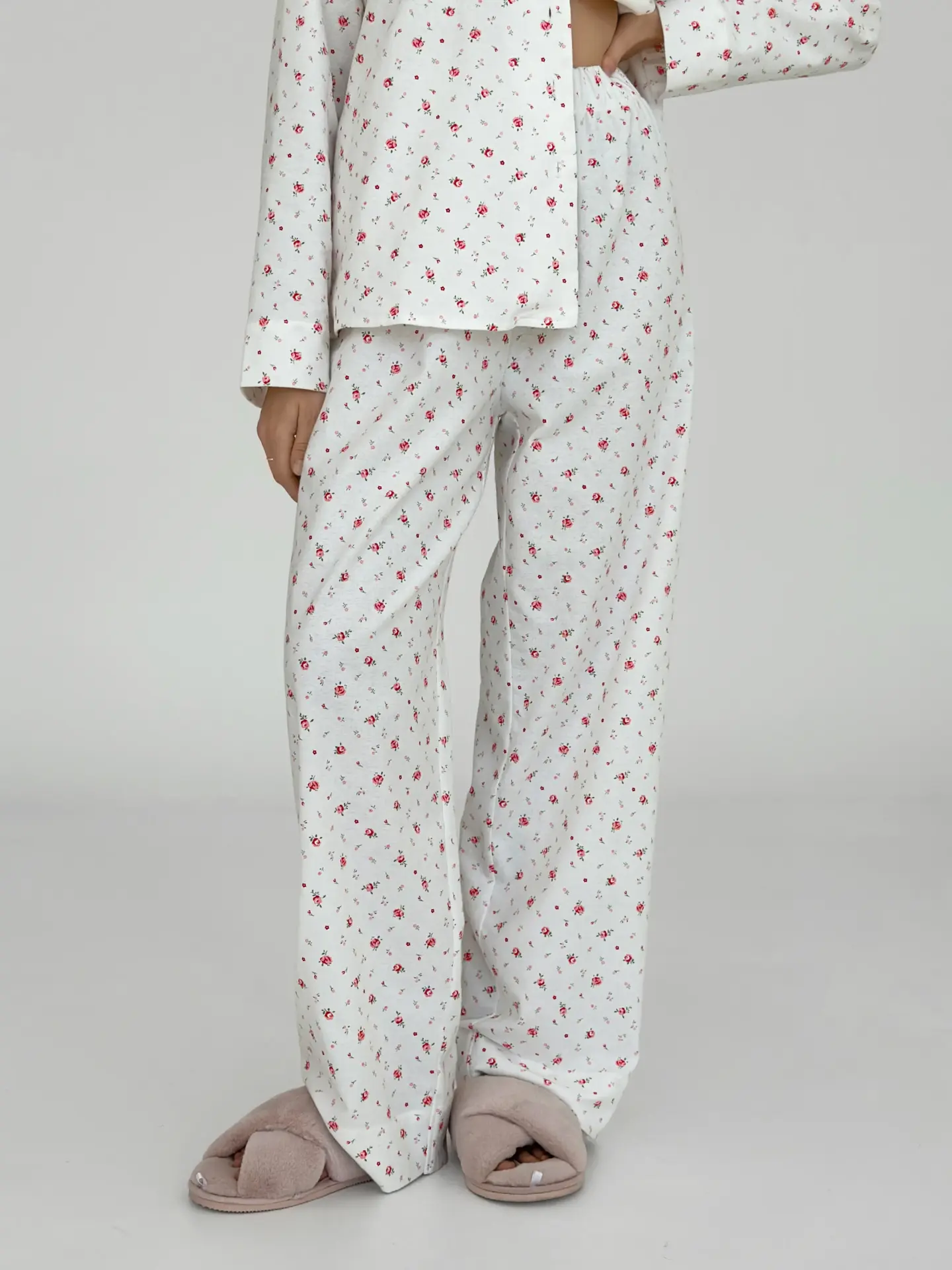 Костюм-піжама для тих, хто полюбляє вдома одягнутись стильно та зручно. Кофта вільного крою, що підходить будь-якому типу фігури.
