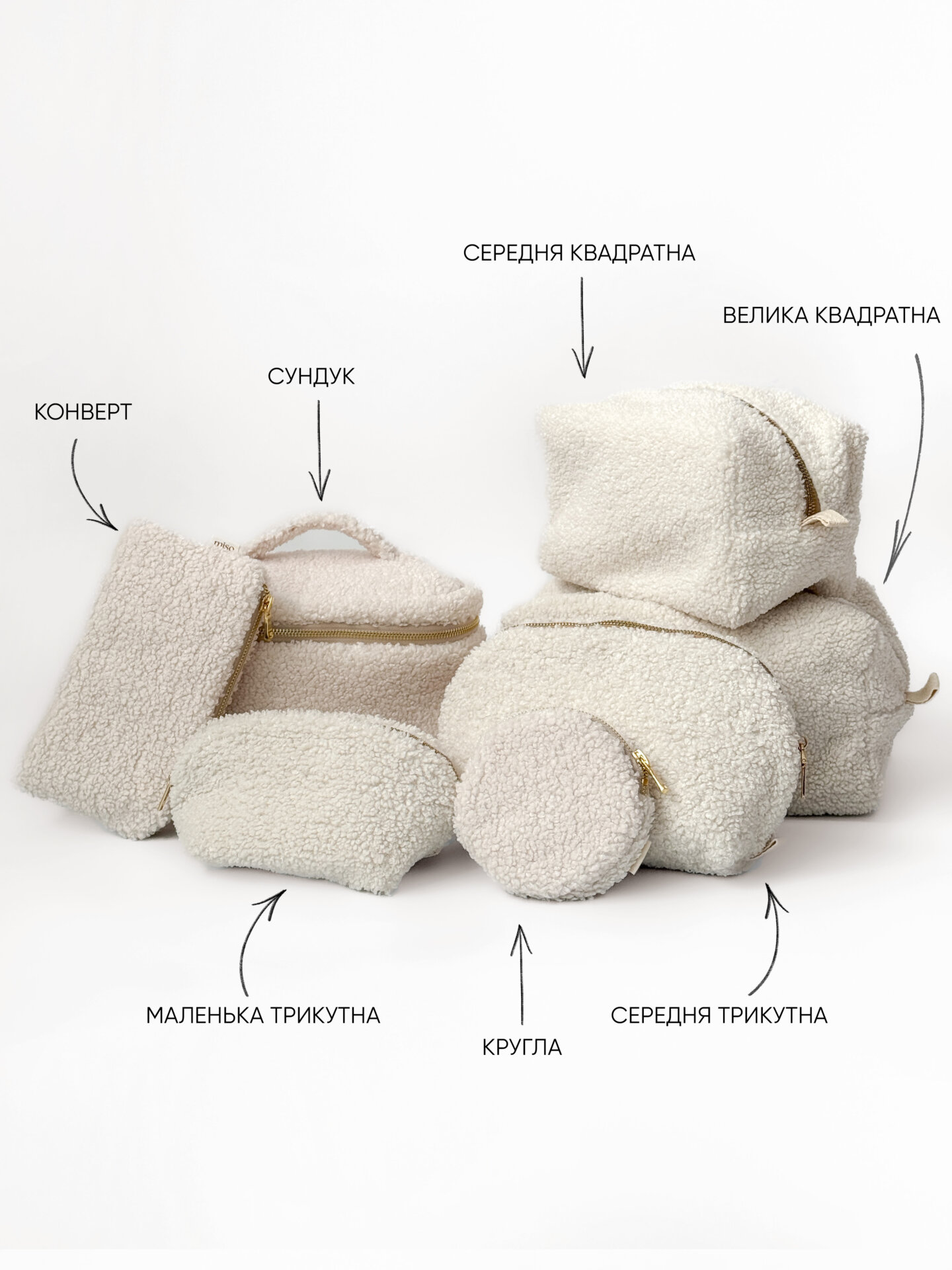 Набір складається з капців Teddy та плюшевої косметички, що запаковані у святкове подарункове пакування.