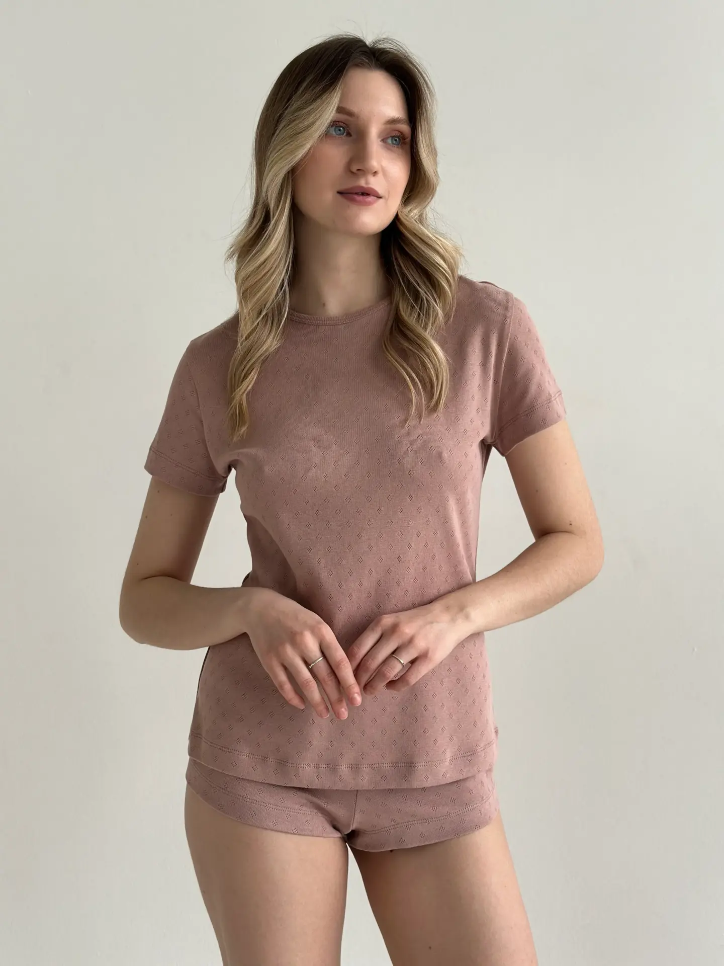 Футболка з рібани – базовий і універсальний елемент гардероба. Еластична та м’яка тканина забезпечує комфорт протягом усього дня, а мінімалістичний дизайн ідеально підходить для створення стильних образів. Чудовий вибір для повсякденного носіння.