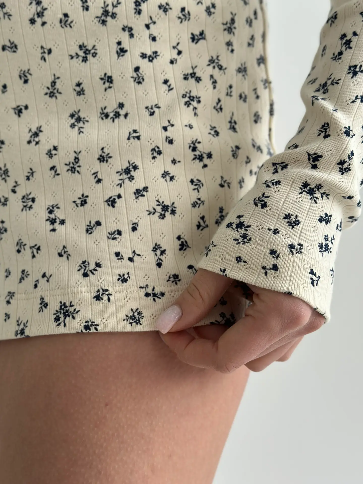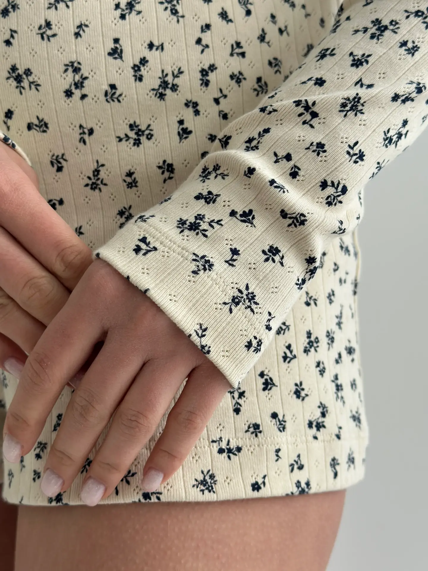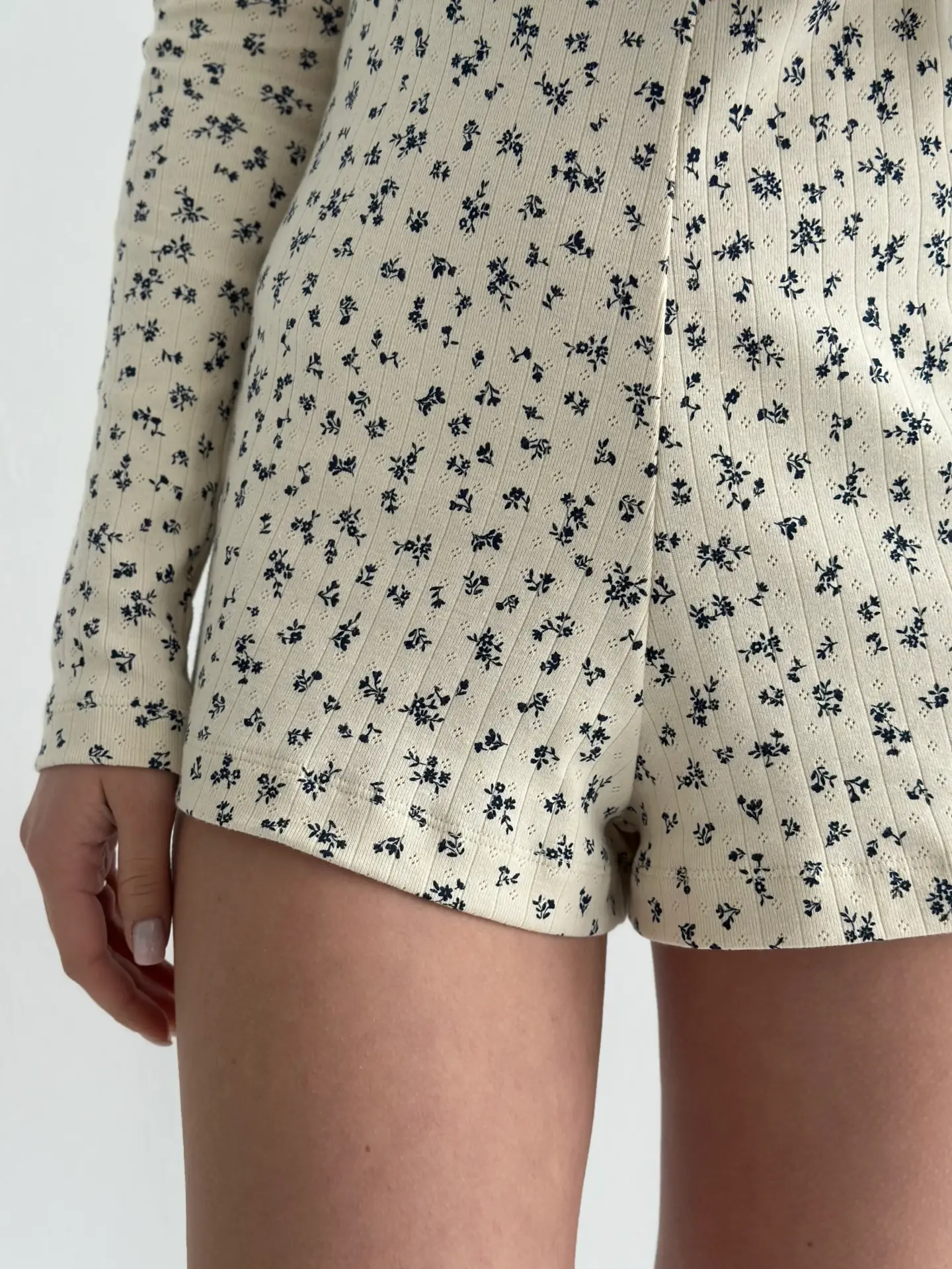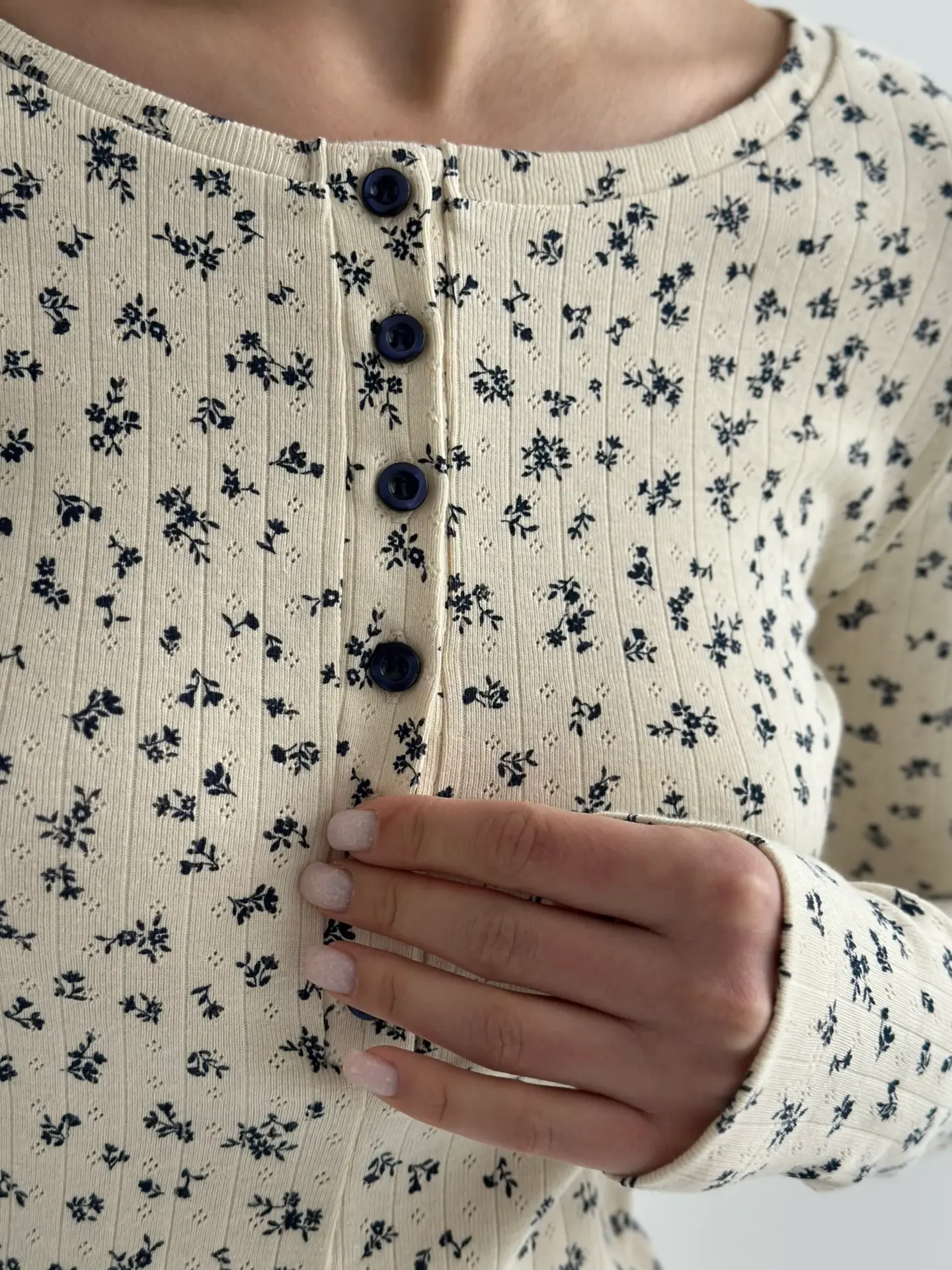NewРібана лонгслив молочний у синю квіточку (без гудзика)