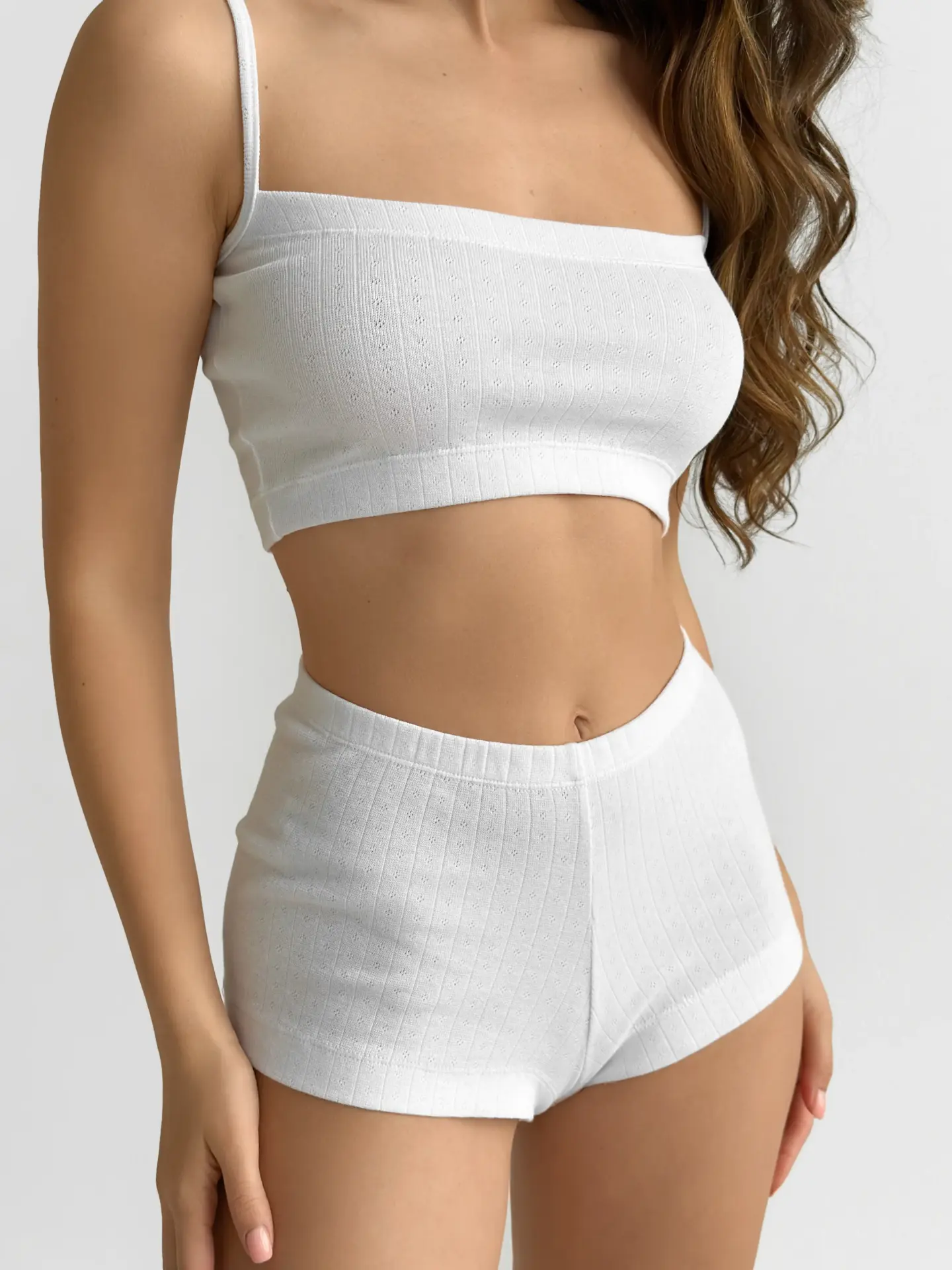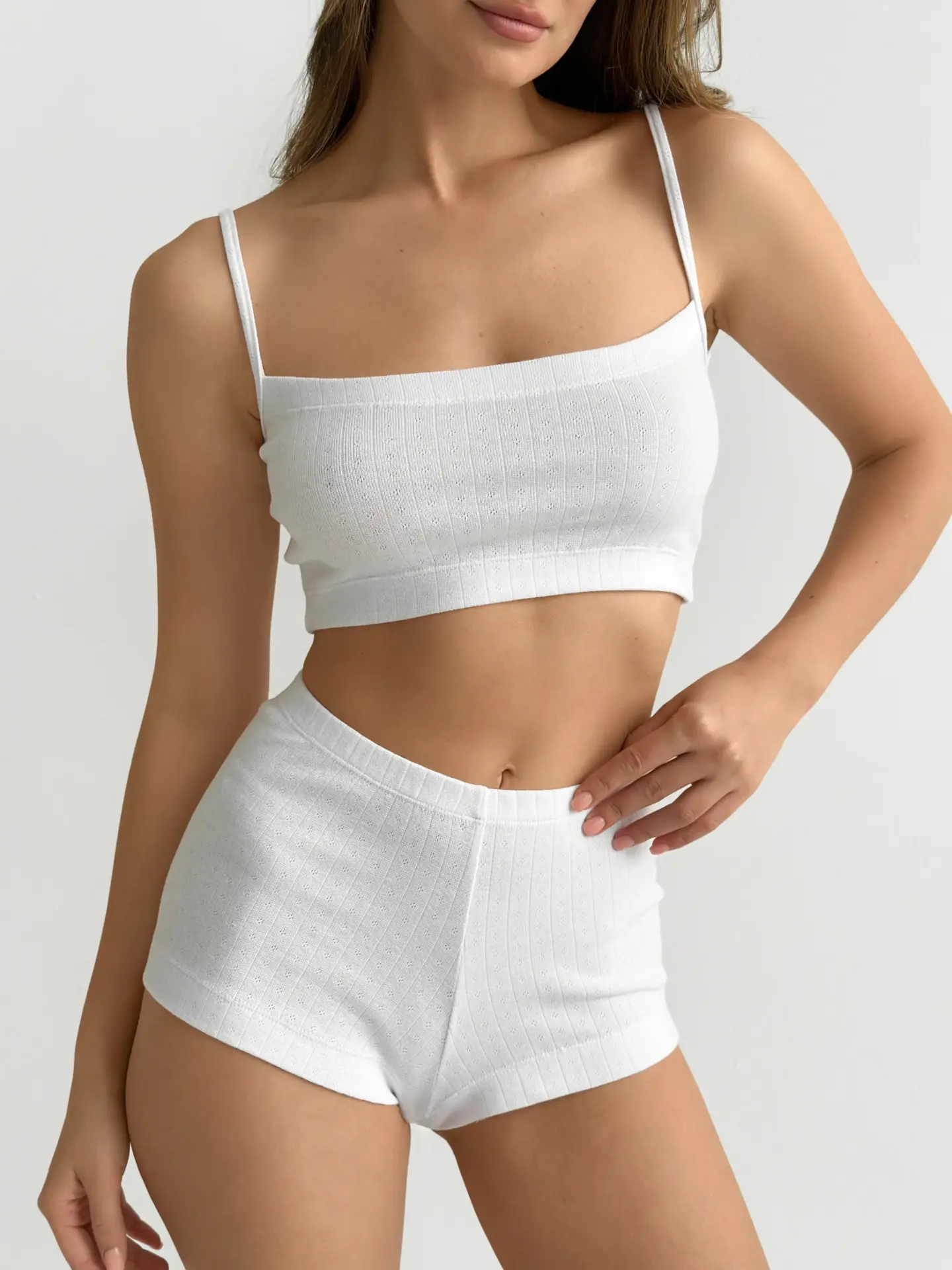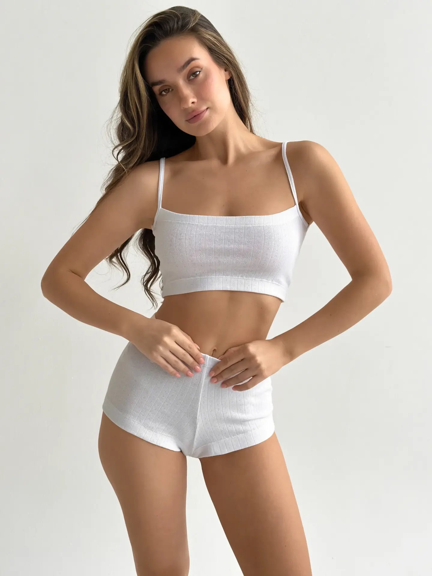 Рібана комплект Топ на бретелях та шорти Міні білий