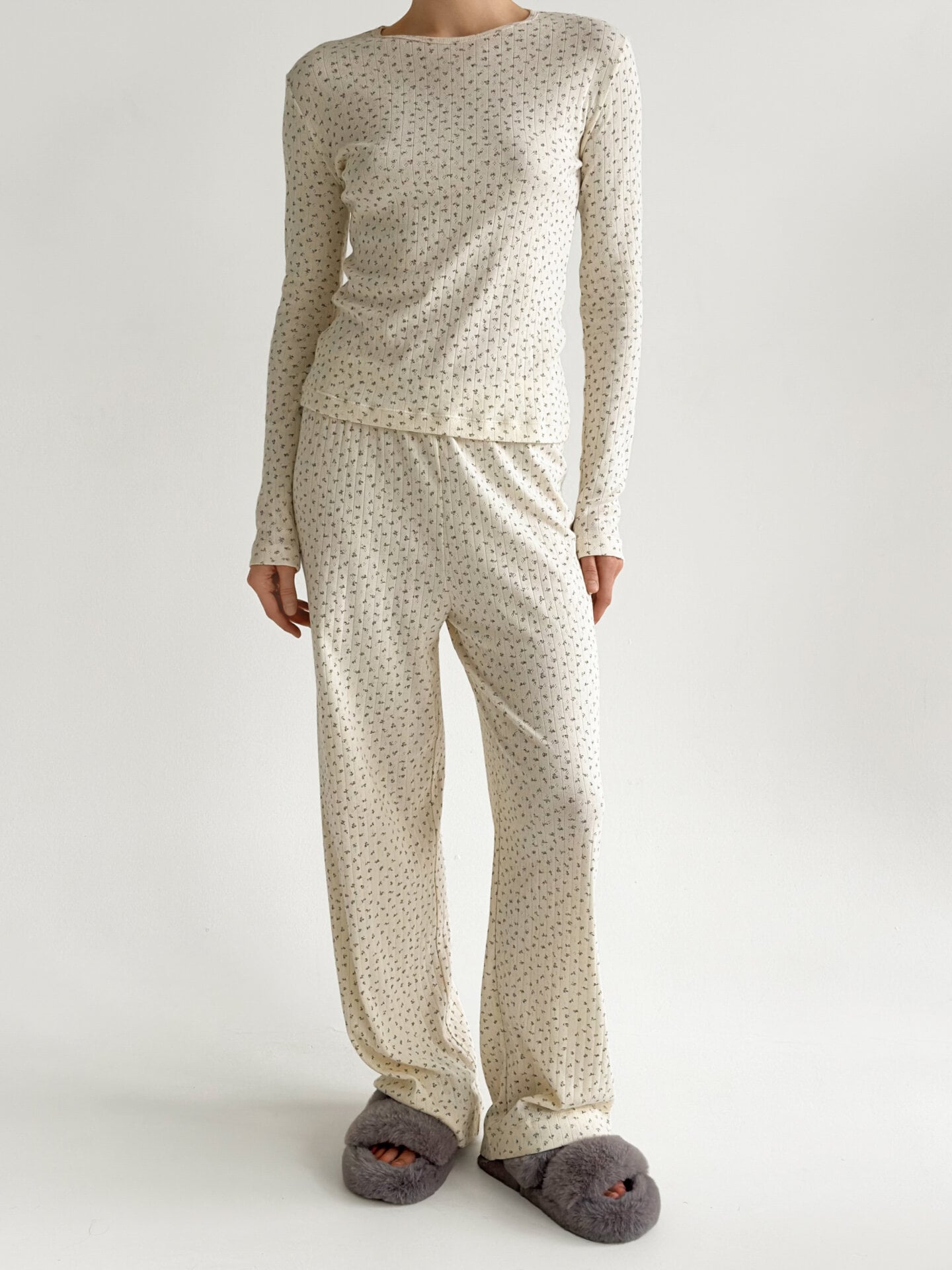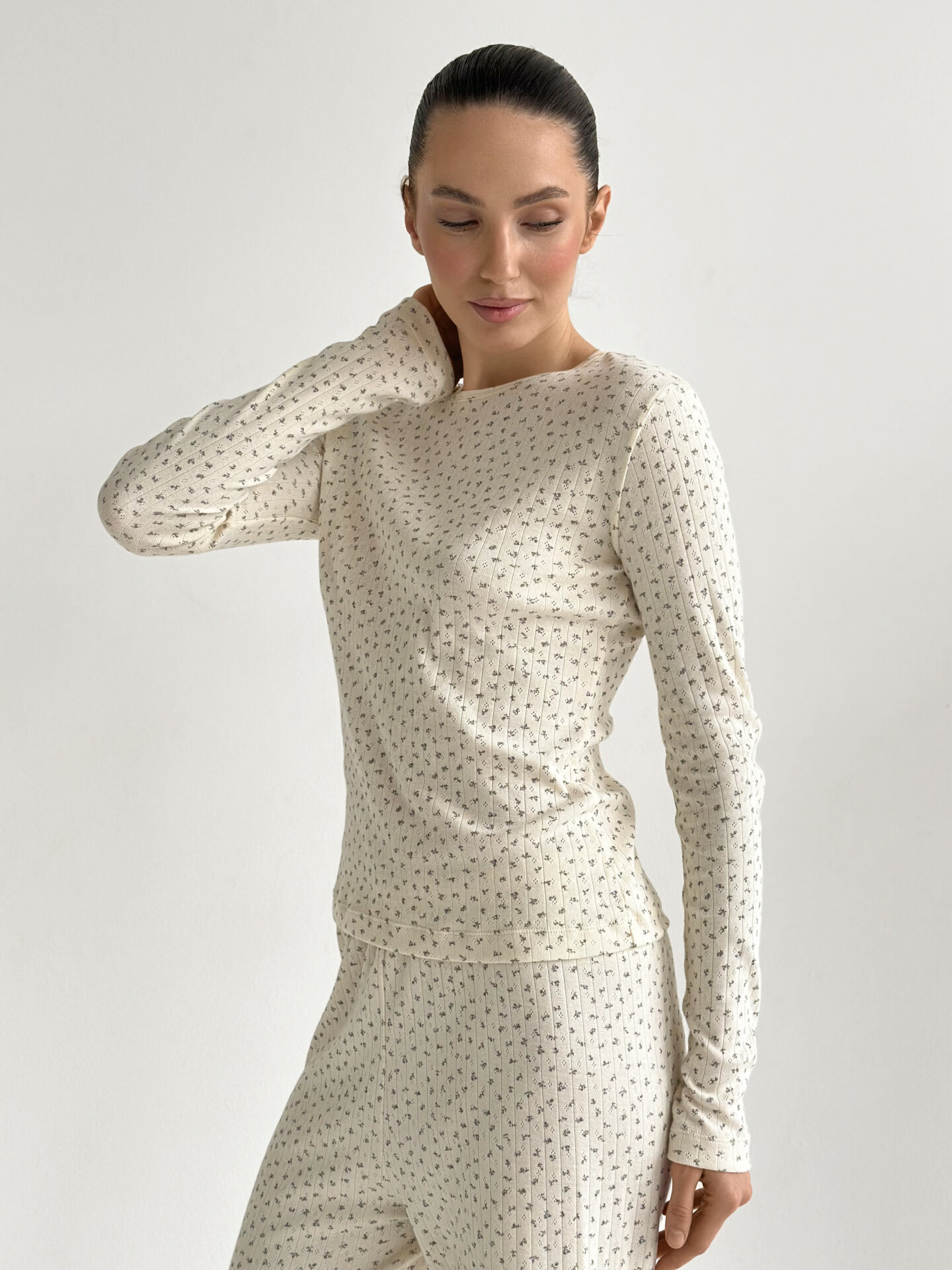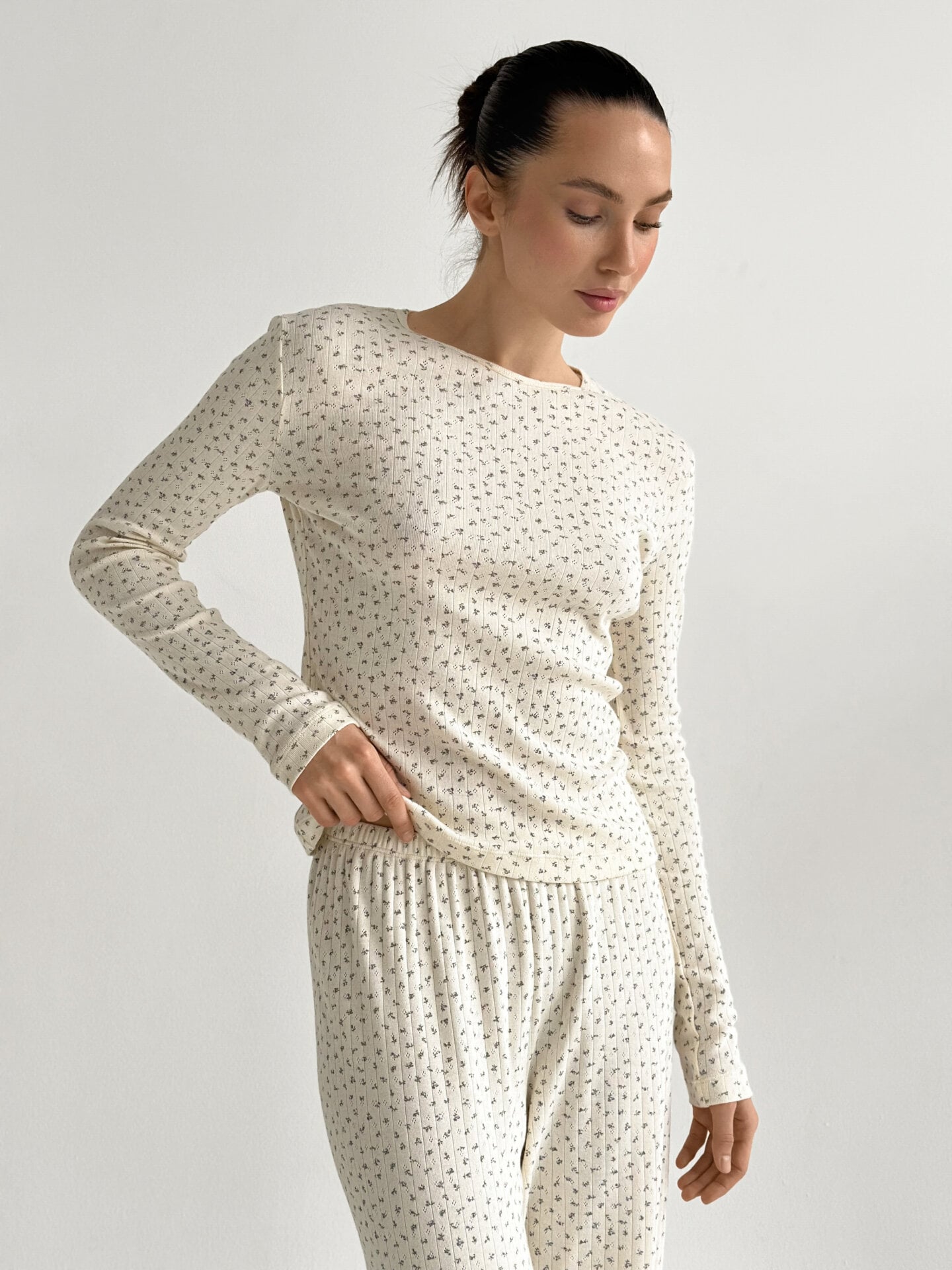 Рібана костюм трикотаж штани широкі та лонгслів блакитна квітка - Twins
