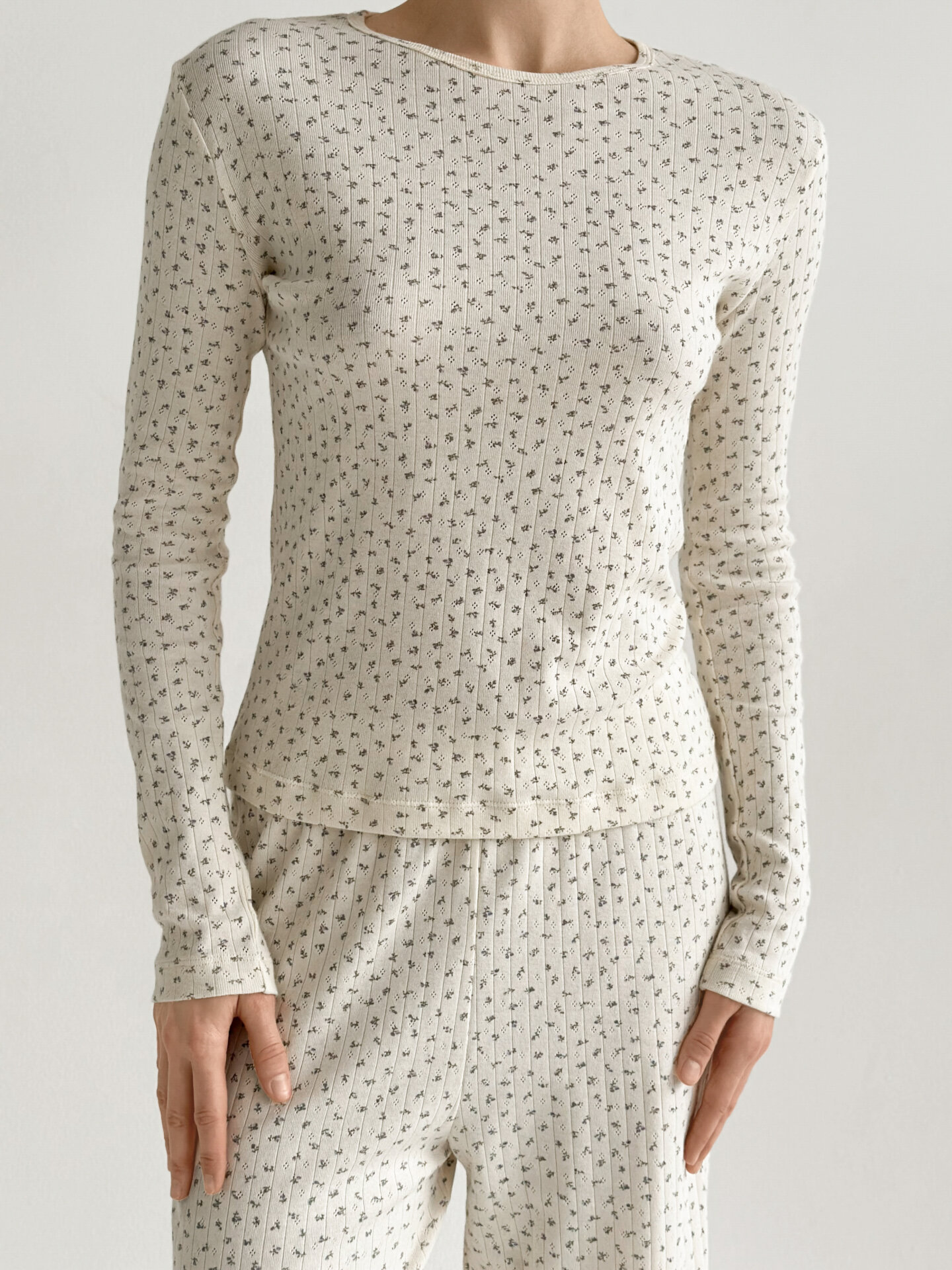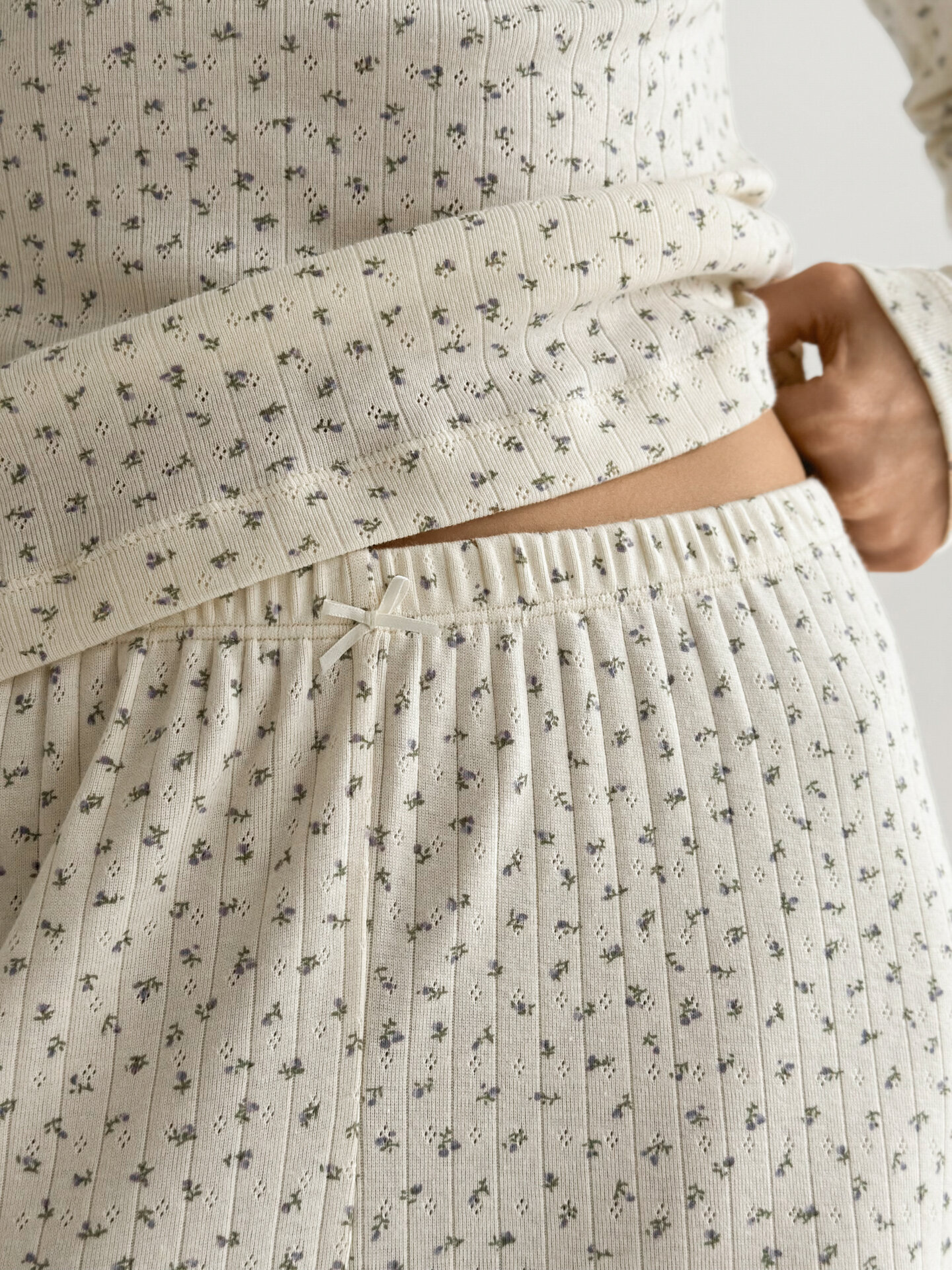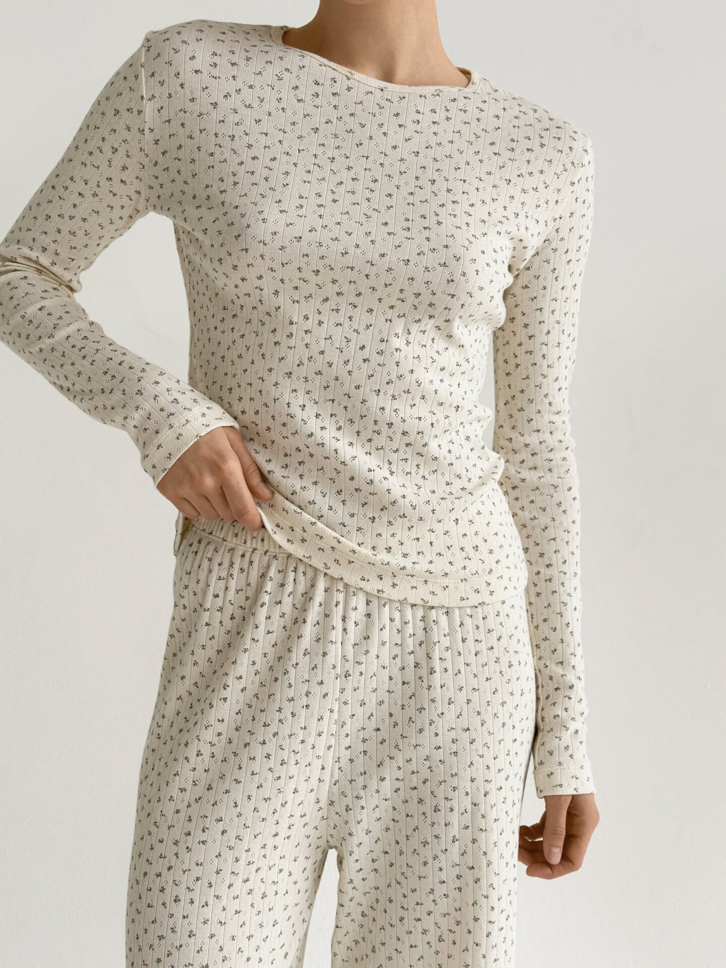 Рібана костюм трикотаж штани широкі та лонгслів блакитна квітка - Twins